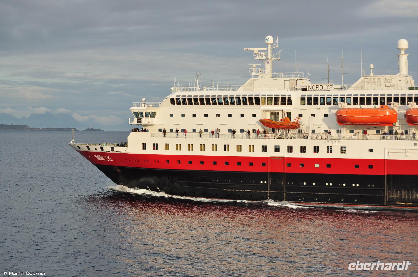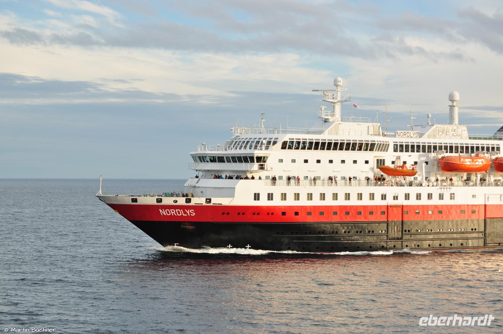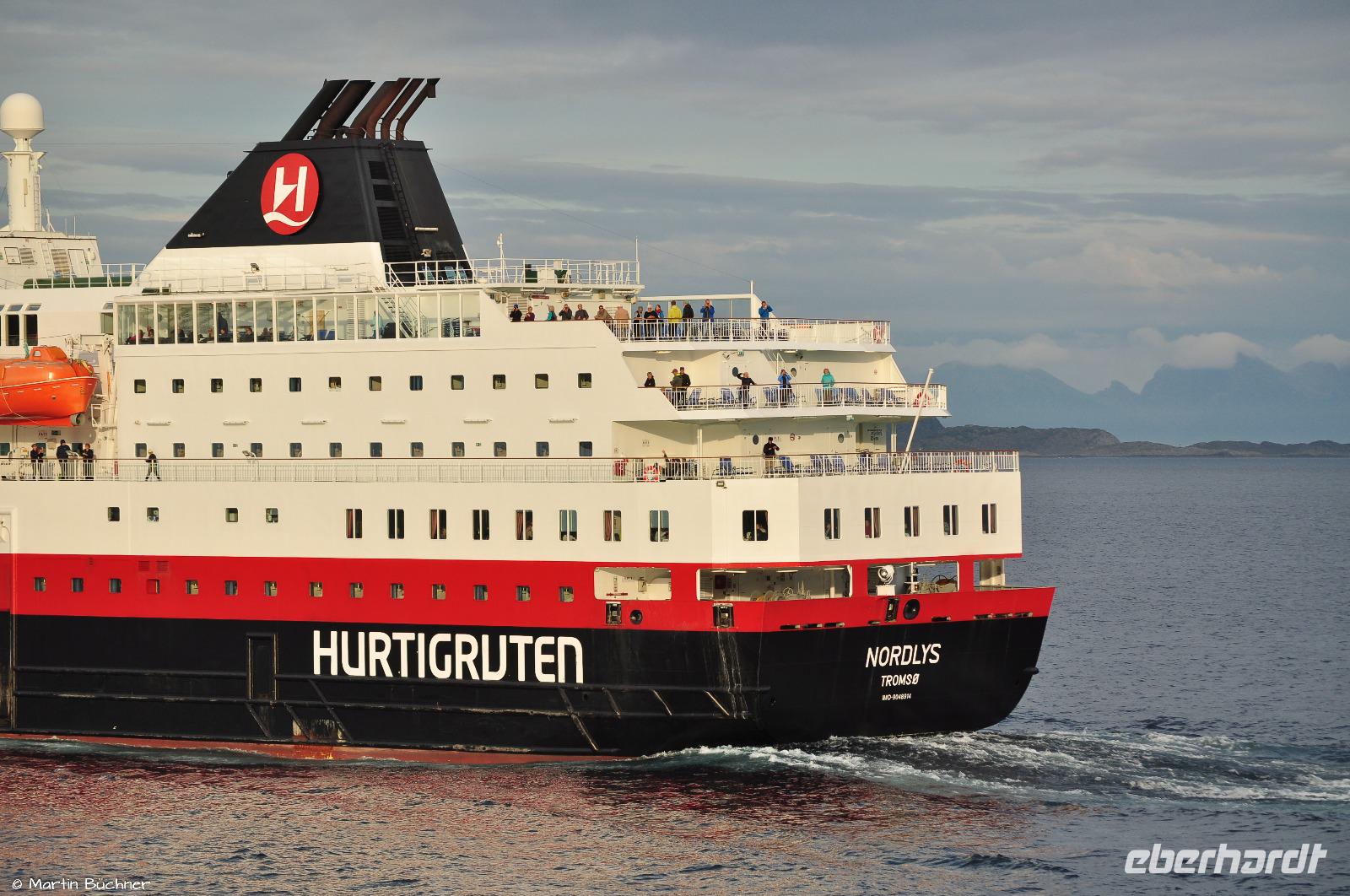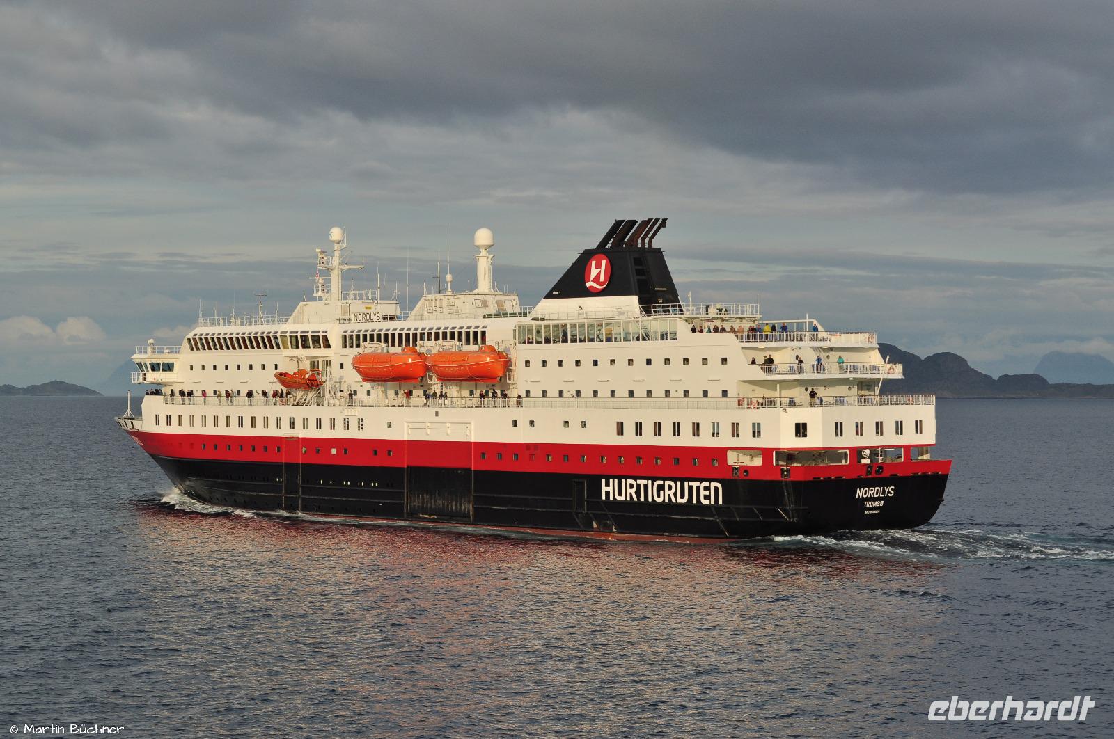 Die nordwärts gehende Hurtigruten M/S Nordnorge legt um Punk 12.00 Uhr ab.
