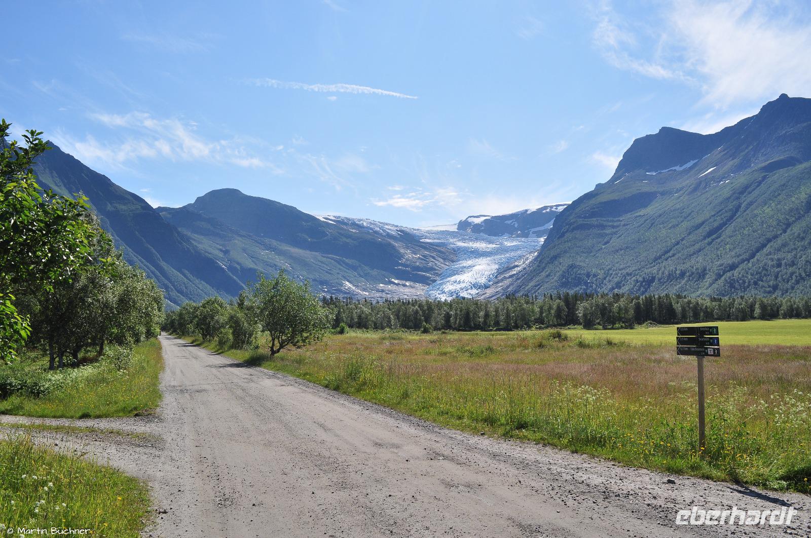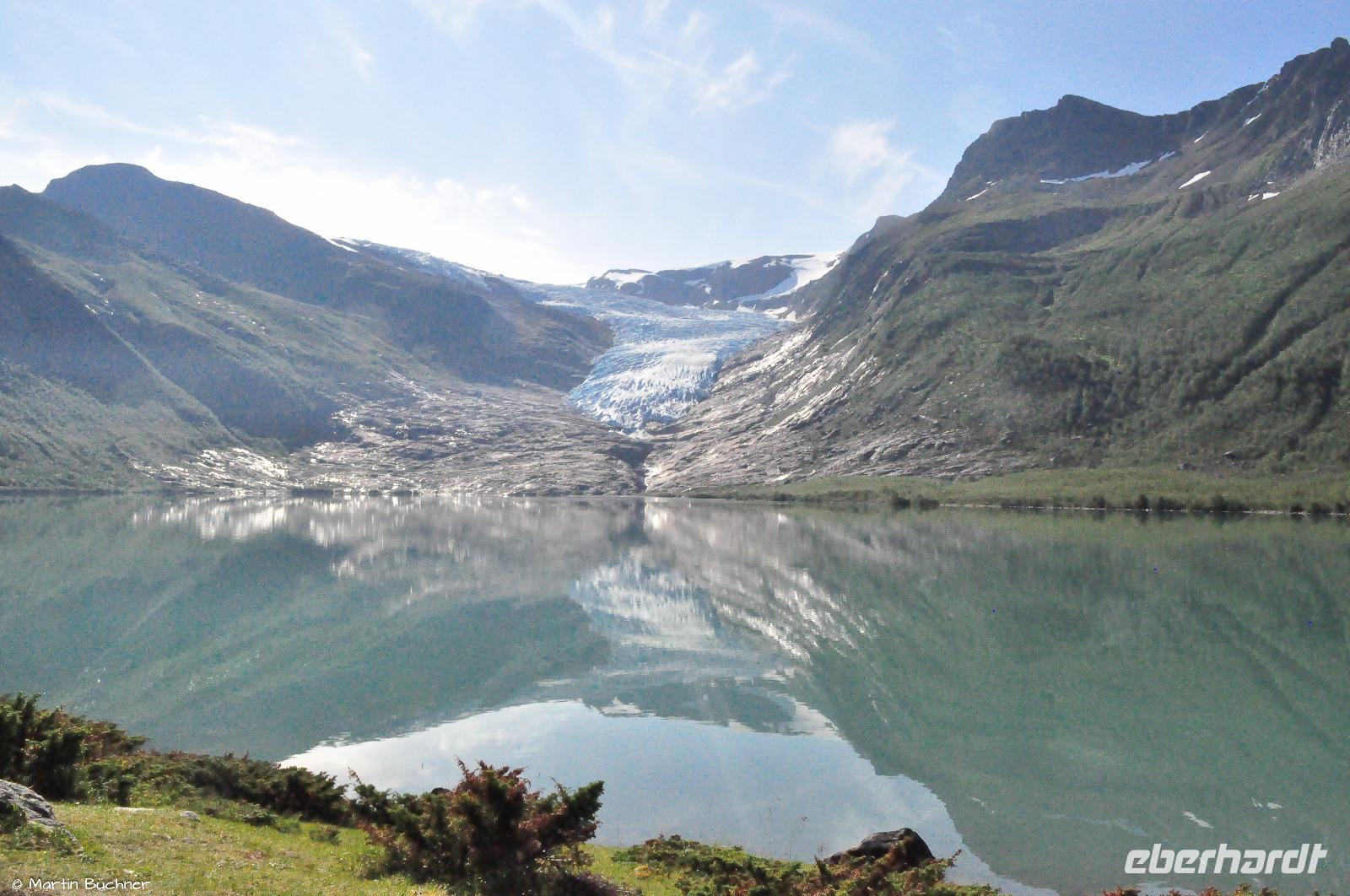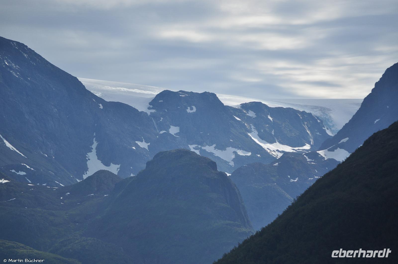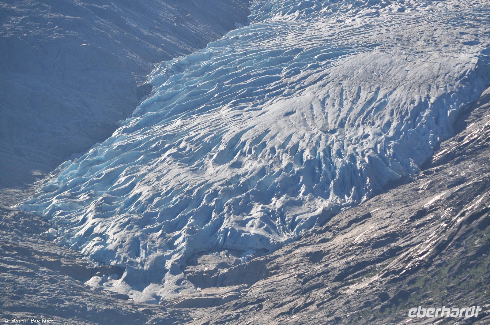 Einige Gäste nehmen am Ausflug zum Svartisen Gletscher teil. Der bekannteste Teil des zweitgrößten Gletschers Norwegens ist der Engabreen. Auch dieser hat sich in den letzten Jahren stark zurückgezogen.