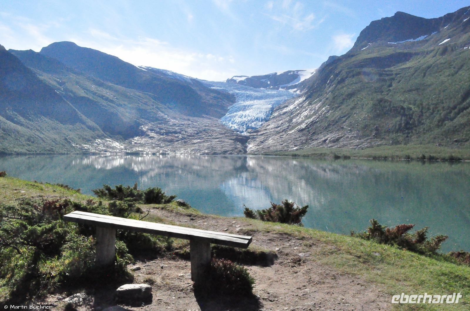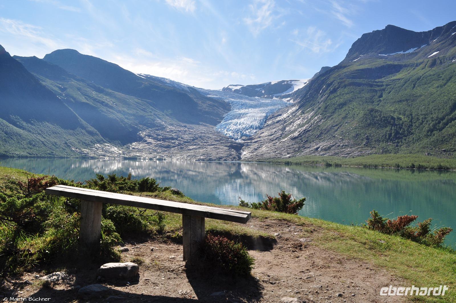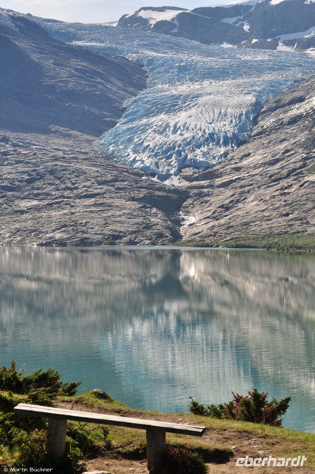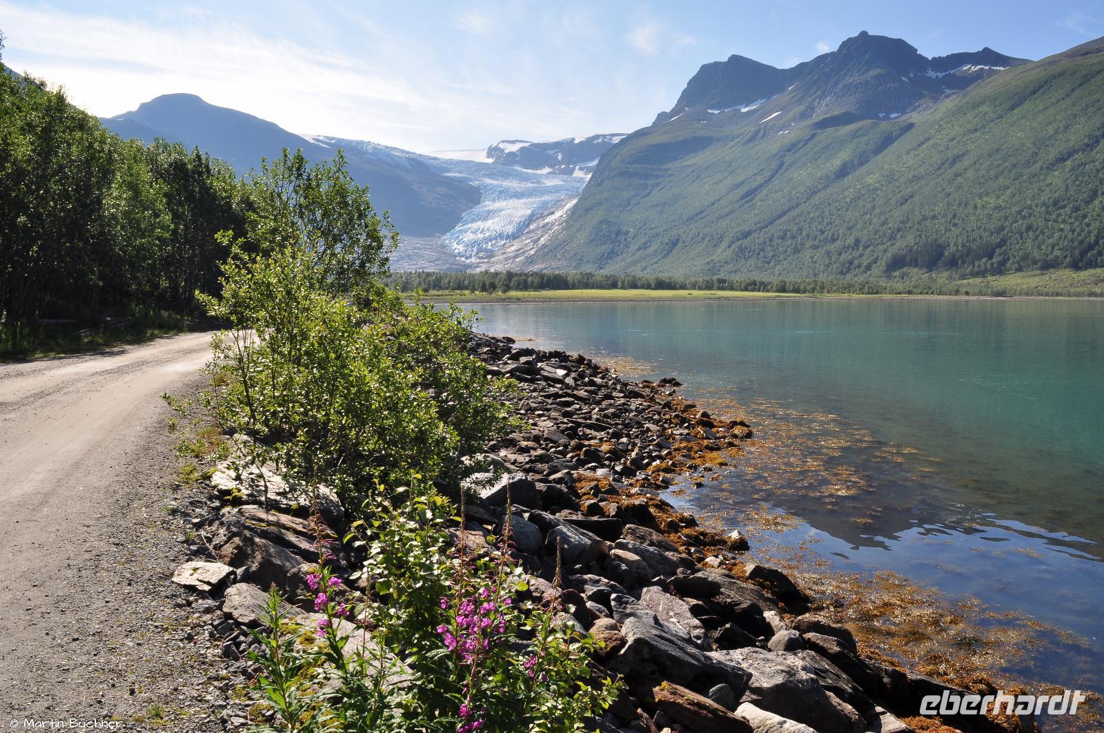 Einige Gäste nehmen am Ausflug zum Svartisen Gletscher teil. Der bekannteste Teil des zweitgrößten Gletschers Norwegens ist der Engabreen. Auch dieser hat sich in den letzten Jahren stark zurückgezogen.