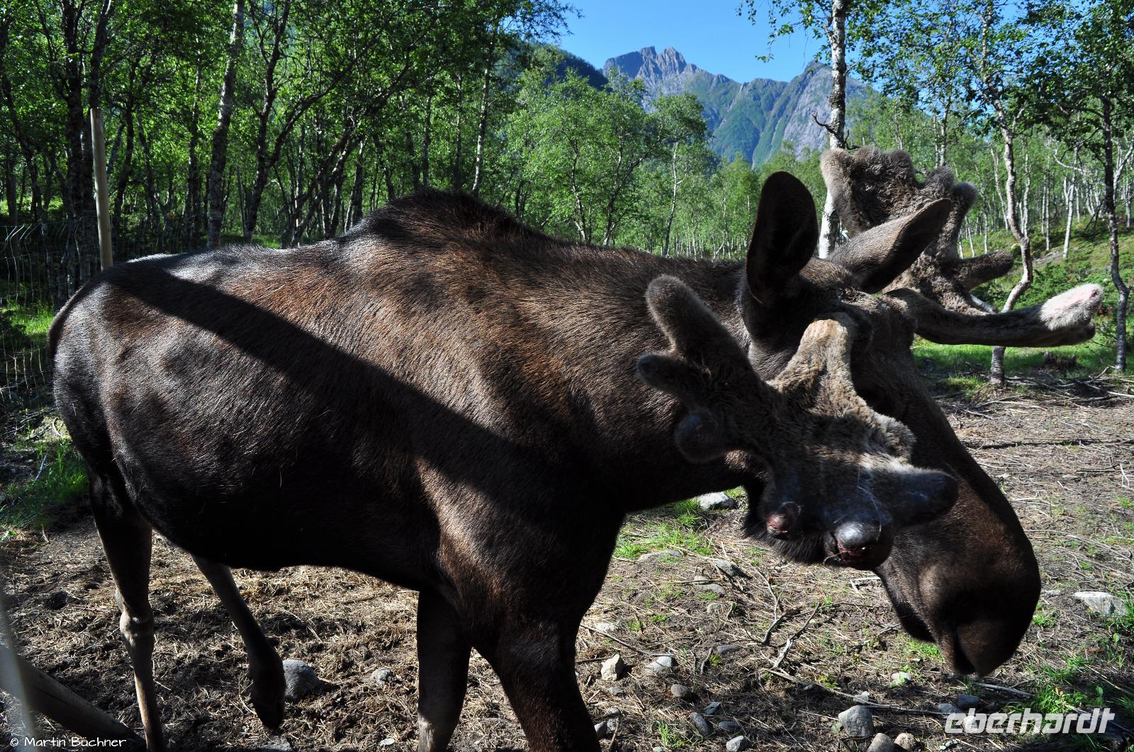 Auf dem Dovrefjell flüchten direkt neben der Bahnstrecke erst drei und dann gleich noch ein weiterer ausgewachsener Elch.