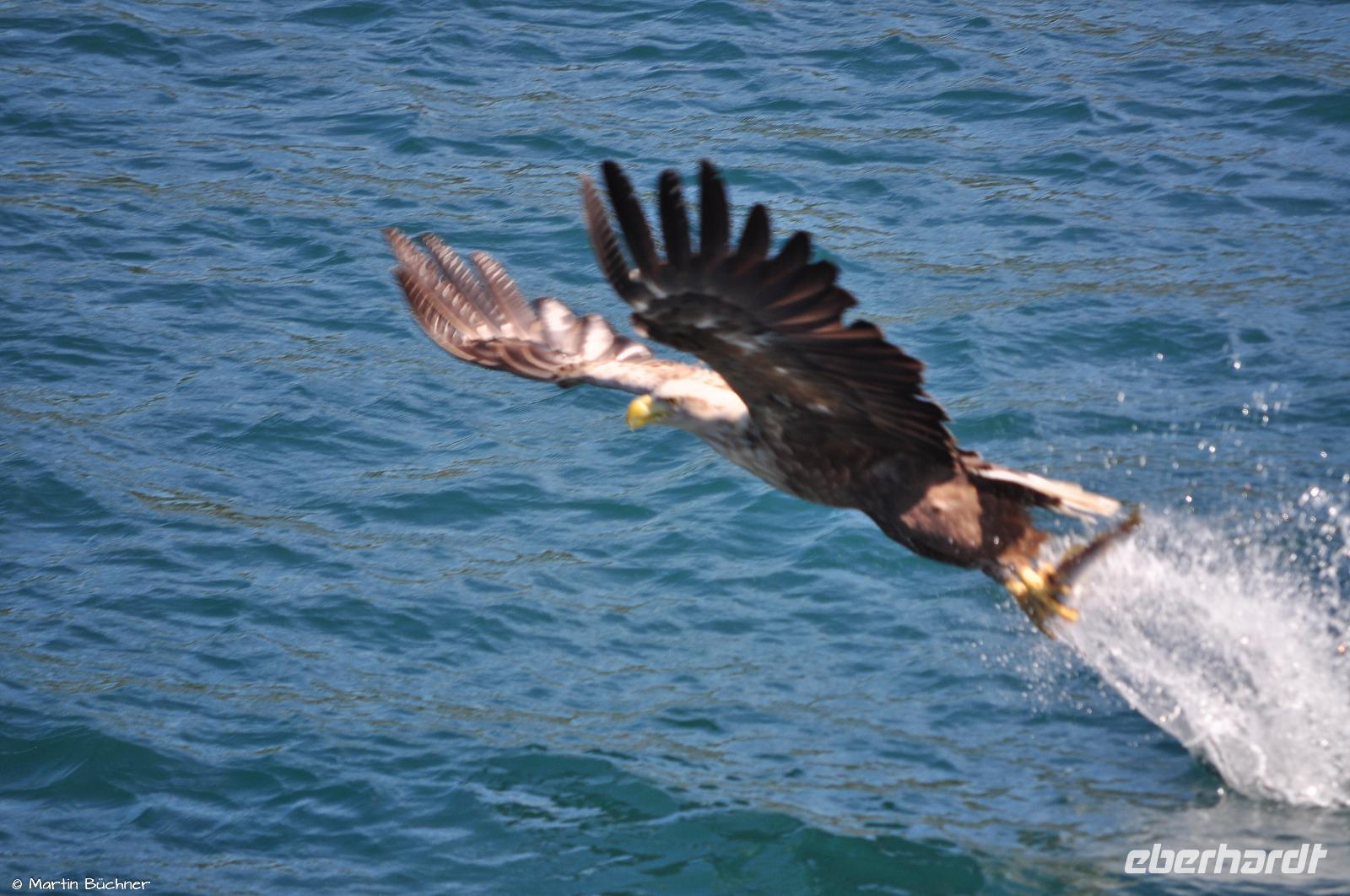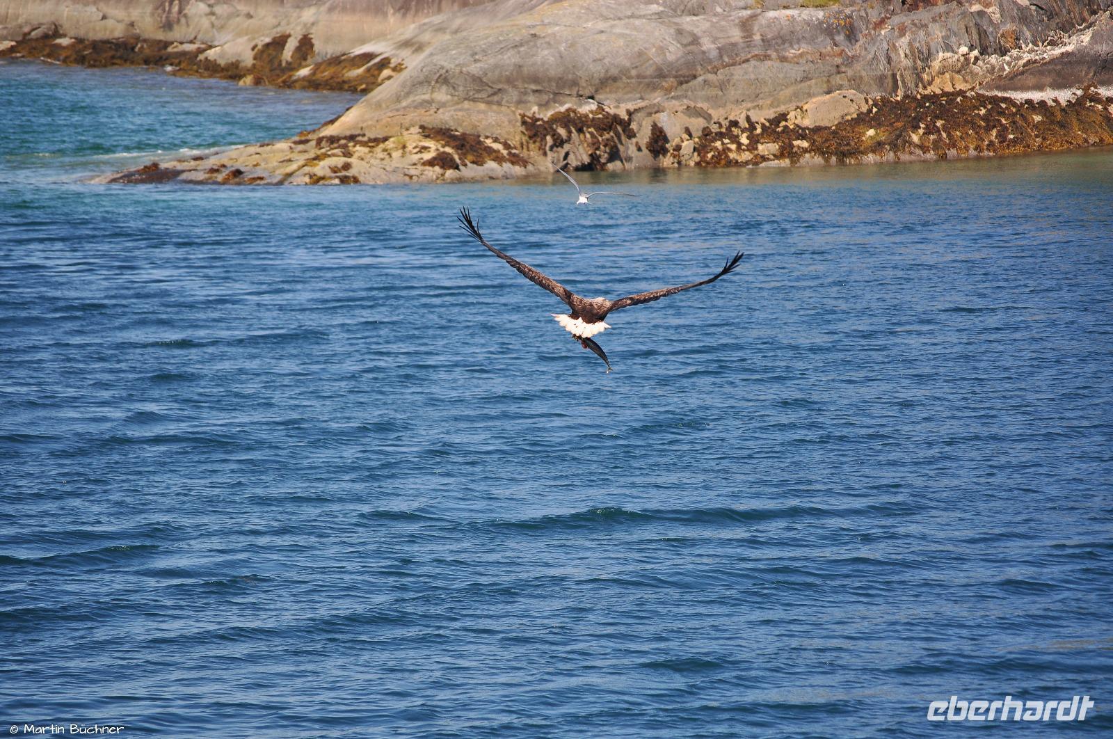 Mit dem Schnellboot geht es zurück zum Schiff, dass mittlerweile nach Bodö weitergefahren ist. Unterwegs begegnen uns noch eine Handvoll Seeadler.