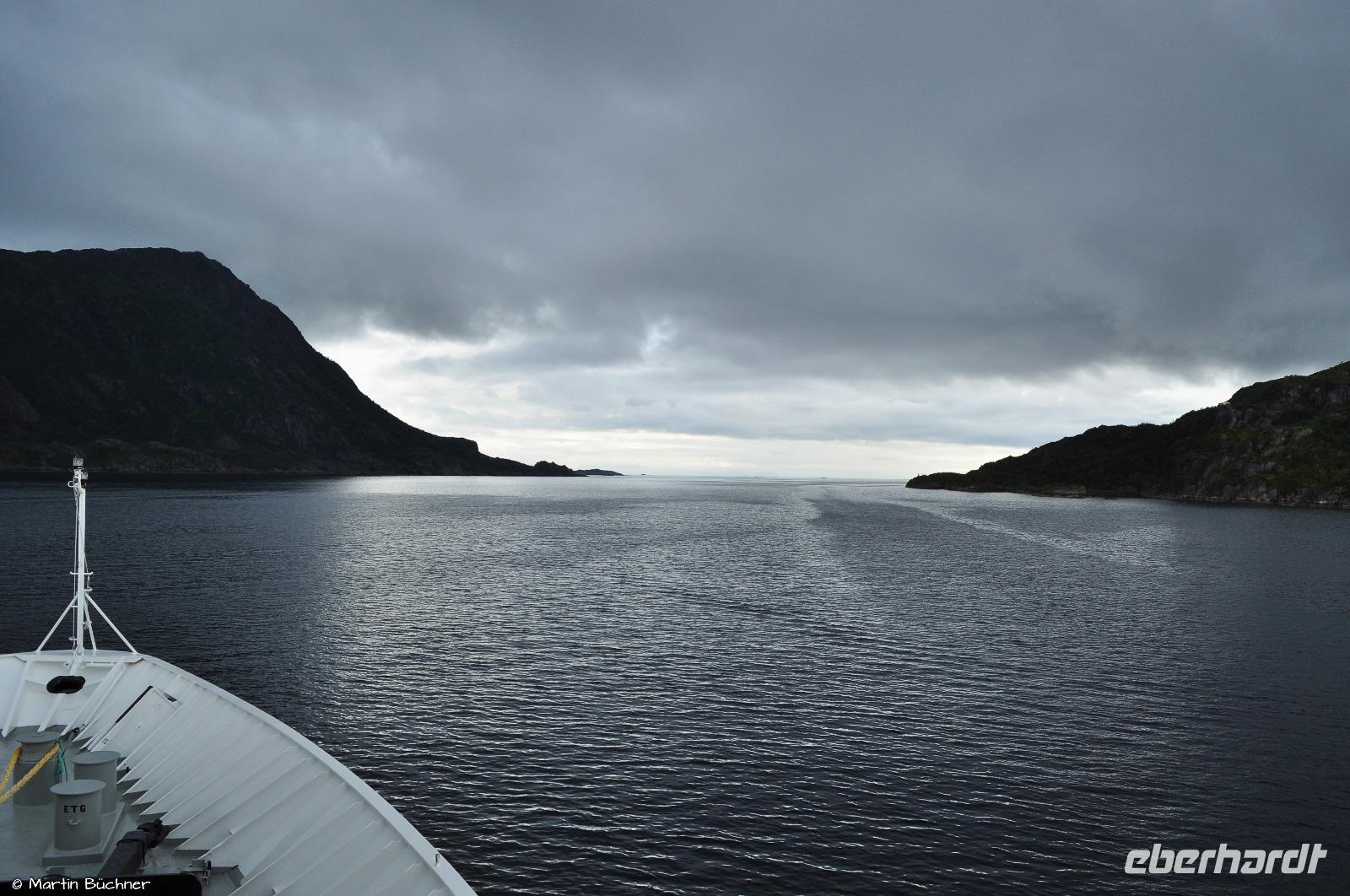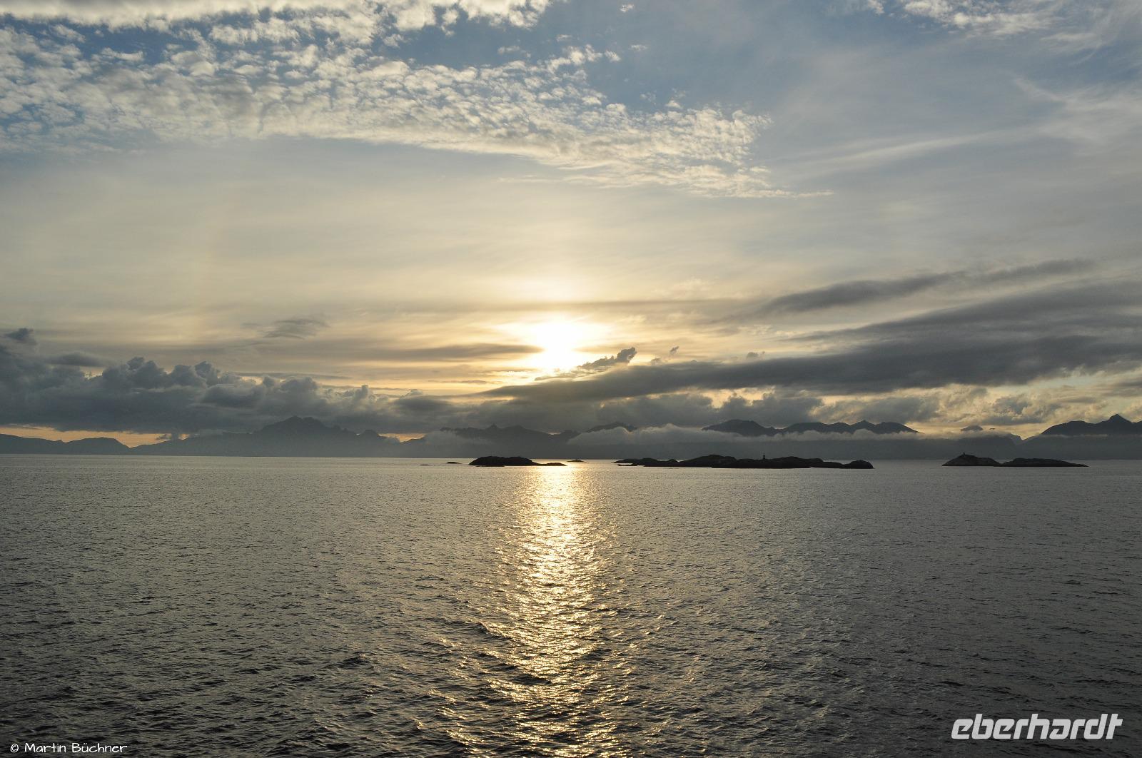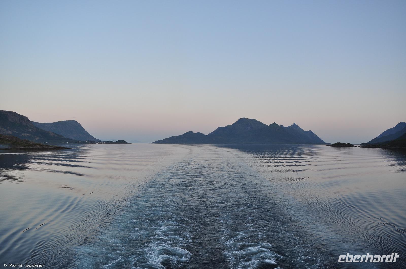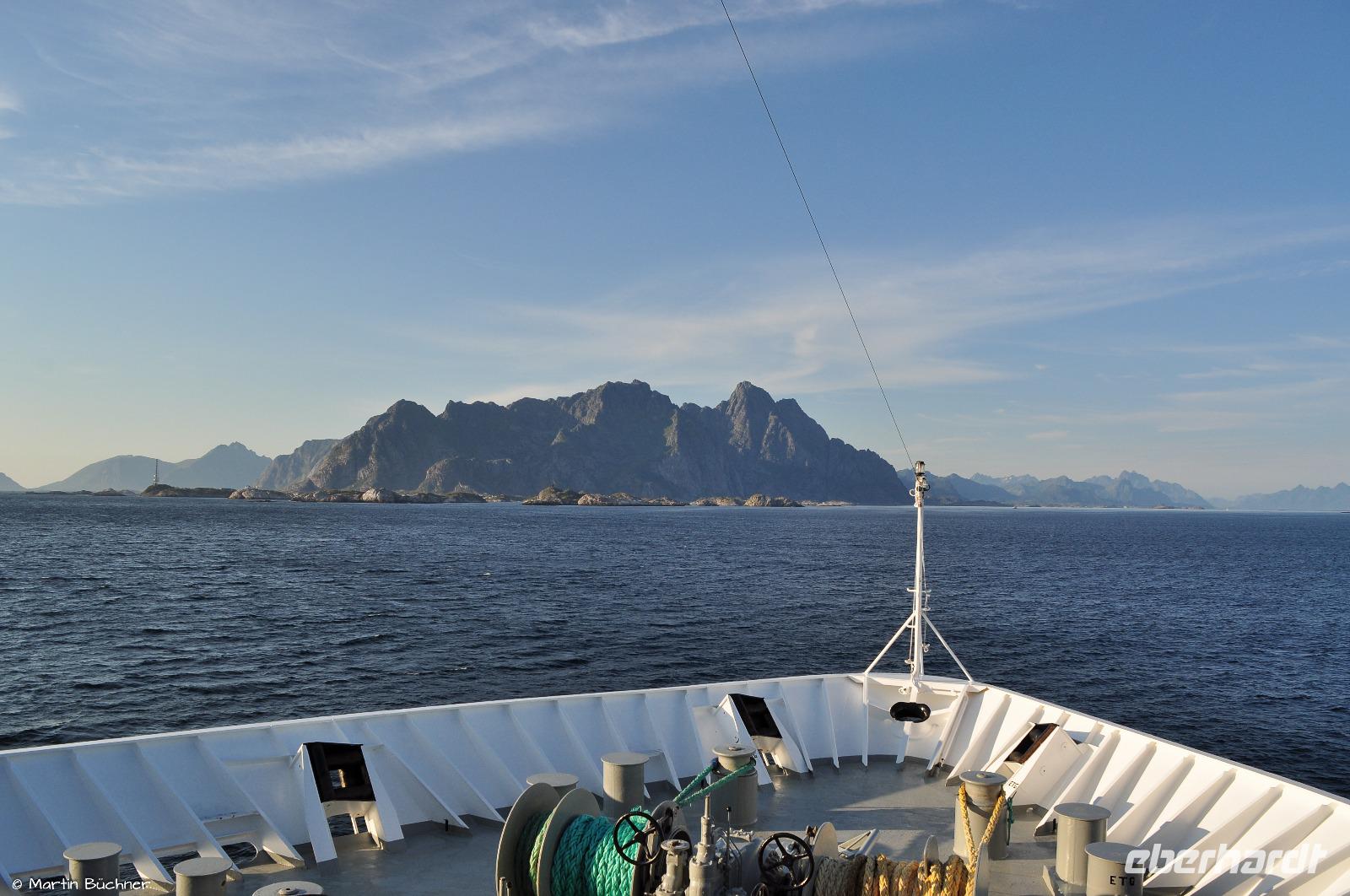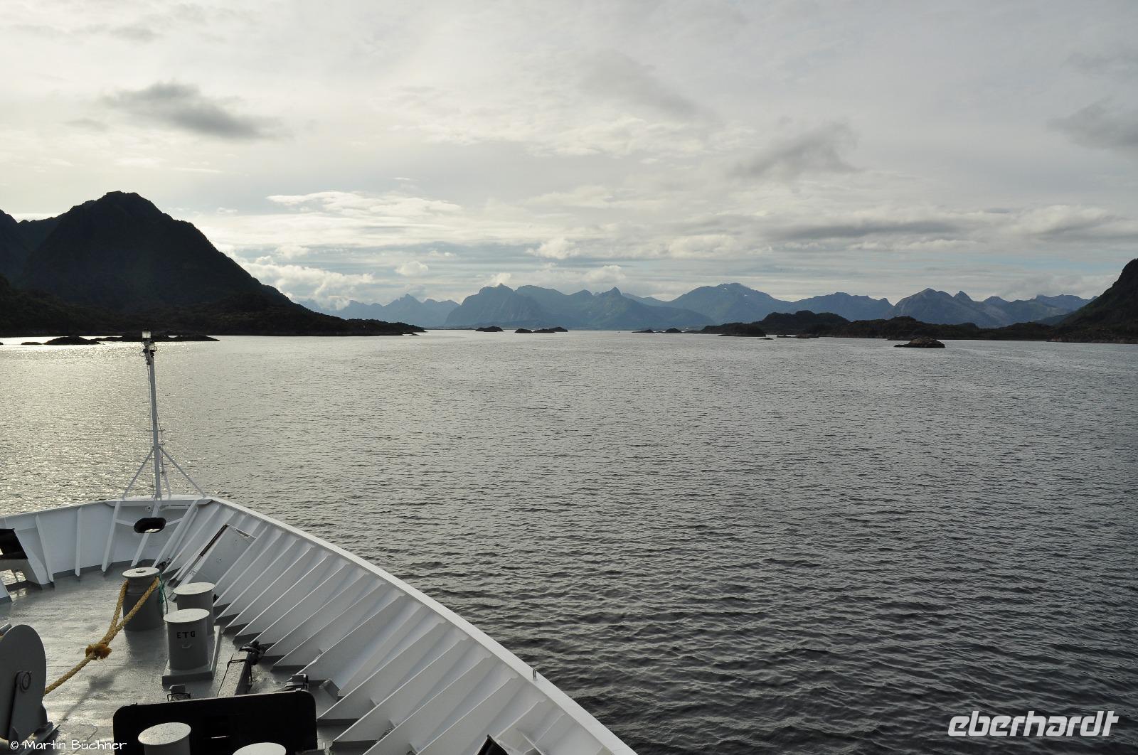 Mit dem Eintreffen aller Ausflügler setzten wir unsere Reise über den Vestfjord fort.