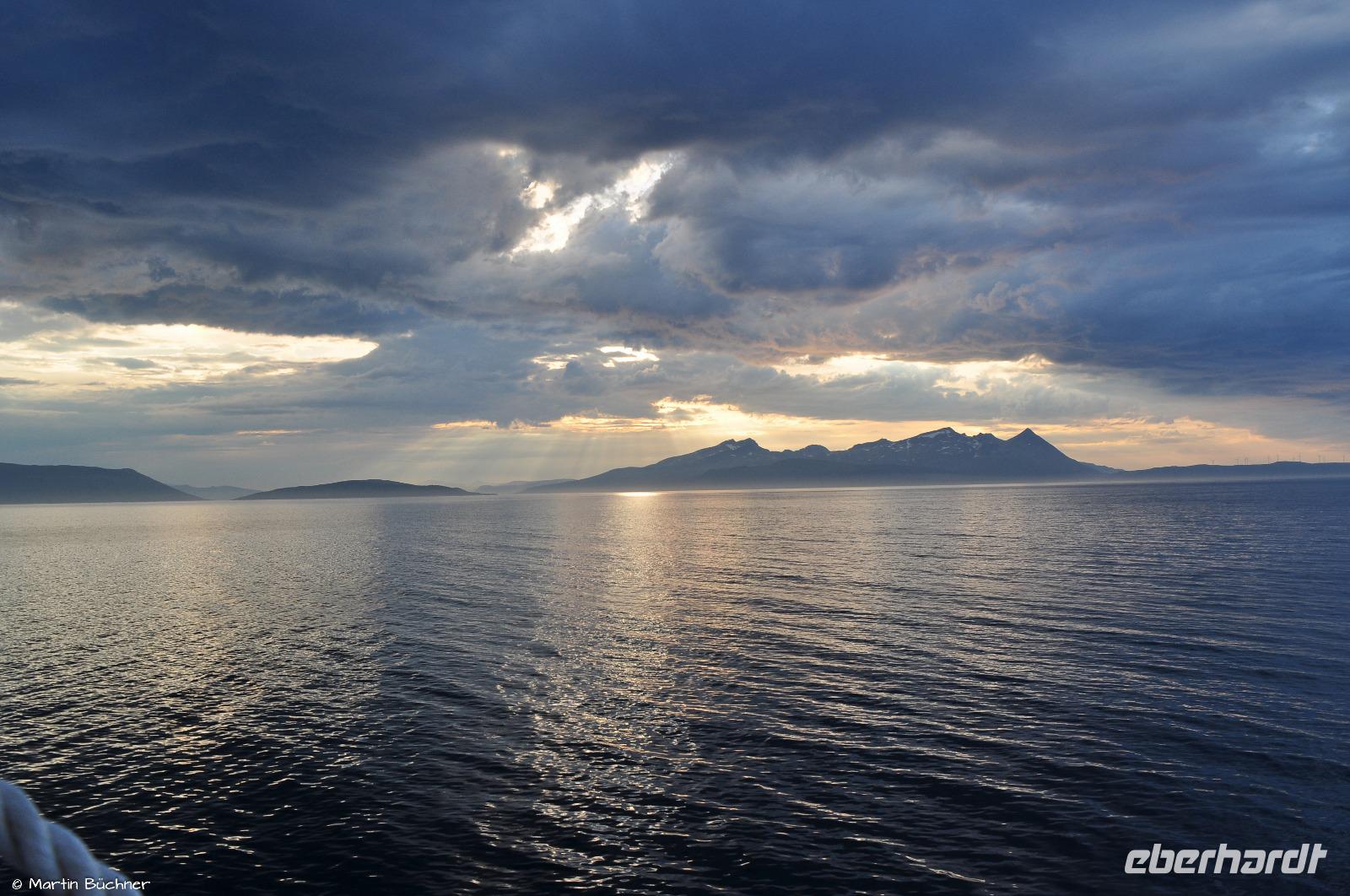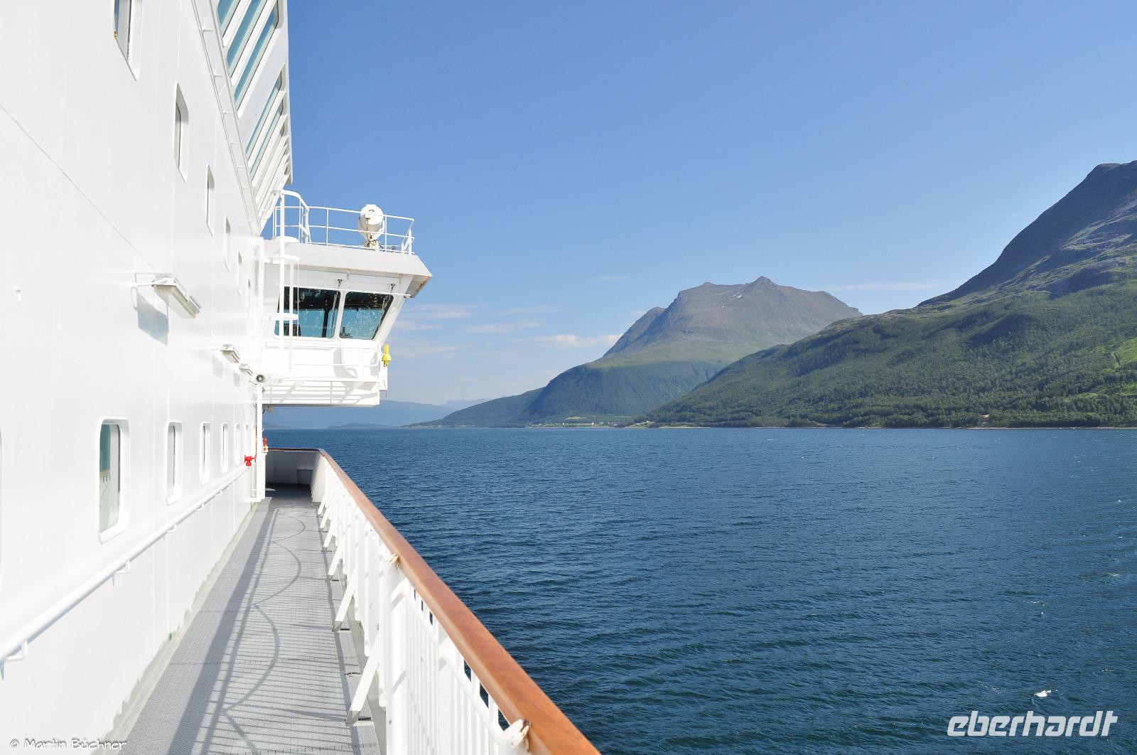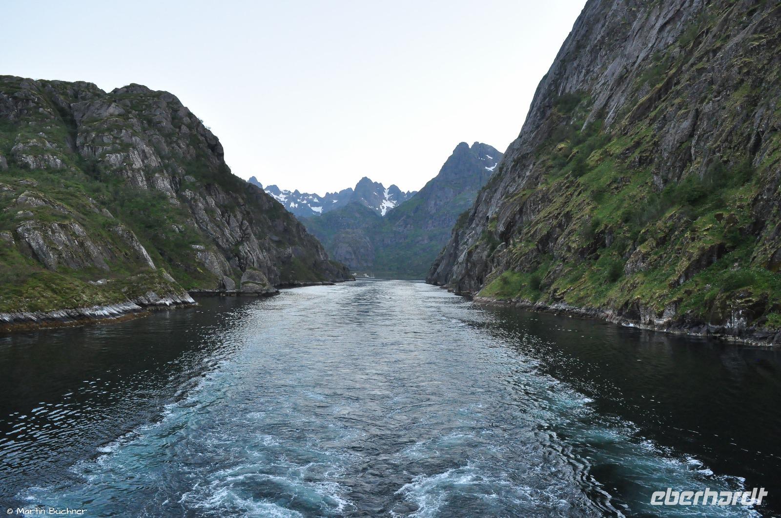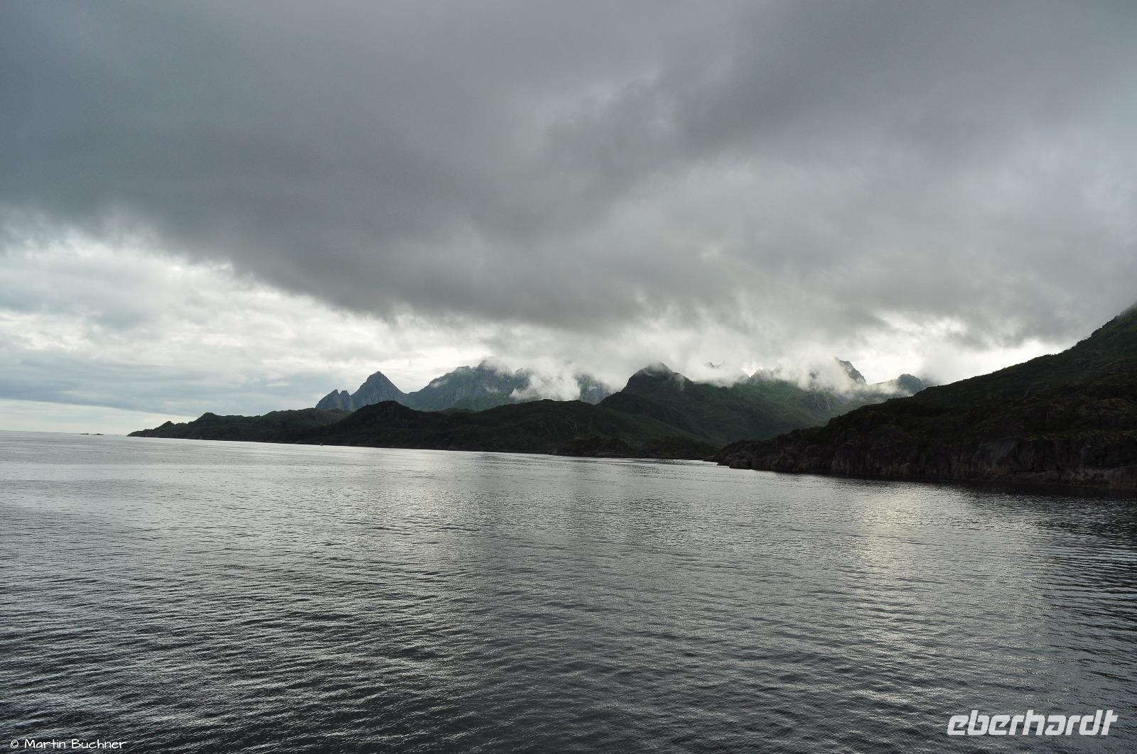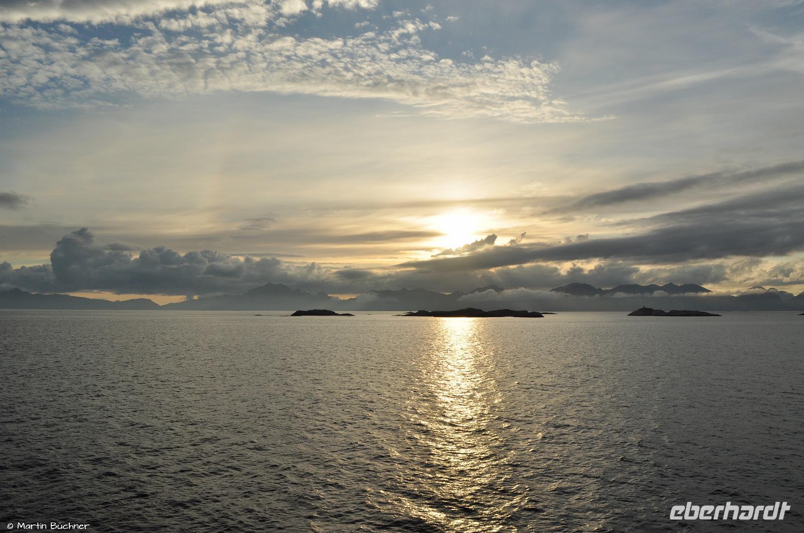 Mit dem Eintreffen aller Ausflügler setzten wir unsere Reise über den Vestfjord fort.
