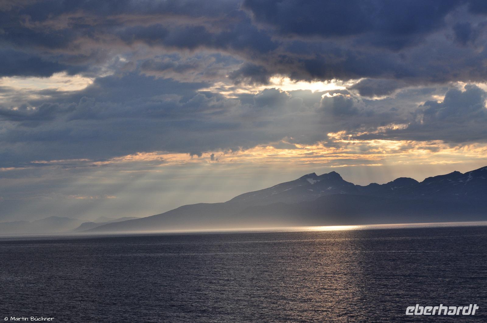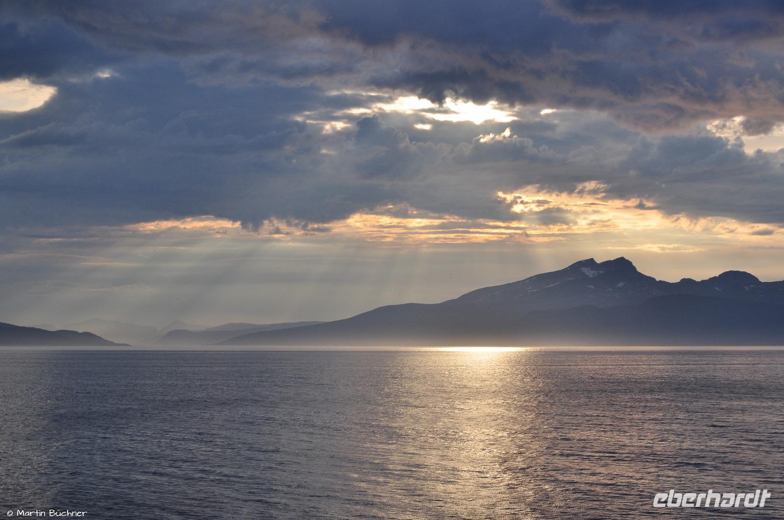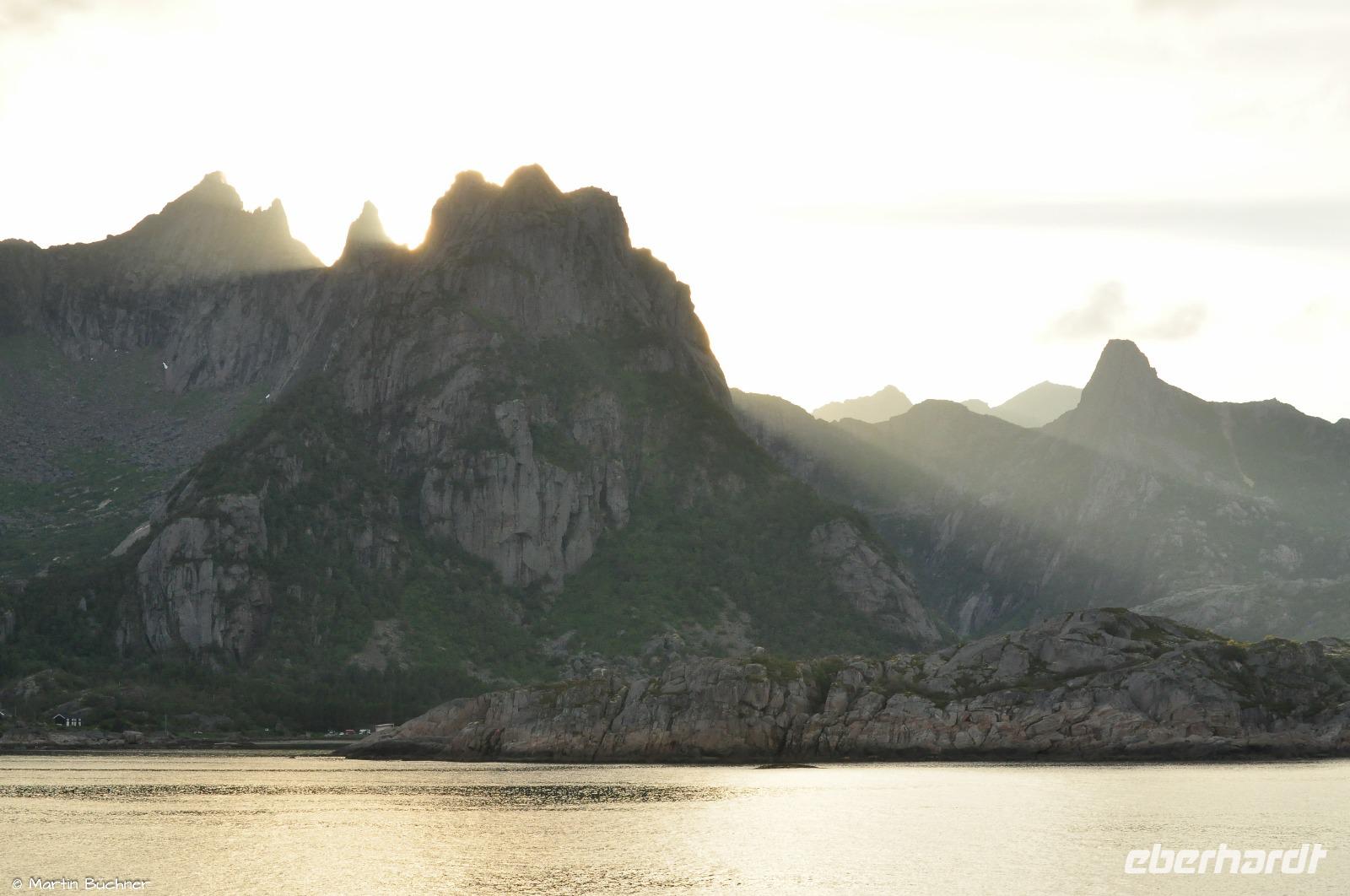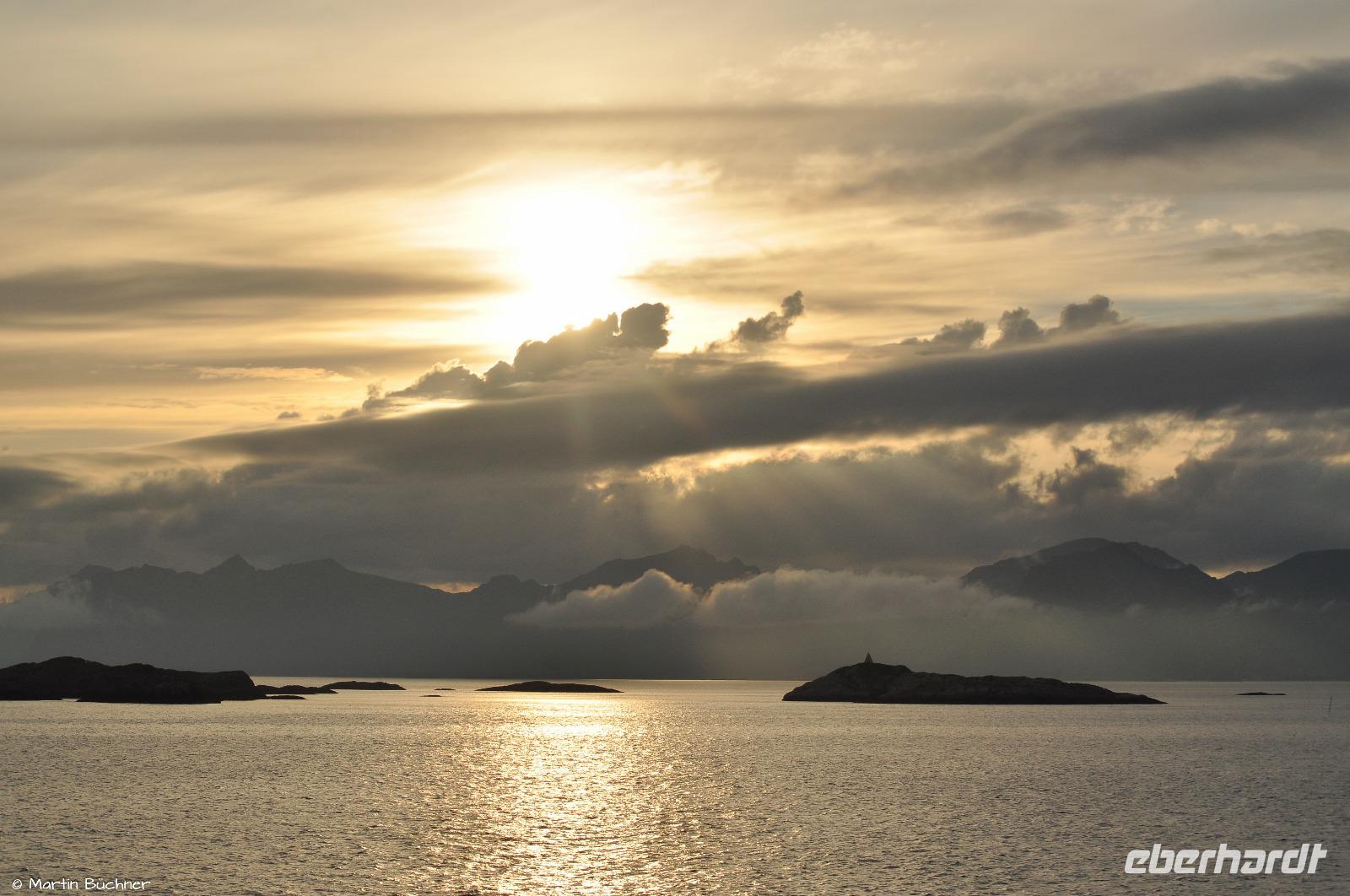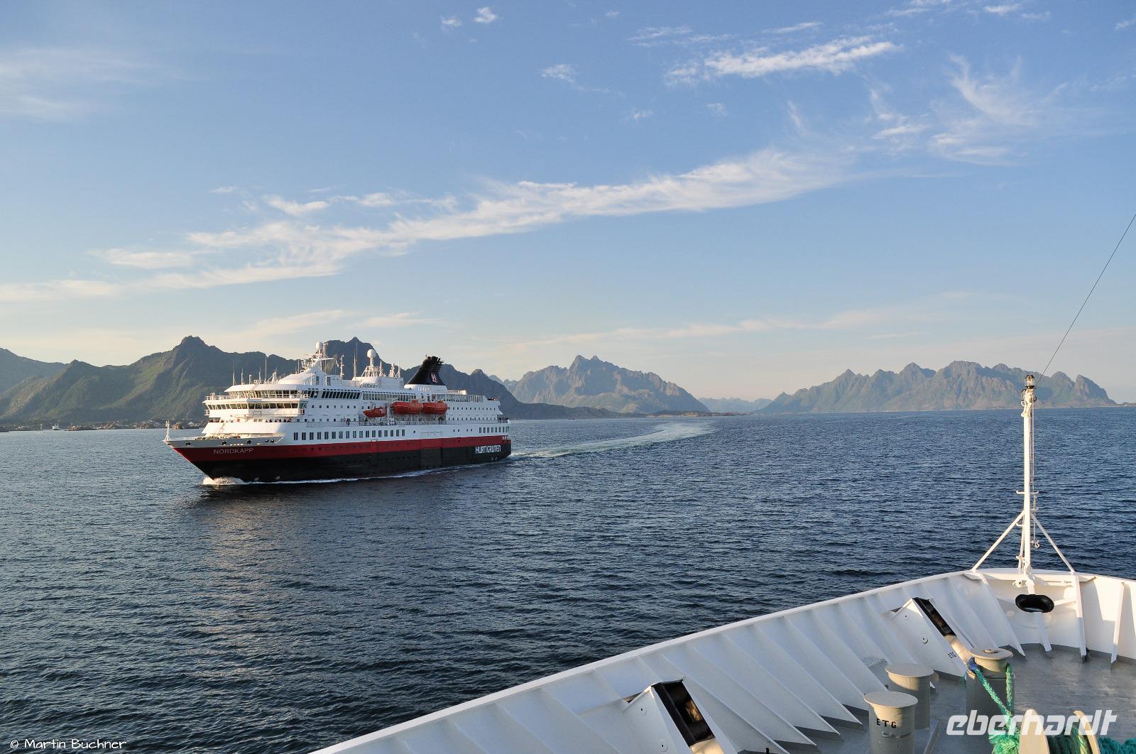 Mit dem Eintreffen aller Ausflügler setzten wir unsere Reise über den Vestfjord fort.