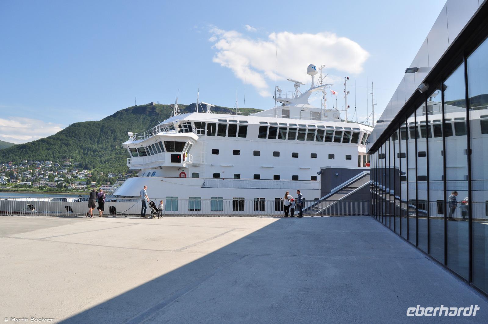 Unser Schiff die M/S Nordnorge liegt bereits seit 14.30 Uhr im Hafen, Check-In ist jedoch erst am späten Nachmittag möglich, Bezug der Kabinen erst ab 18.00 Uhr.