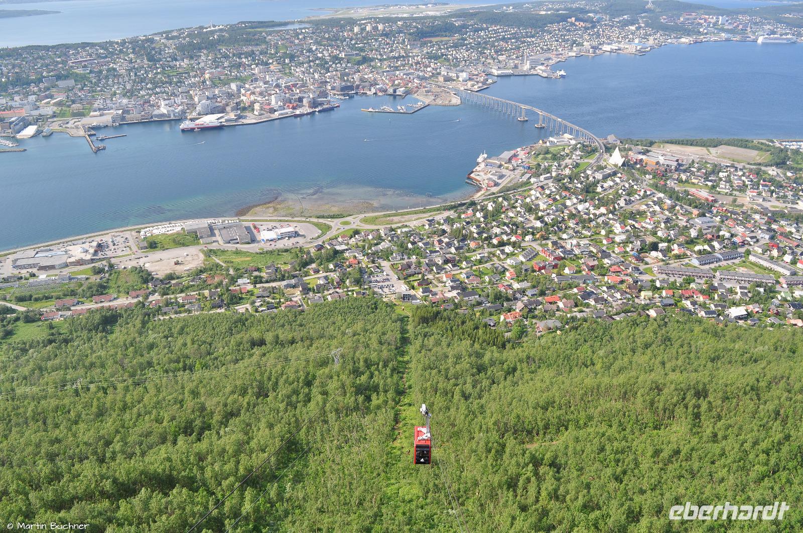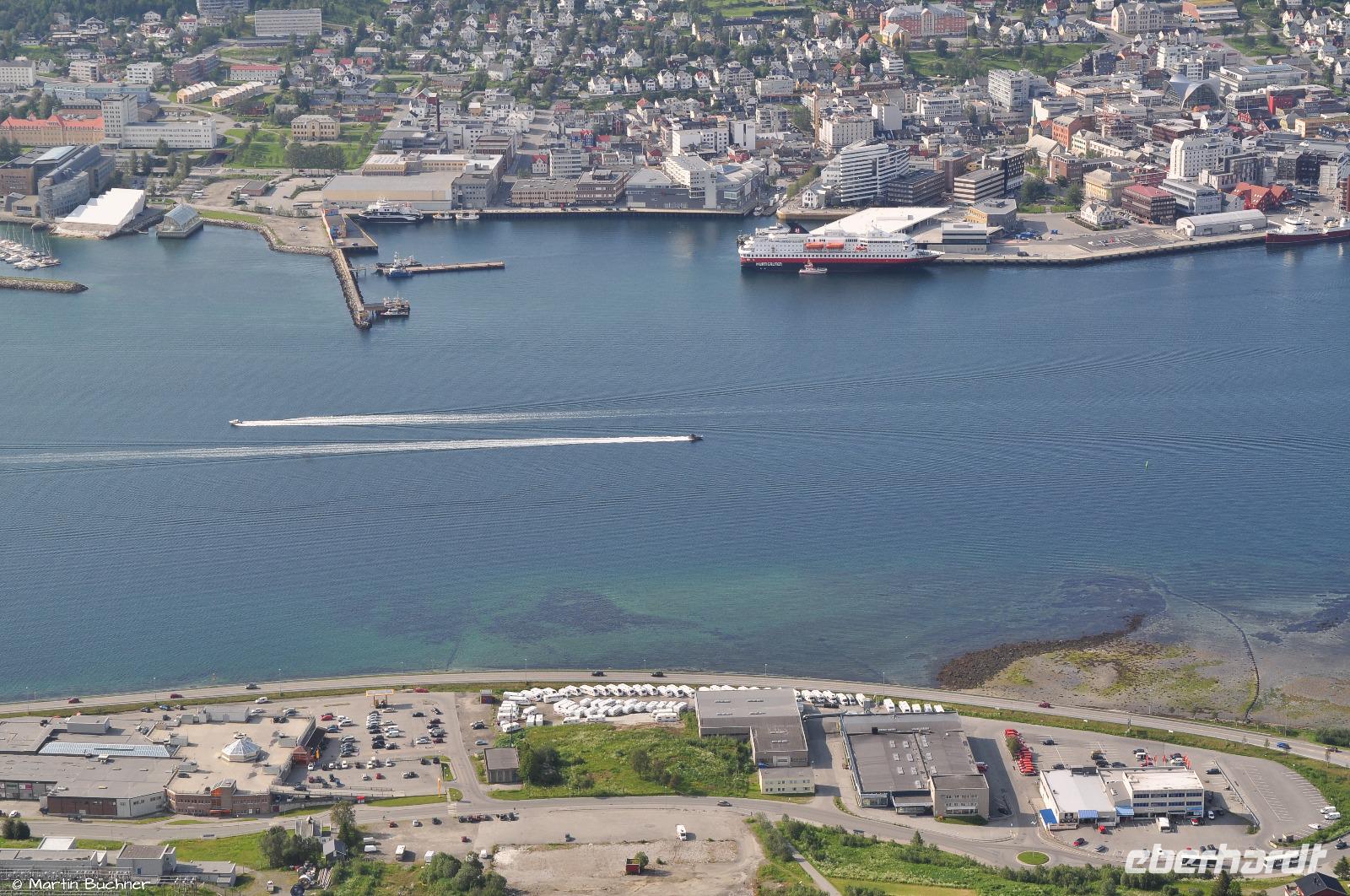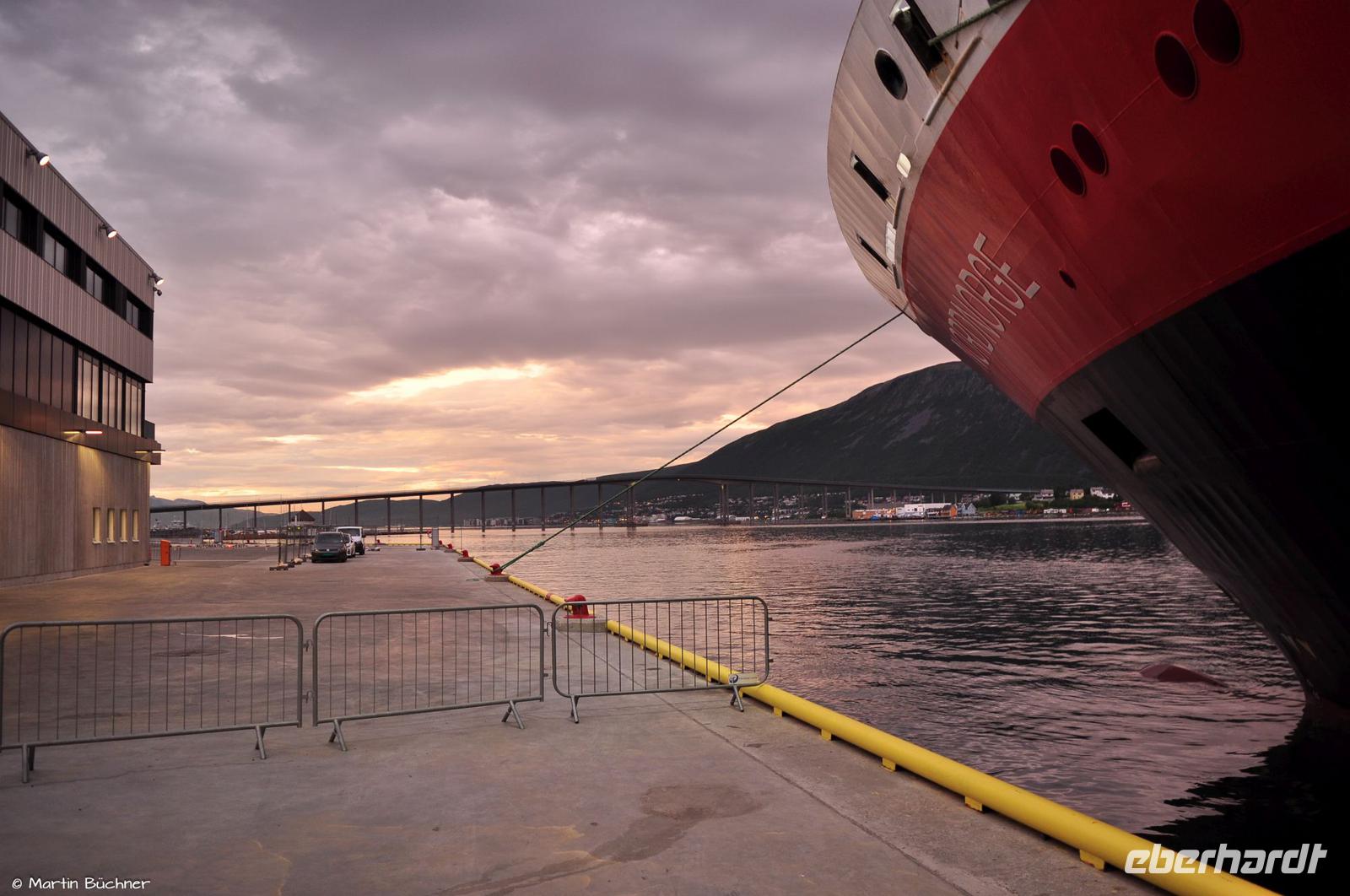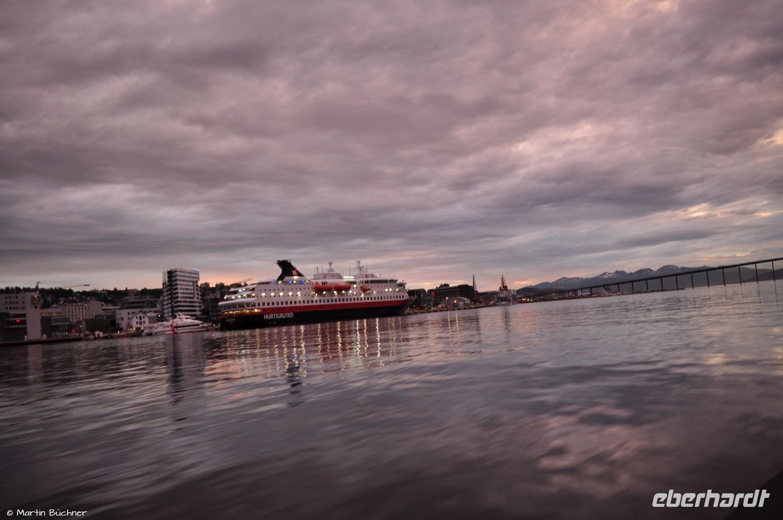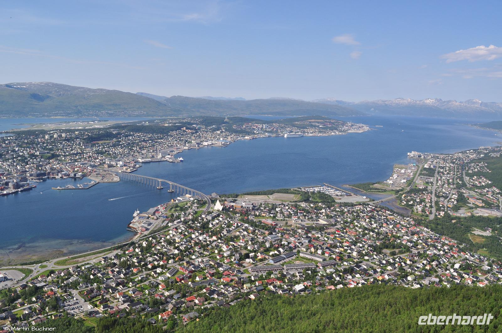 Über Harstad und Finnsnes geht es nach Tromsö, der größten Stadt Nordnorwegens. Auch hier wird eine Vielzahl von Ausflügen angeboten. Höhepunkte sind der Fjellheisen (Seilbahn auf den Hausberg), die Eismeerkathedrale und das Polaria Museum.
