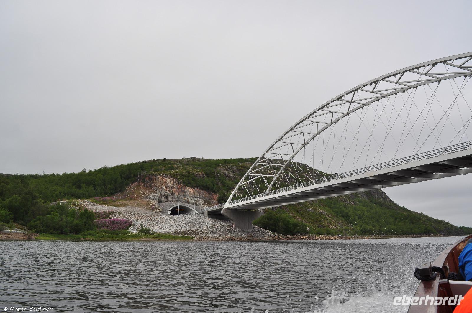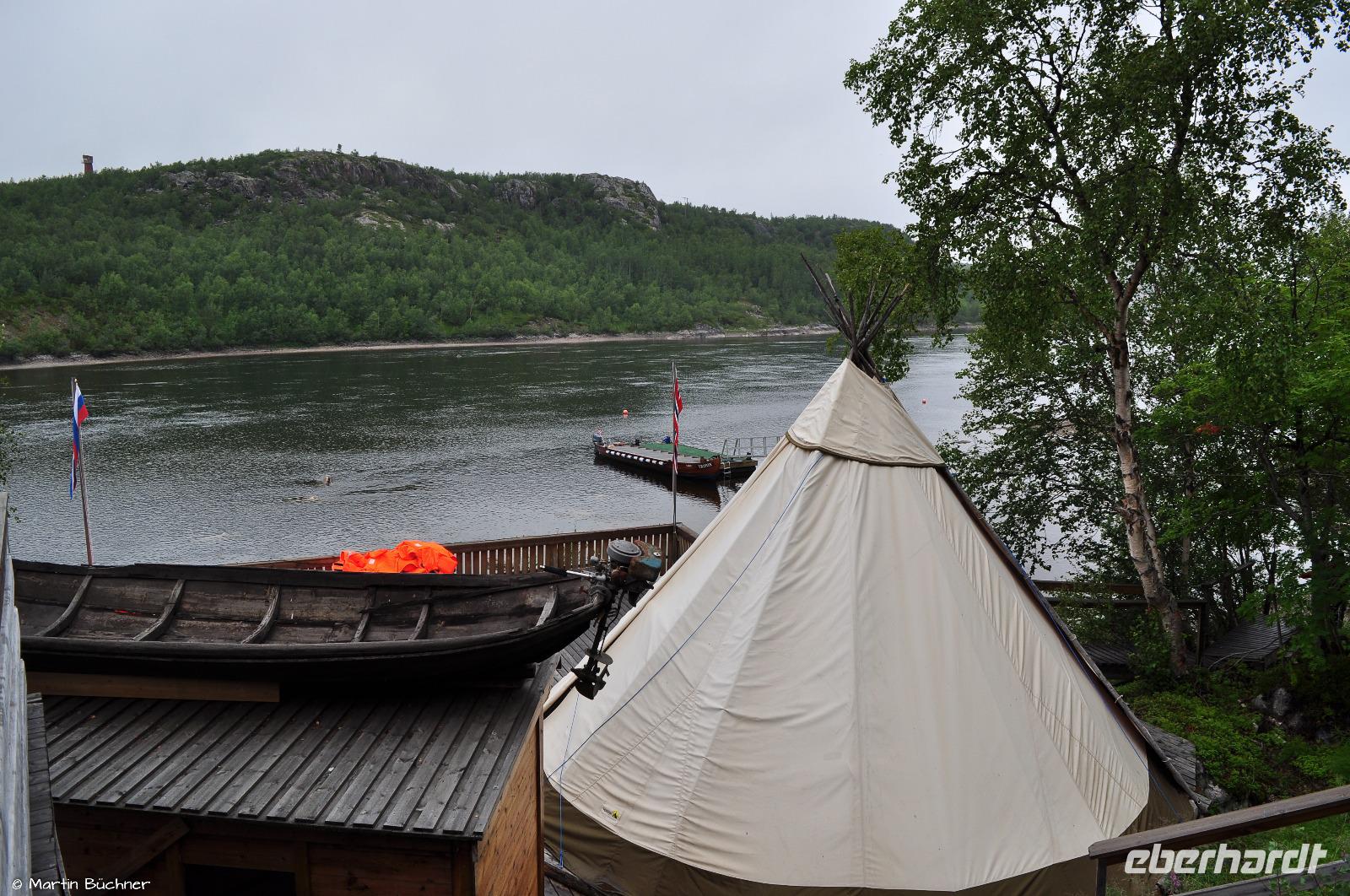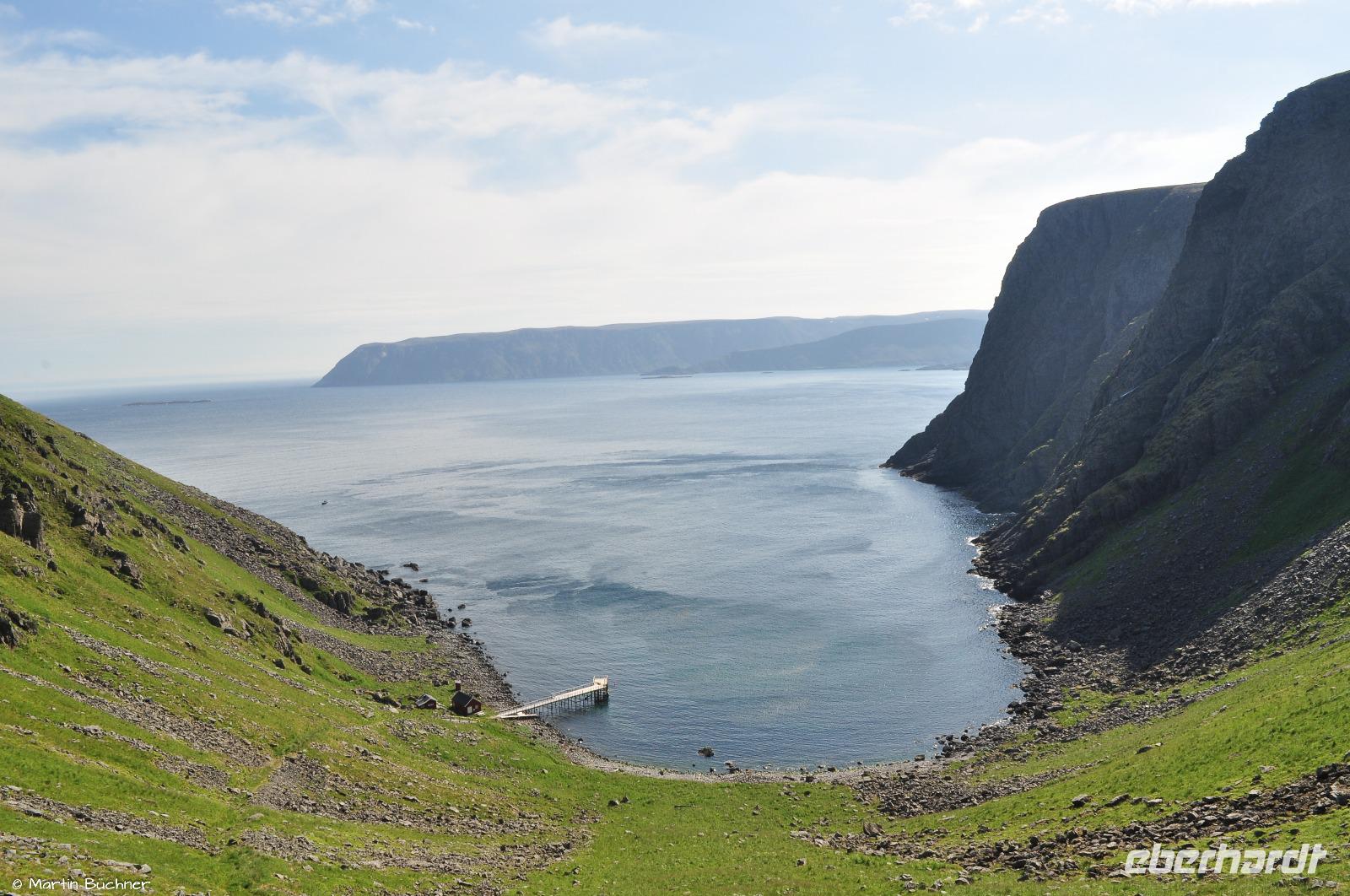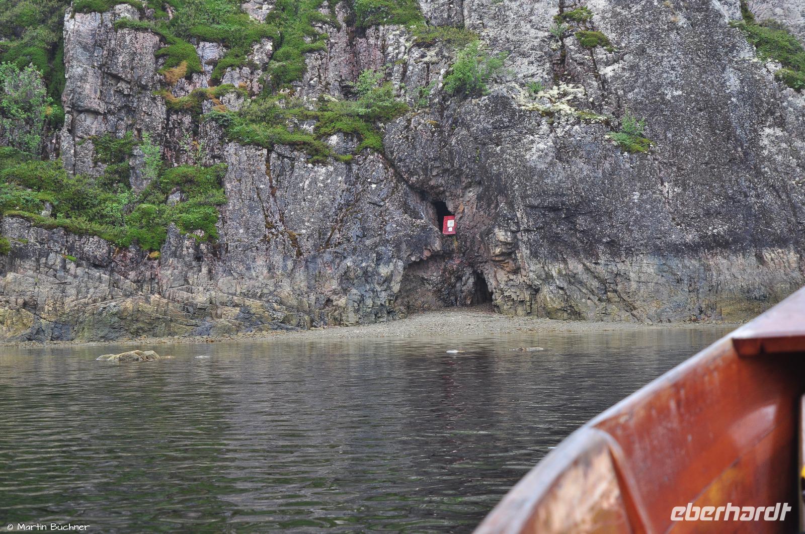 Nach der Rückkehr zum Schiff überqueren wir den Porsangerfjord. Mit der Einfahrt nach Kjöllefjord passieren wir die Finnkirke, eine Felsformation in Form einer kleinen Kirche, ein heiliger Platz für die lokalen Samen.