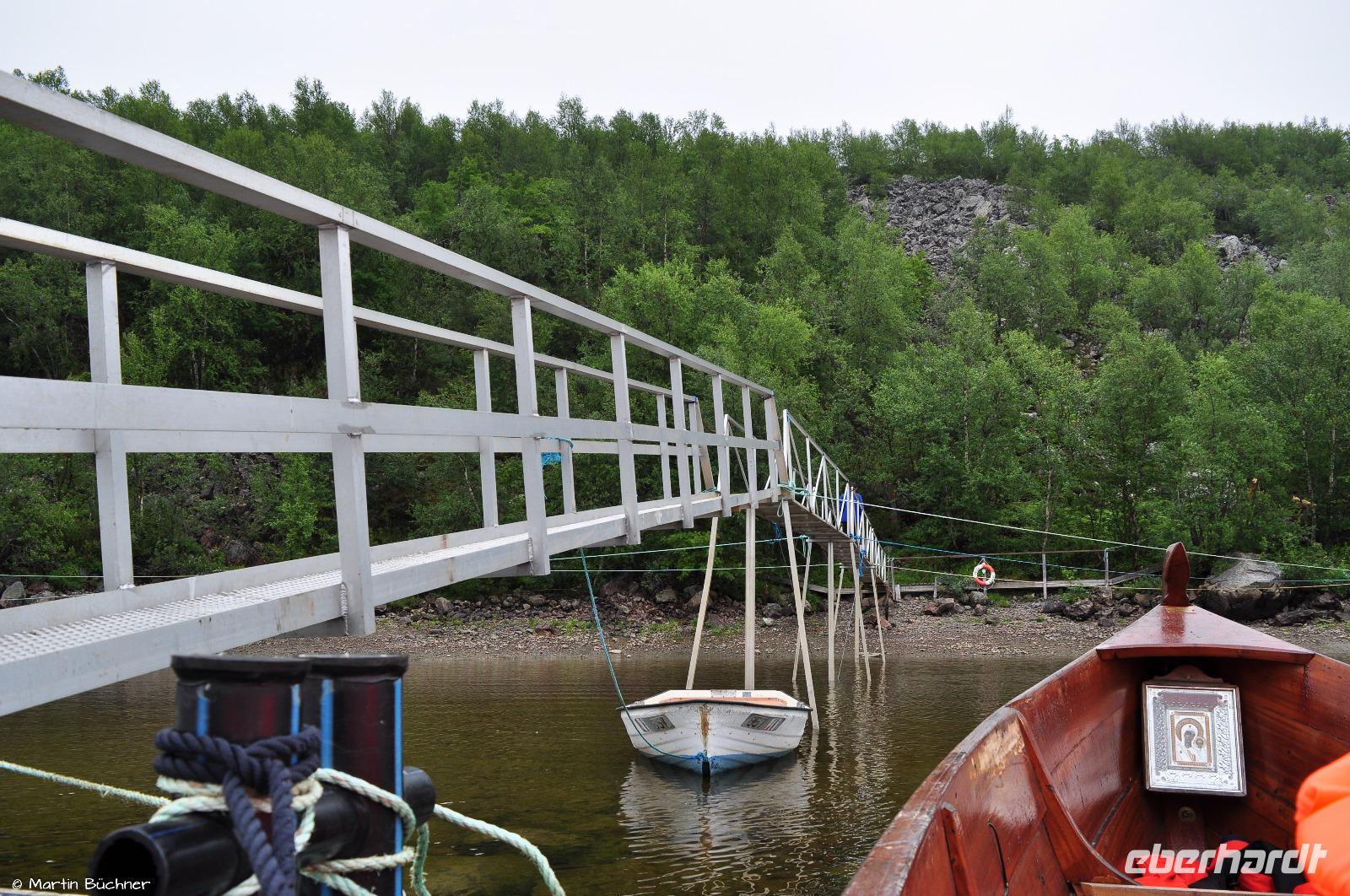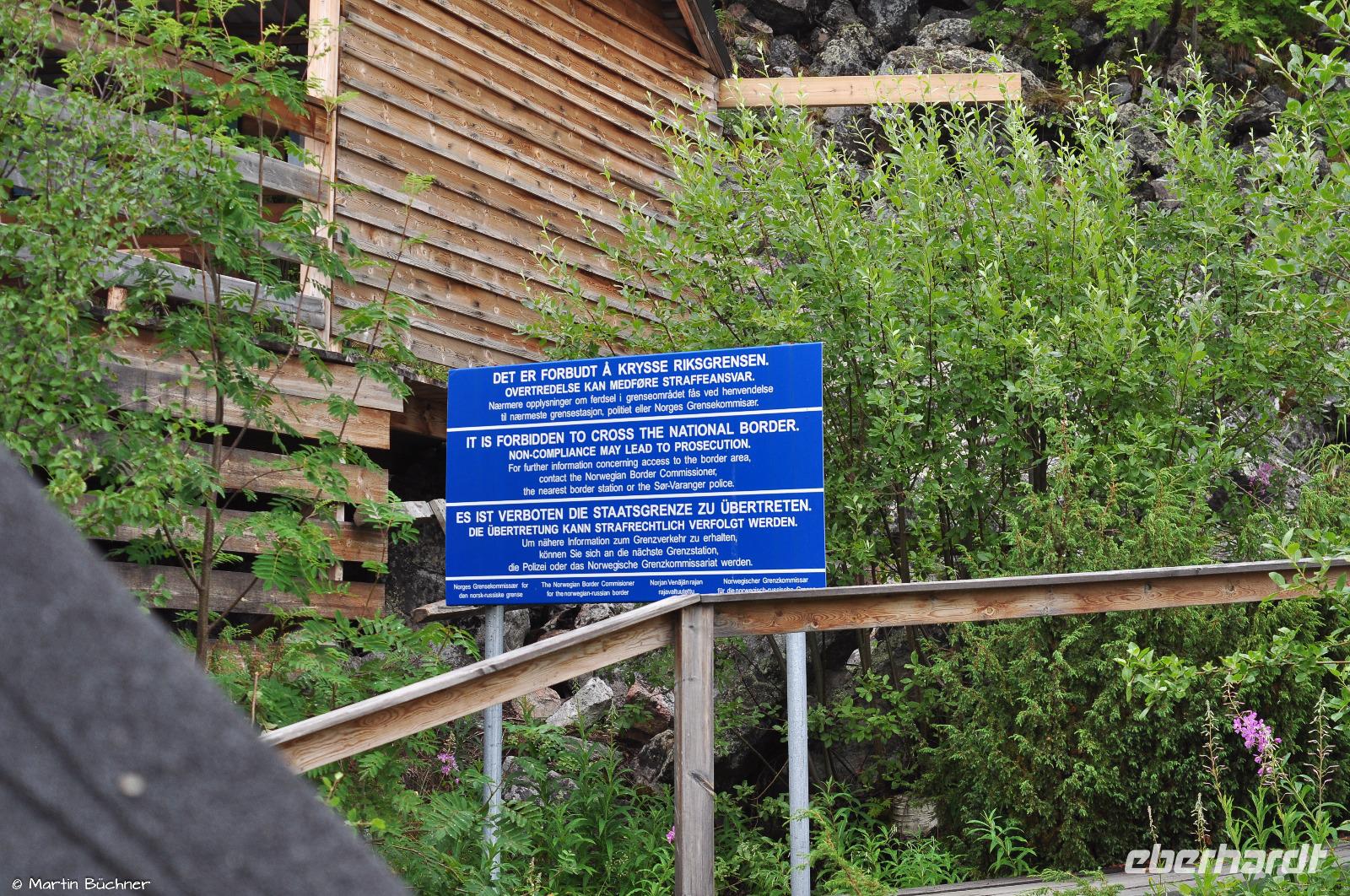 Kirkenes, geographischer Wendepunkt der Reise. Kirkenes liegt etwa 15 km von der russischen Grenze entfernt. Mit dem Bus oder einem Flussboot kann ein Ausflug zur russischen Grenze unternommen werden.