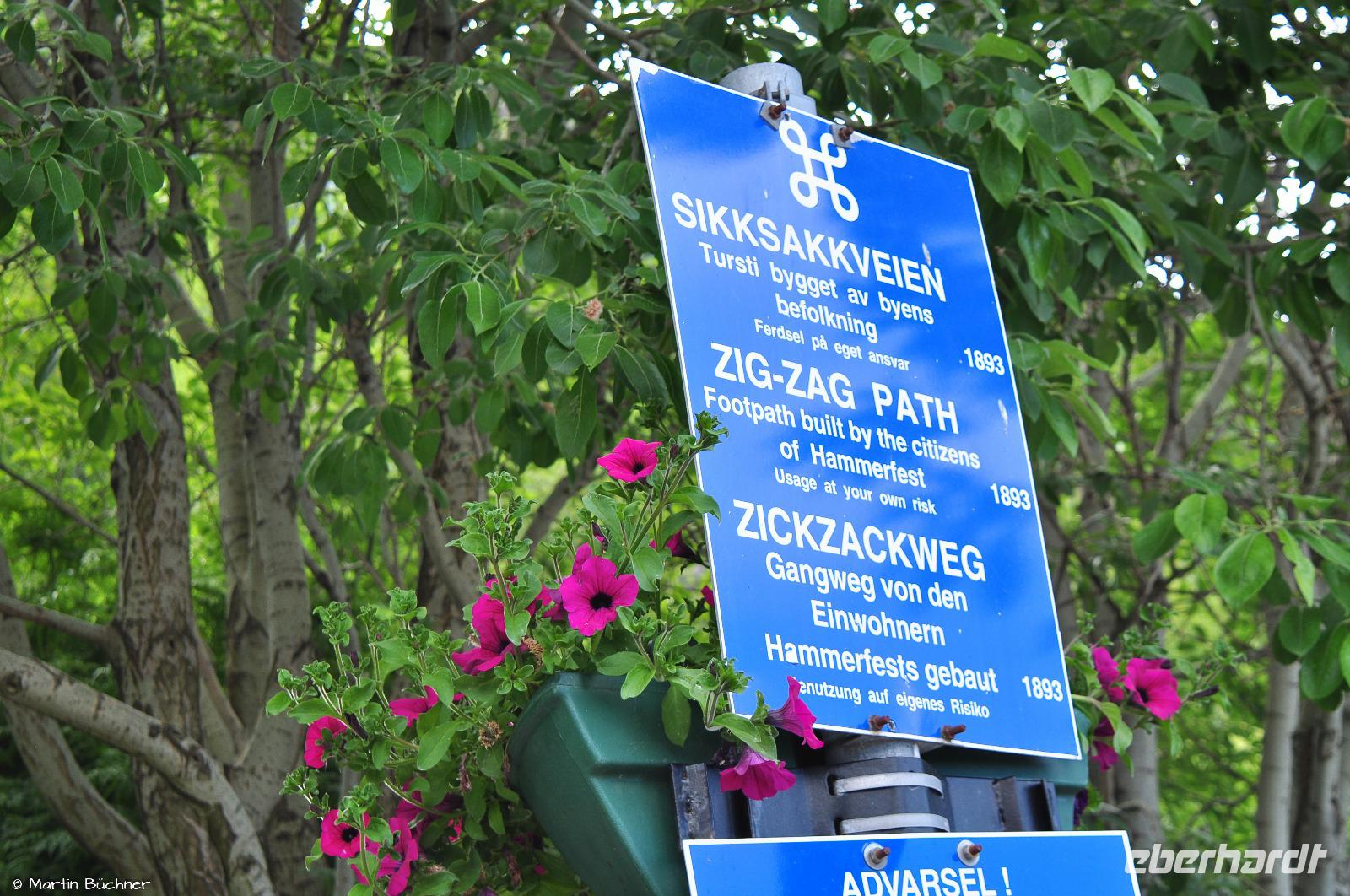 Wir wandern über den Zick-Zack-Weg hinauf zur Fjellstua und genießen den atemberaubenden Blick über Hammerfest.