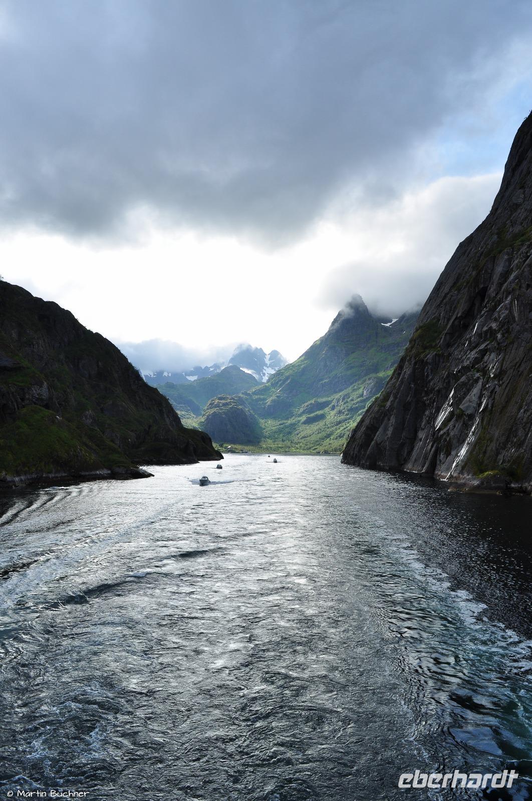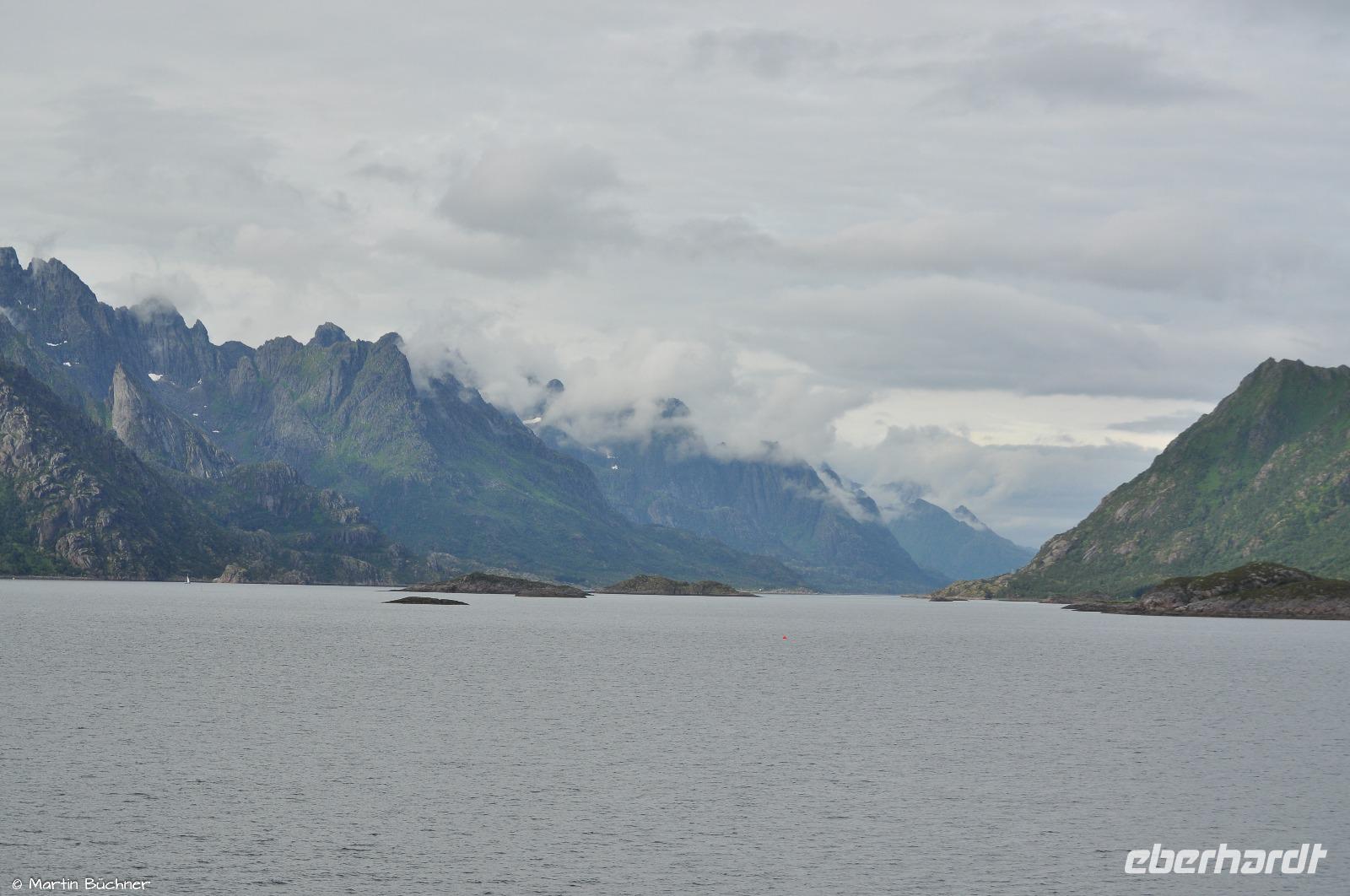 Am Nachmittag erreichen wir den 26 km langen Raftsund, eine Wasserstraße, die Insel Hinnöya (Vesteraalen) von Austvaagöya (Lofoten) trennt.