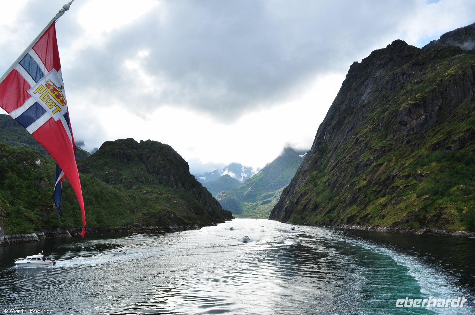 Höhepunkt ist die Einfahrt in den Trollfjord.