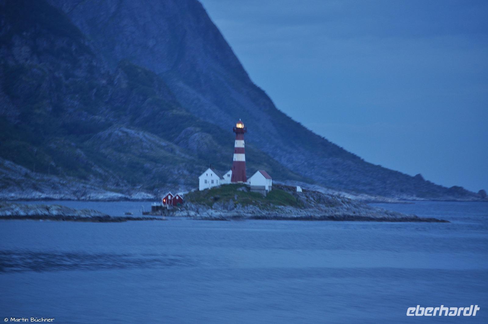 Auf der Strecke liegt der markante Leuchtturm Landegode fyr.