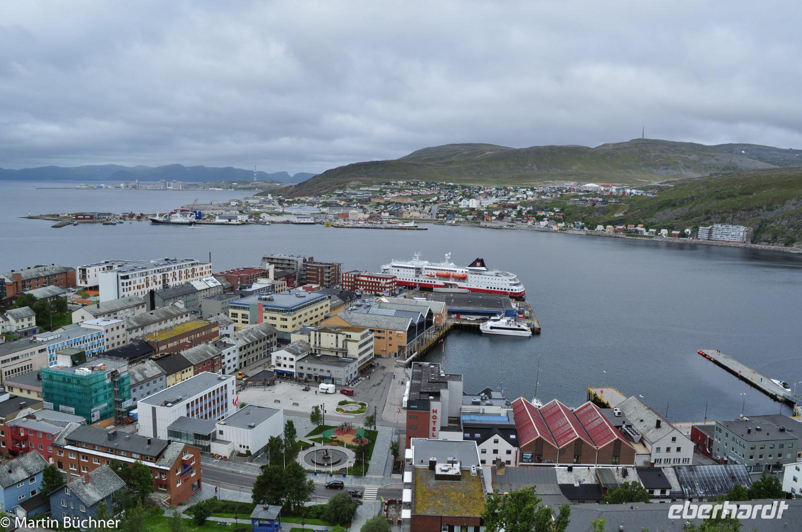 Am Vormittag erreichen wir Hammerfest, die nördlichste Stadt der Welt. Die erste Stadt der Welt mit einer elektrischen Straßenbeleuchtung. Drehort eines deutschen Krimis „Mord in Hammerfest" und Endpunkt des Struve-Meridian-Bogens, ein gewaltiges Messprojekt zur Erdvermessung, durchgeführt im 19. Jh. Diese Vermessung gehört zum UNESCO Weltkulturerbe. In Hammerfest steht der letzte Messpunkt. Der erste steht am Schwarzen Meer.