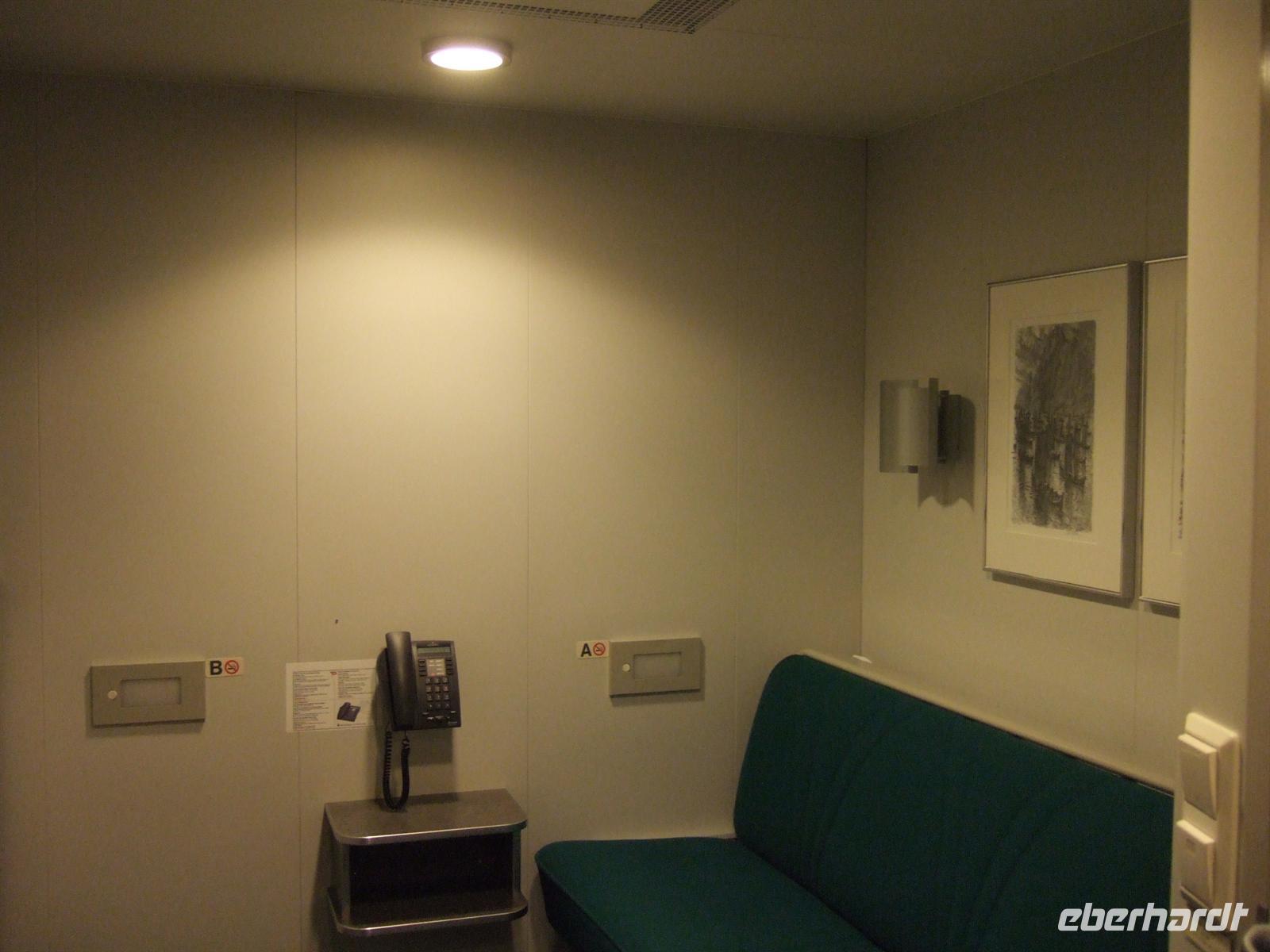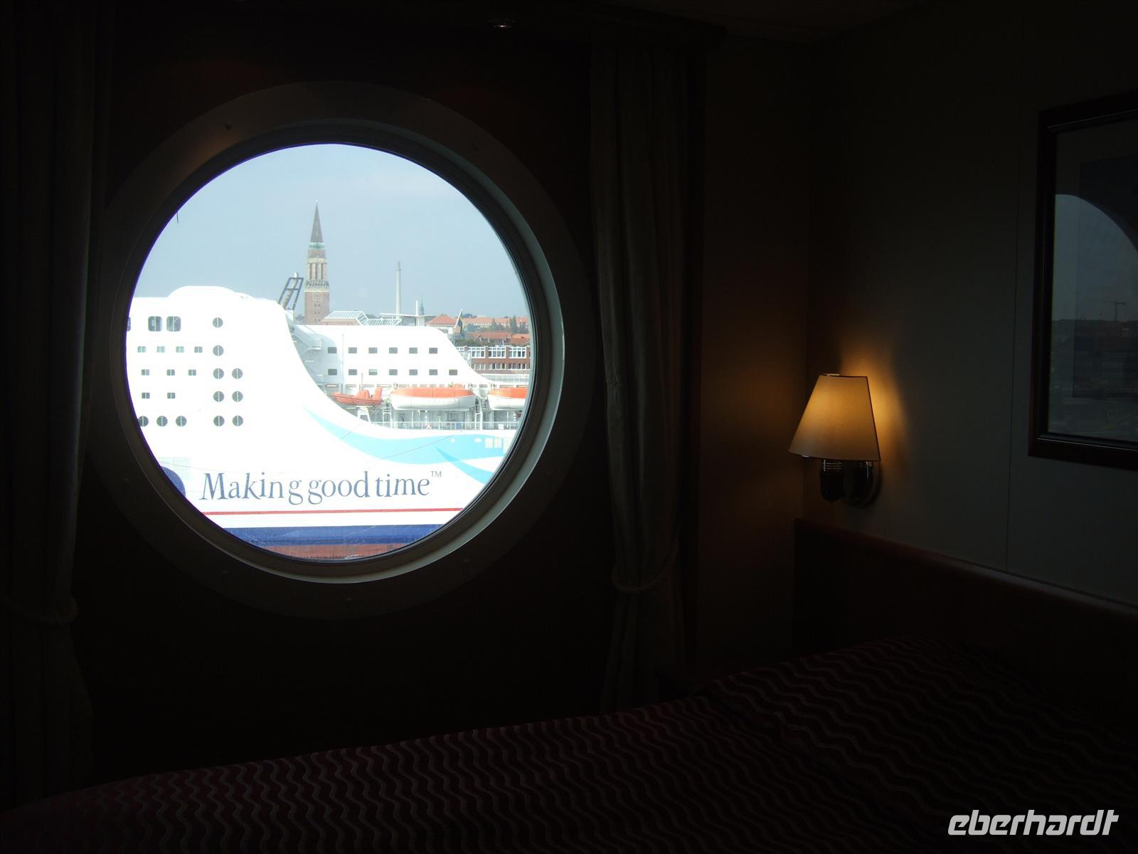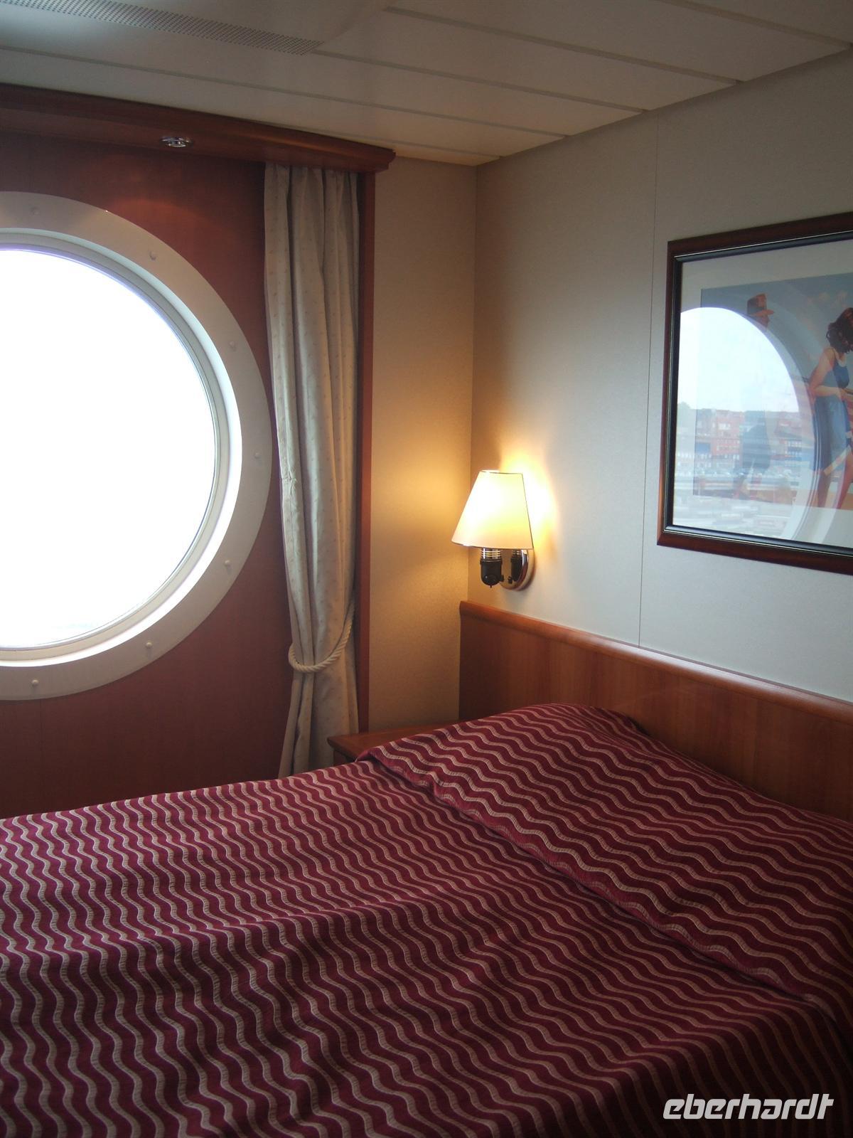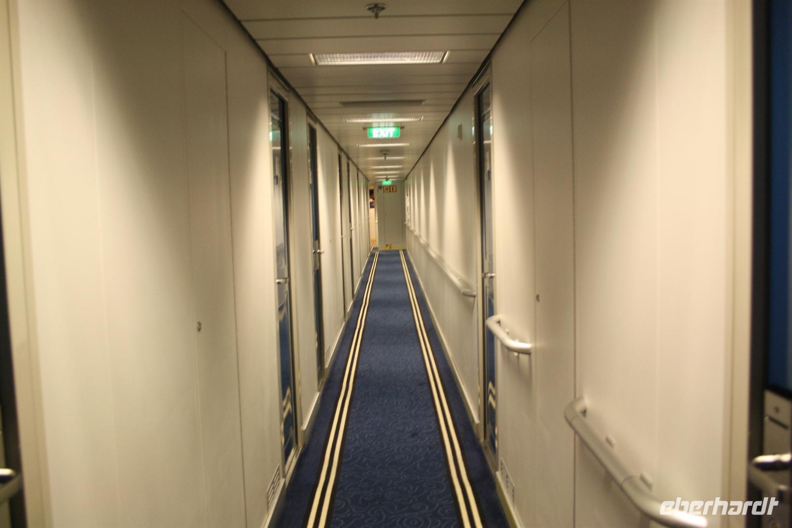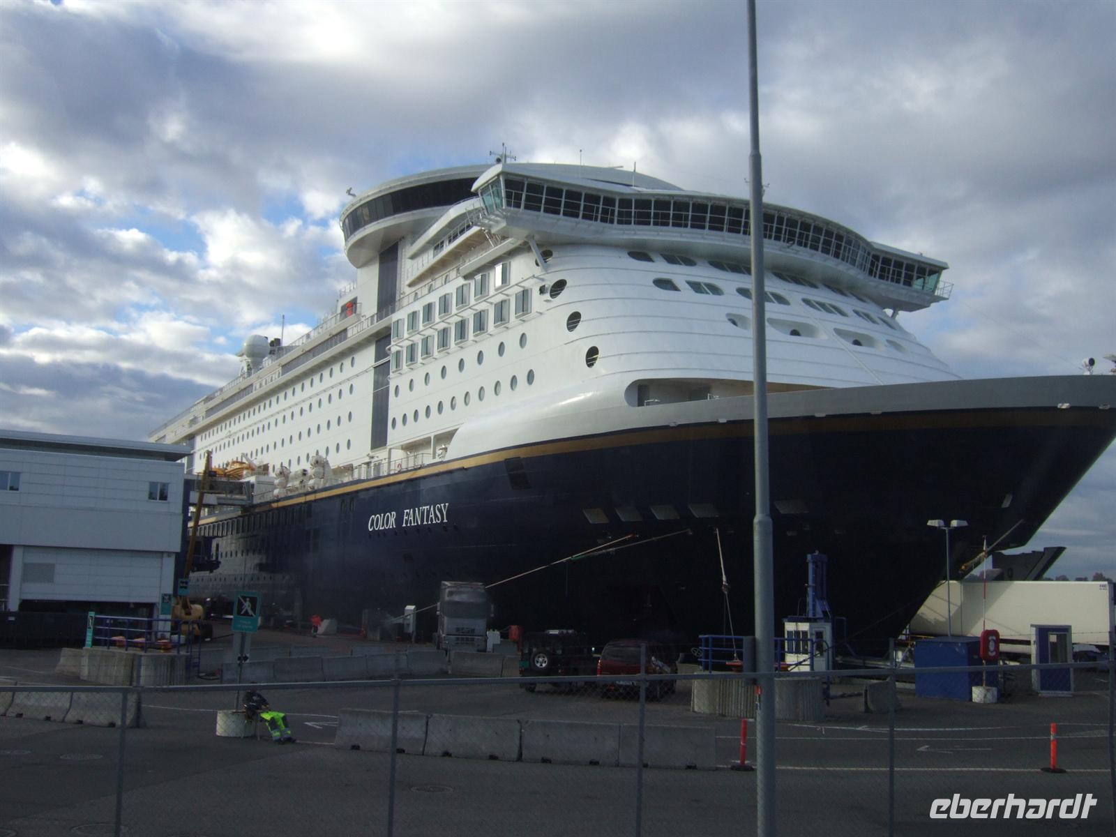 Mit Ruhe und Gelassenheit nehmen wir all unsere Gepäckstücke und begeben uns ins Terminal. Da die Einschiffung auf die „Color Fantasy“ erst um 13:15 Uhr beginnt, bleibt noch ein wenig Zeit, um einige Fotos von dem gigantischen Kreuzfahrtschiff mit Autodeck zu schießen. Jeder Gast hat eine Bordkarte, welche zur Ein- und Ausschiffung benötigt wird und gleichzeitig der Zimmerschlüssel ist. Auf der Bordkarte ist der Lift (vorn oder hinten) vermerkt, mit dem man am schnellsten zur Kabine kommt. All unsere Kabinen liegen auf den Decks 8 und 11 und besitzen ein riesiges Bullauge. Trotz Müdigkeit, da die meisten von uns ja bereits seit kurz nach Mitternacht auf den Beinen sind, entdecken wir die „Color Fantasy“ näher.