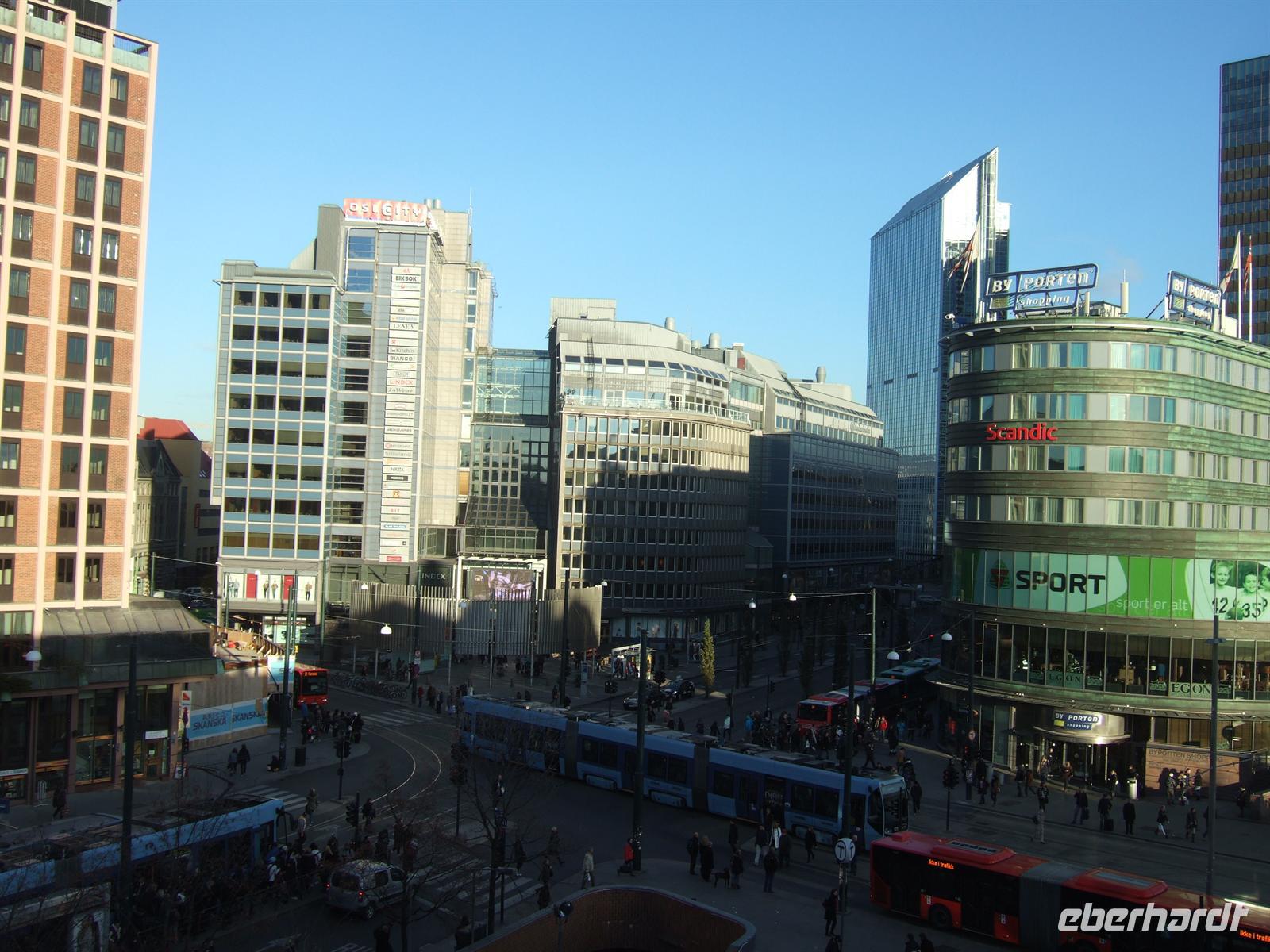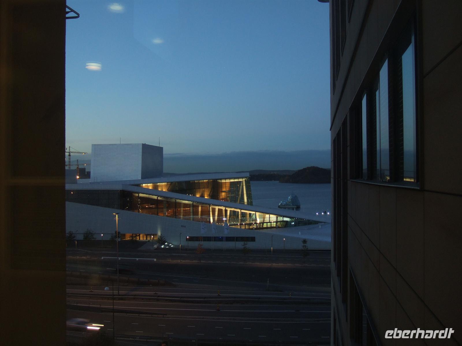 Anschließend fahren wir Richtung Stadtzentrum und passieren die Akershus Festung sowie das neue Wohngebiet Akers Brygge. Die 2008 eröffnete Oper ähnelt einem treibenden Eisberg, auf dessen Dach man spazieren kann, und bildet den Abschluss unserer interessanten Stadtrundfahrt durch die norwegische Hauptstadt. Denn direkt zwischen der Oper und dem Hauptbahnhof ist unser Thon-Hotel Opera gelegen. Unsere modern ausgestatteten Zimmer sind bereits bezugsfertig und es bleibt Zeit, die Stadt zu Fuß zu erkunden. Einige Gäste schließen sich mir an, um die Bahnfahrkarten abzuholen und im Anschluss die Karl-Johans-Gate entlang zu spazieren bis zum Königlichen Schloss.