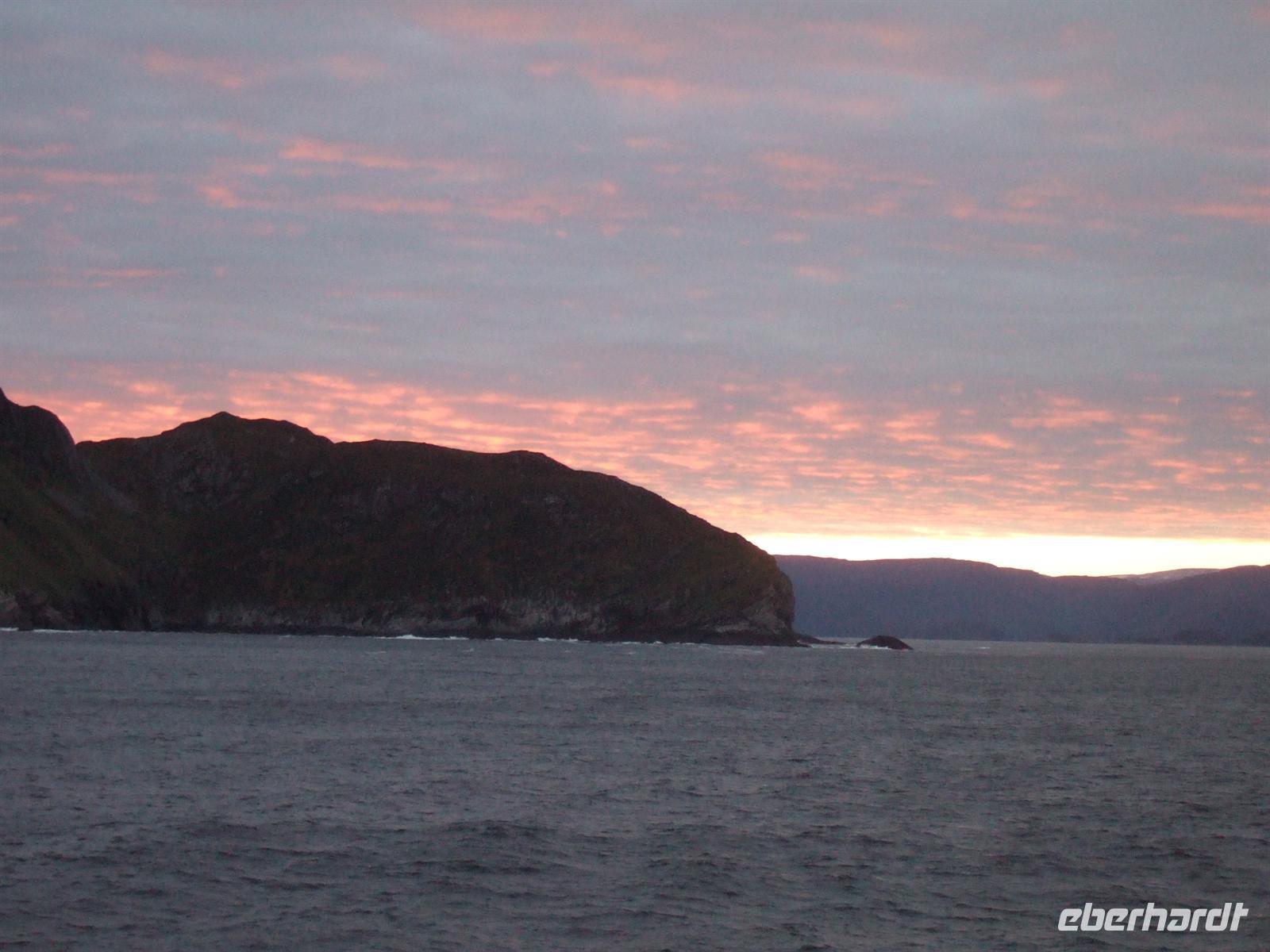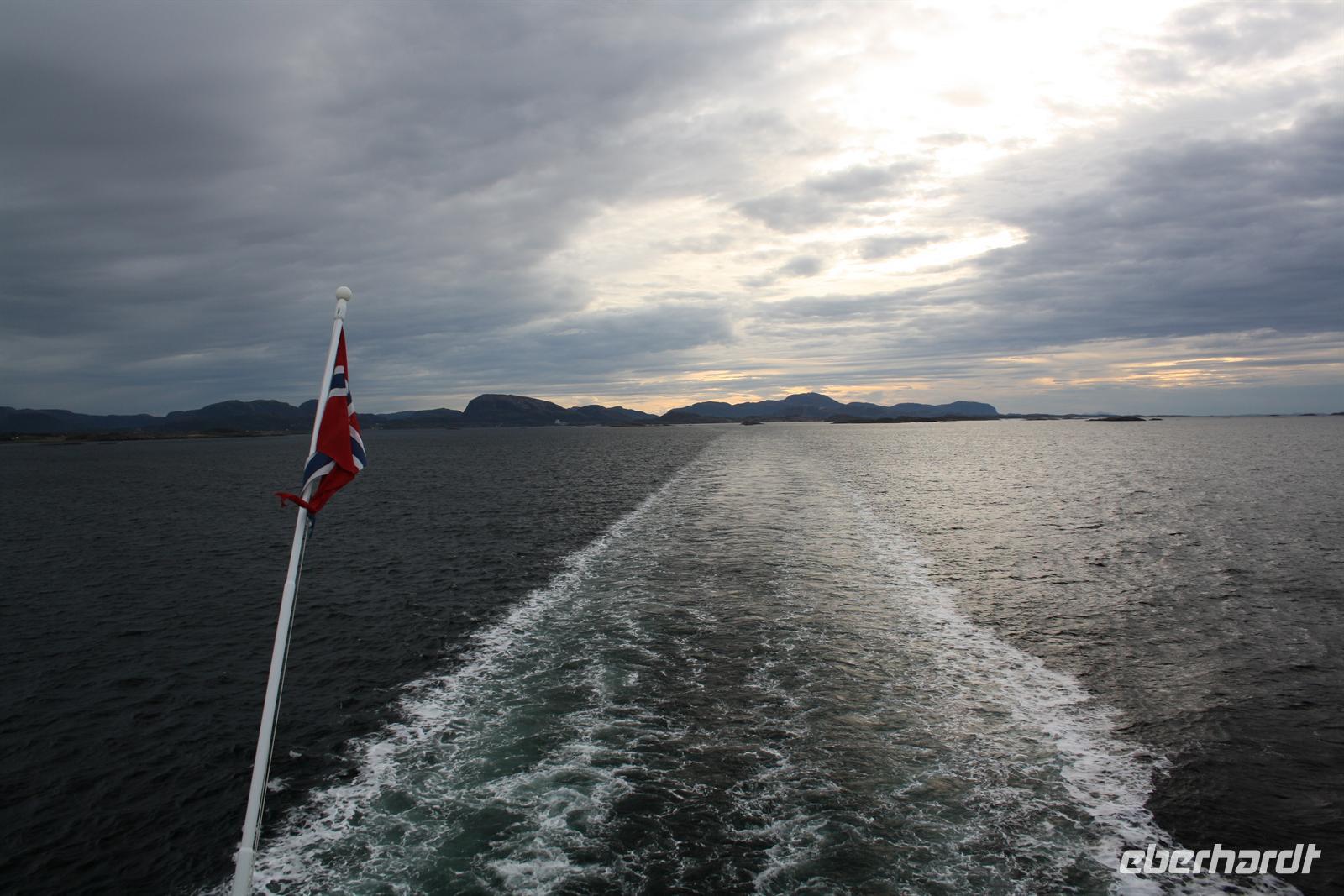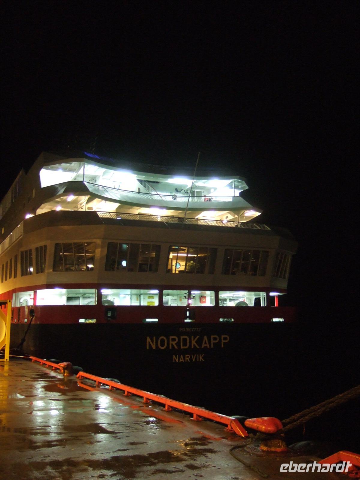 Nach einem weiteren Stopp in Stamsund überqueren wir erneut ein 3,5-stündig dauerndes offenes Meerstück, bevor wir weit nach Mitternacht Bodo erreichen.