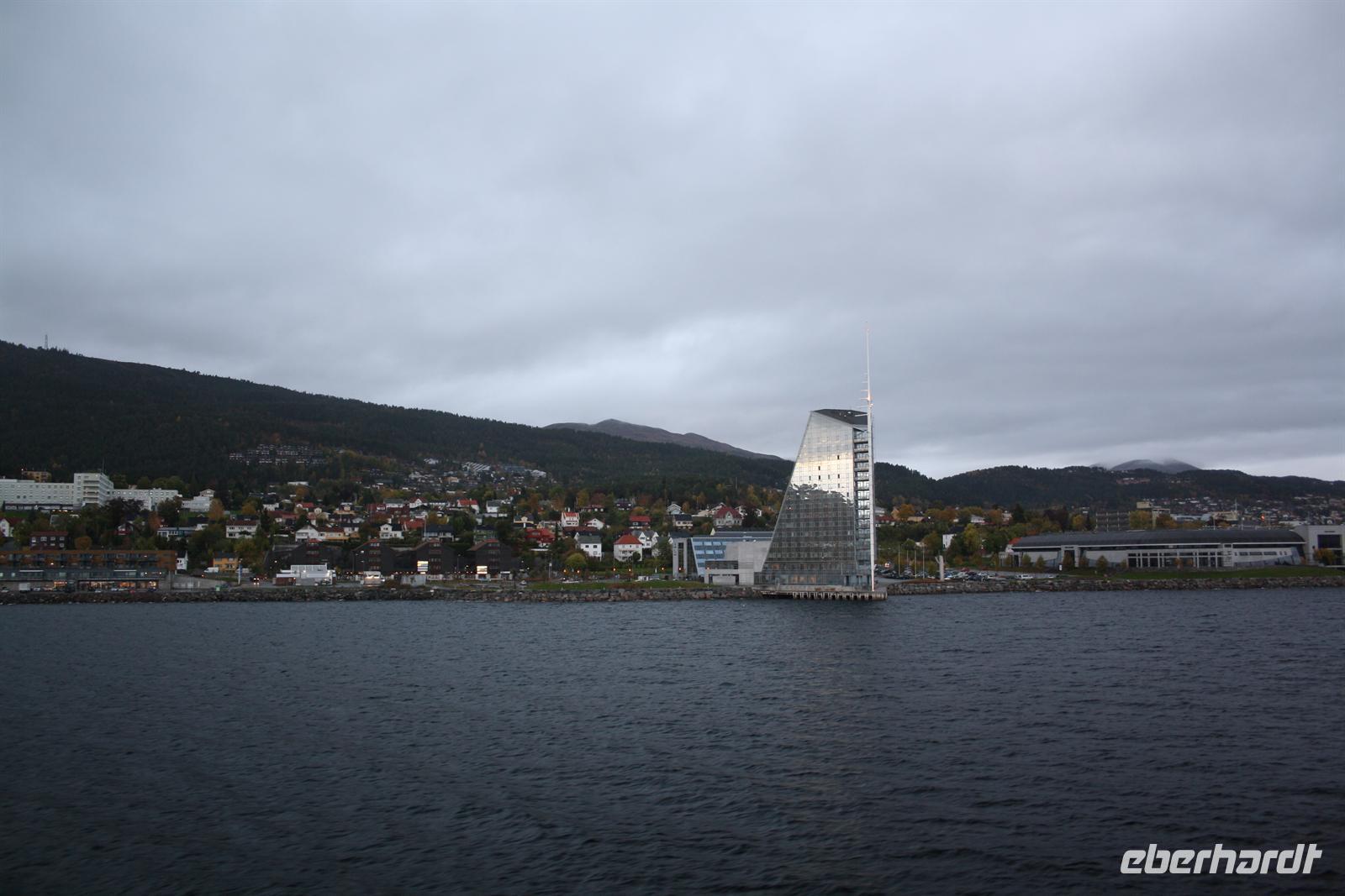 Zurück im Bus, fahren wir an der alten Festung und dem Hafen für Kreuzfahrtschiffe vorüber und stoppen am gegenüberliegenden Kai, von wo wir einen schönen Blick auf die bunten Holzhäuser des Hanseviertels haben sowie auf den Floyen. Weiter führt uns die Stadtrundfahrt am Aquarium vorbei zu einem weiteren Aussichtspunkt, von wo wir bereits die MS „Nordkapp“ entdecken können. Bevor wir aber einchecken, passieren wir zudem die Oper mit der Statue „Bjoernsens“, aus dessen Feder die norwegische Nationalhymne stammt.