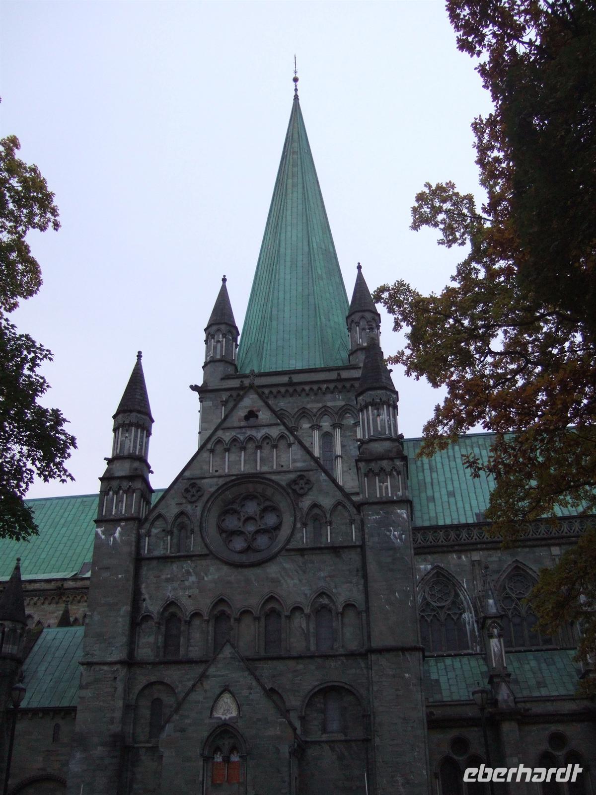 Heute regnet es nicht, dennoch ist der Himmel wolkenverhangen. Das tut unserer Vorfreude auf die drittgrößte und zweitälteste Stadt Norwegens überhaupt keinen Abbruch. Der Bus mit unserer Reiseleiterin Wenche startet pünktlich. Dreisprachig erzählt uns Wenche Wissenswertes über die Stadt an der Nidelva. Hier befinden sich die zweitgrößte Universität des Landes, interessante Museen und zahlreiche Forschungseinrichtungen. Wir starten mit einer kurzen Rundfahrt durch die Stadt, die an einem Aussichtspunkt endet. Von hier haben wir einen beeindruckenden Blick über das noch schlafende Trondheim. Pünktlich um 09:00 Uhr werden wir am größten Sakralbau Skandinaviens, dem Nidaros-Dom erwartet. Nach Sprachen aufgeteilt in drei Gruppen, erzählt uns die gebürtige Hamburgerin Nora in kurzweiliger Art viel Interessantes über das beeindruckende gotische Bauwerk mit 100 Metern Länge, 97 Metern Höhe sowie 50 Meter Breite. Dieses wurde Ende des 11. Jahrhunderts über dem Grab von Olav, dem Heiligen, einem norwegischen Schutzpatron, als einfache Steinkirche errichtet. Zwei Jahrhunderte später vollendete man fast die gotische Kathedrale.
