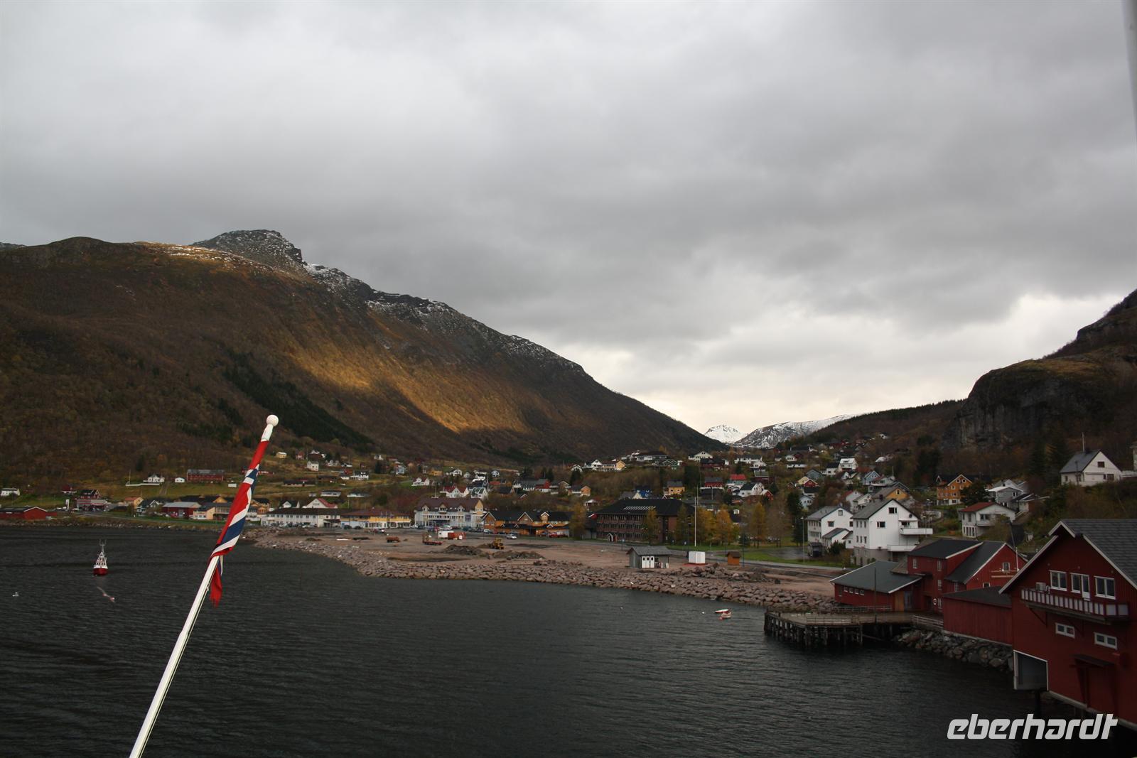 Da sich das Wetter von seiner besten Seite zeigt, entscheiden einige Gäste unserer Gruppe dem etwas steilen, dafür kurzen Sikk-Sakk-Veien zu folgen und eine grandiose Sicht vom Aussichtspunkt Salen zu genießen. Wir können uns kaum losreißen, aber wir müssen zum Schiff zurück, denn die Liegezeit beträgt insgesamt nur 1,5 Stunden.