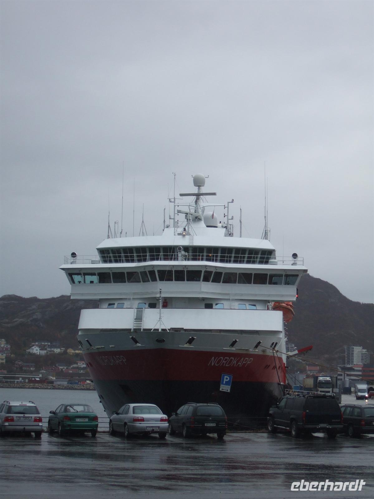 Am Mittwoch, den 13.10.2010, starten 4 Gäste und ich bereits 03:00 Uhr am Morgen ab Flughafen Dresden in Richtung Norden. Im Bus haben wir alle Entfaltungsmöglichkeiten, denn unsere Gruppe umfasst insgesamt 11 Gäste, die teilweise mit dem bequemen Haustür-Transfer-Service zum Einstiegsort gebracht werden. Nach Zustiegen am Flughafen Leipzig, in Dessau-Ost, in Michendorf-Nord sowie in Wolfslake-Ost starten wir offiziell unsere gemeinsame Tour nach Norwegen. Im Bus gebe ich bereits nützliche Tipps für unsere bevorstehende Reise und zeige eine DVD über eine Fahrt mit Hurtigruten zur Einstimmung. Nach einer kurzen Vorstellung der angebotenen Ausflüge an Bord von MS „Nordkapp“ legen wir eine Mittagspause ein, bevor uns Busfahrer Günther sicher bis zum Norwegenkai bringt, wo wir schon gegen 12:00 Uhr eintreffen.