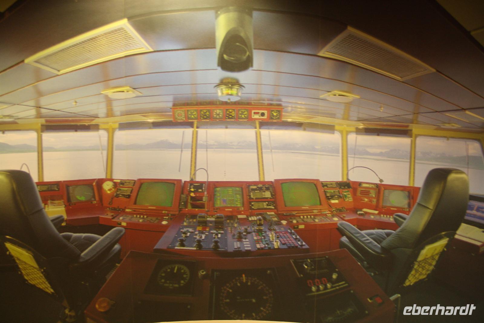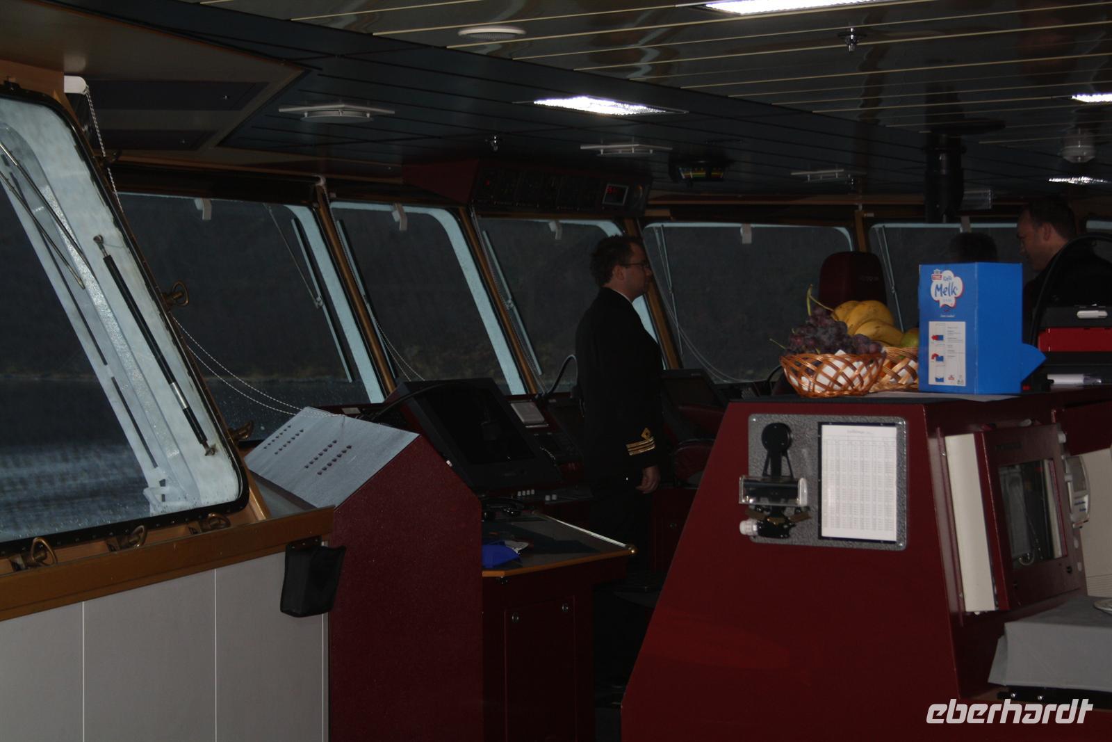 Die Stelle ist so eng und unübersichtlich, dass entgegenkommende Schiffe durch Ertönen des Typhons gewarnt werden. Nach einer weiteren offenen Seestrecke und dem schmackhaften Abendessen bietet sich uns im Hafen von Rorvik die Gelegenheit, das Schwesternschiff MS „Richard With“ zu besichtigen, welches neben uns liegt. Da ich bereits im Sommer, die „schönste Seereise der Welt“ mit diesem Schiff erleben durfte, übernahm ich die Führung an Bord. Ein Ehepaar unserer Gruppe freute sich besonders, dieses Schiff nochmals besuchen zu dürfen, da sie bereits vor Jahren damit unterwegs waren und sie diese Reise in sehr guter Erinnerung haben. Für alle Hurtigruten-Reisende stellt es kein Problem dar, die Schiffe der Flotte, mit einer Besucherkarte zu besichtigen. Diese erhält man direkt an der Gangway des zu besuchenden Schiffes. Im Tagesprogramm wird immer angemerkt, welche Hurtigruten-Schiffe am jeweiligen Tag passiert oder sogar im gleichen Hafen liegen werden. Mit vielen Eindrücken fallen wir an diesem Abend ins Bett und träumen bereits von den kommenden Tagen…