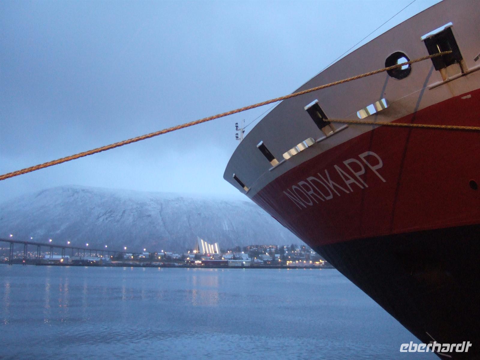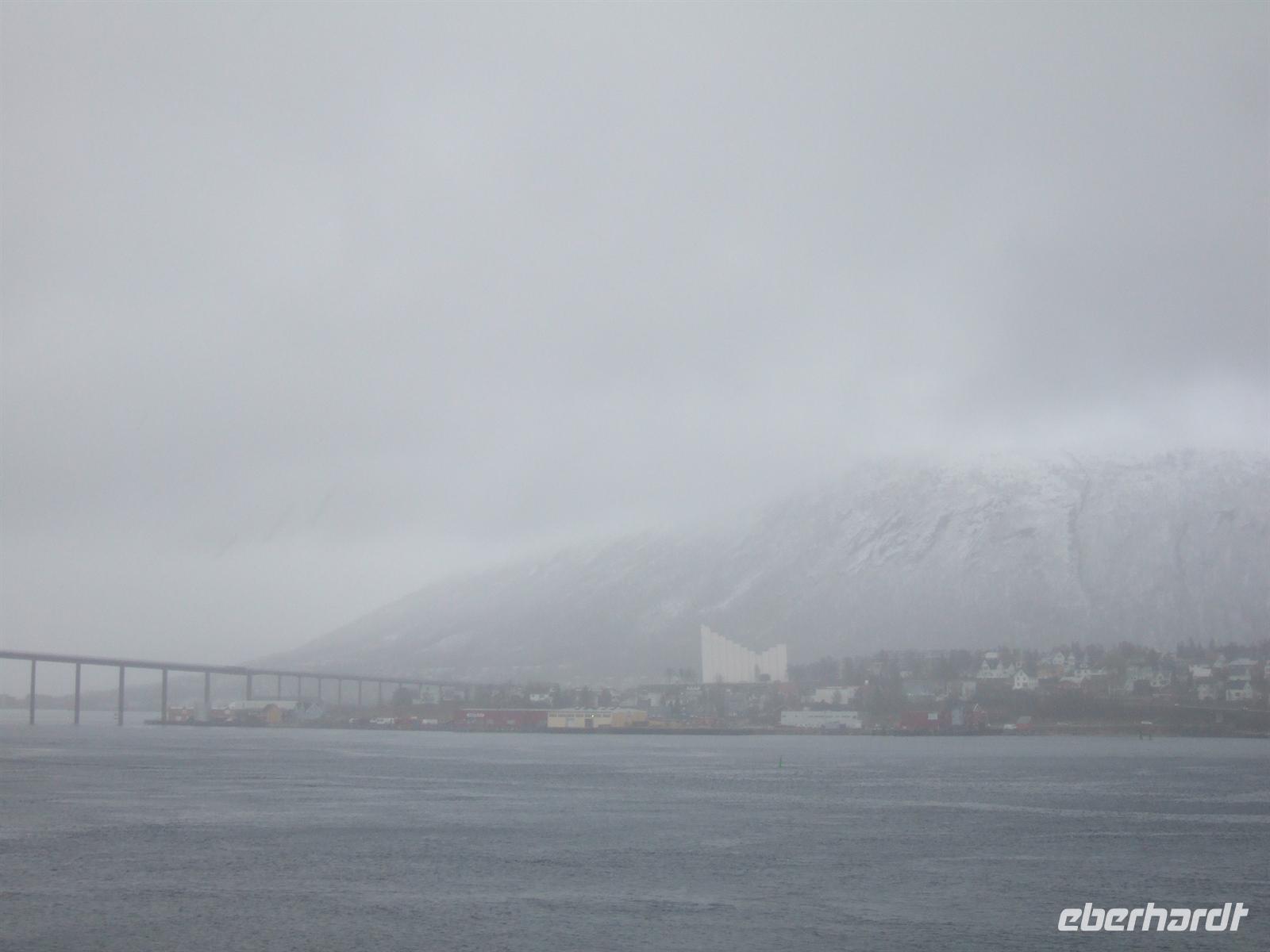 Nordnorwegens. Seit 1972 können hier Studenten an einer Universität studieren und an zahlreichen Einrichtungen forschen. Einige Gäste entscheiden sich für die Teilnahme am fakultativen Ausflug „Pforte zum Eismeer“, um bei einer Busrundfahrt die bekanntesten Sehenswürdigkeiten kennenzulernen. Ein Höhepunkt der Tour stellt die Besichtigung der 1965 entworfenen Eismeerkathedrale dar, die in ihrer Form Nordlicht und Polarnacht symbolisiert. Im weiteren Verlauf folgt der Besuch des Erlebniszentrums „Polaria“, welches über Kultur, Natur und Geschichte der Arktis informiert. Gegen 18:30 Uhr verlassen wir den Hafen und unterqueren die sehenswerte Troms-Brücke, bevor mit Skjervoy ein weiterer kleiner Fischerhafen am späten Abend auf dem Routenplan steht.