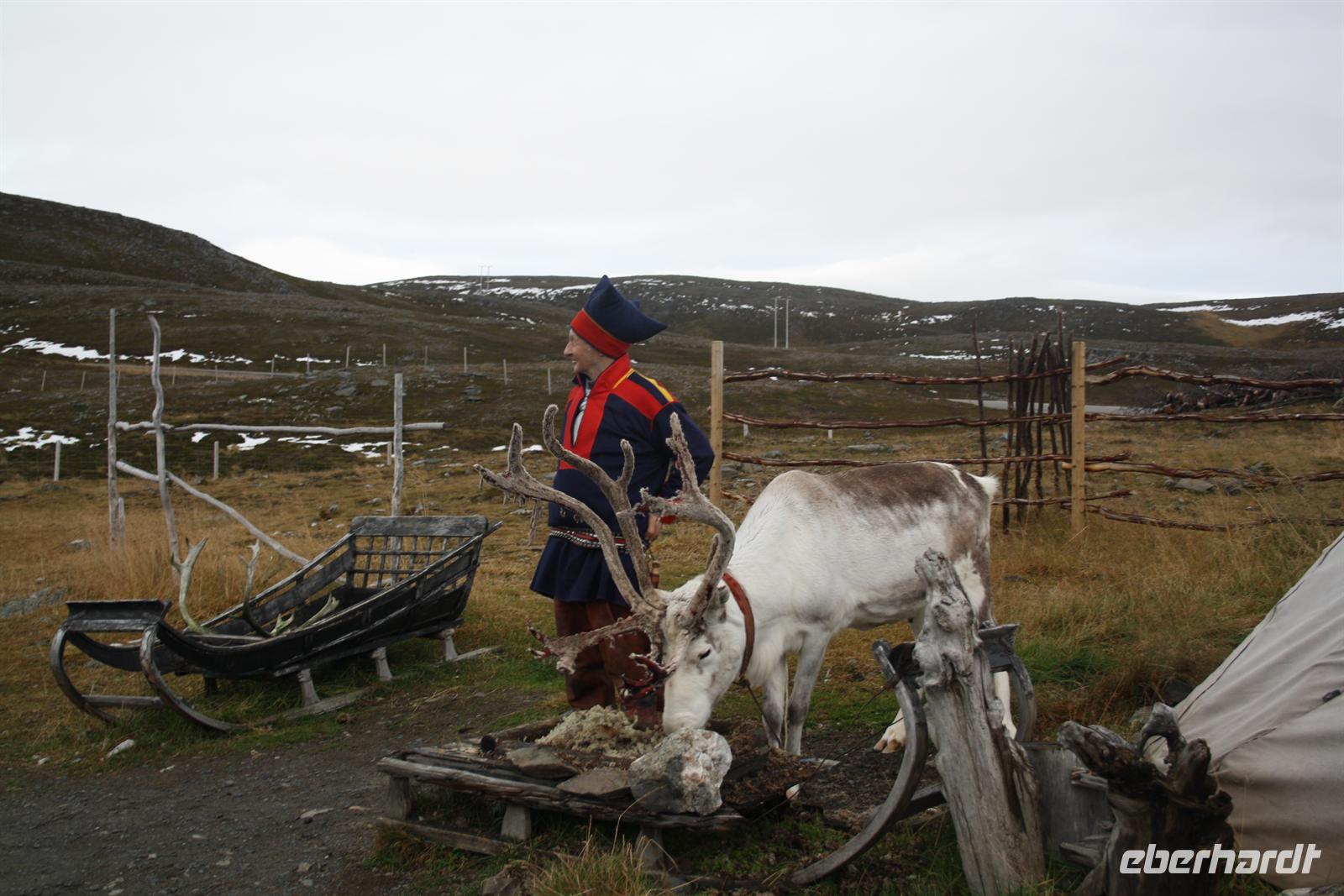 Die Fahrt durch die karge Landschaft der Magerinsel dauert ca. 45 Minuten mit einem Stopp bei Nils und Anna, einem Samenpärchen in traditioneller Kleidung. Die Straßen sind zum Teil sehr glatt, wir kommen aber dennoch gut am Nordkap-Plateau an, welches 307 Meter aus dem Meer herausragt. Der Globus ist sehr gut zu sehen und deshalb gehen die meisten zunächst dorthin, um ein Foto zu schießen.