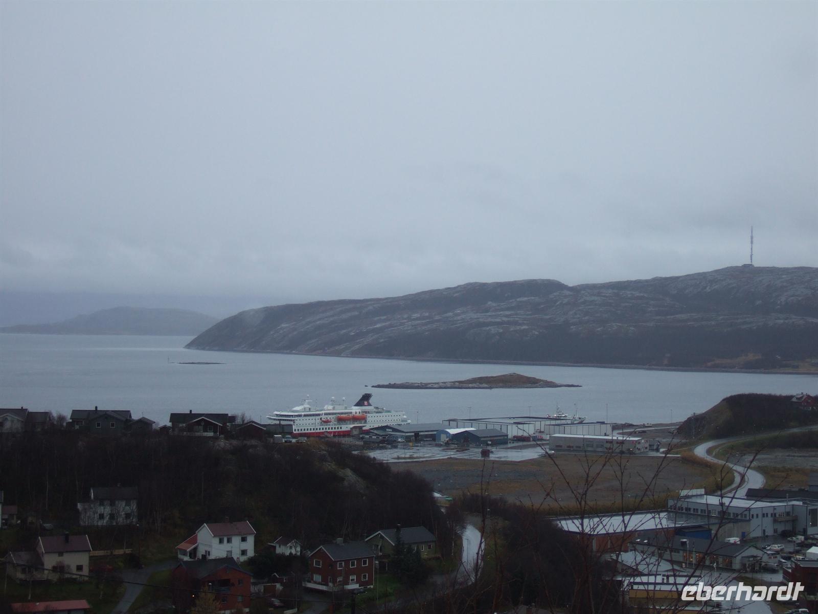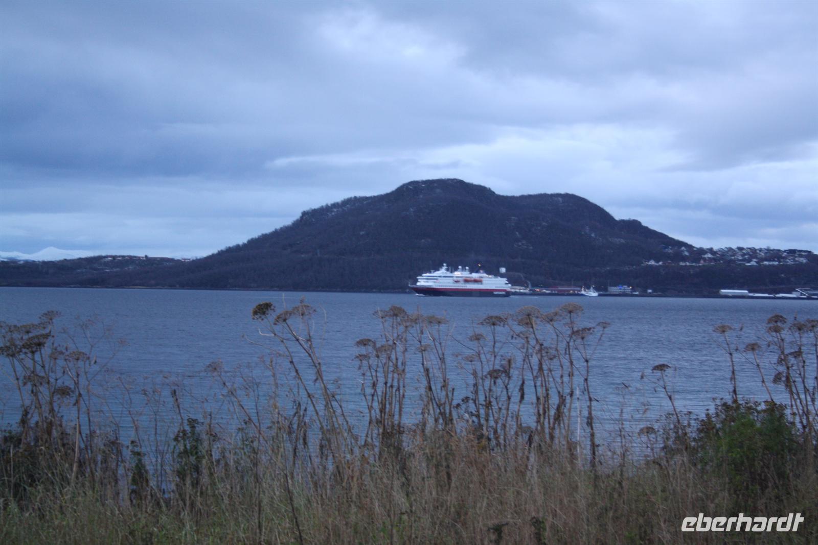 Weiter führt uns der Spaziergang auf einen Aussichtspunkt, von wo wir auch MS „Nordkapp“ entdecken.