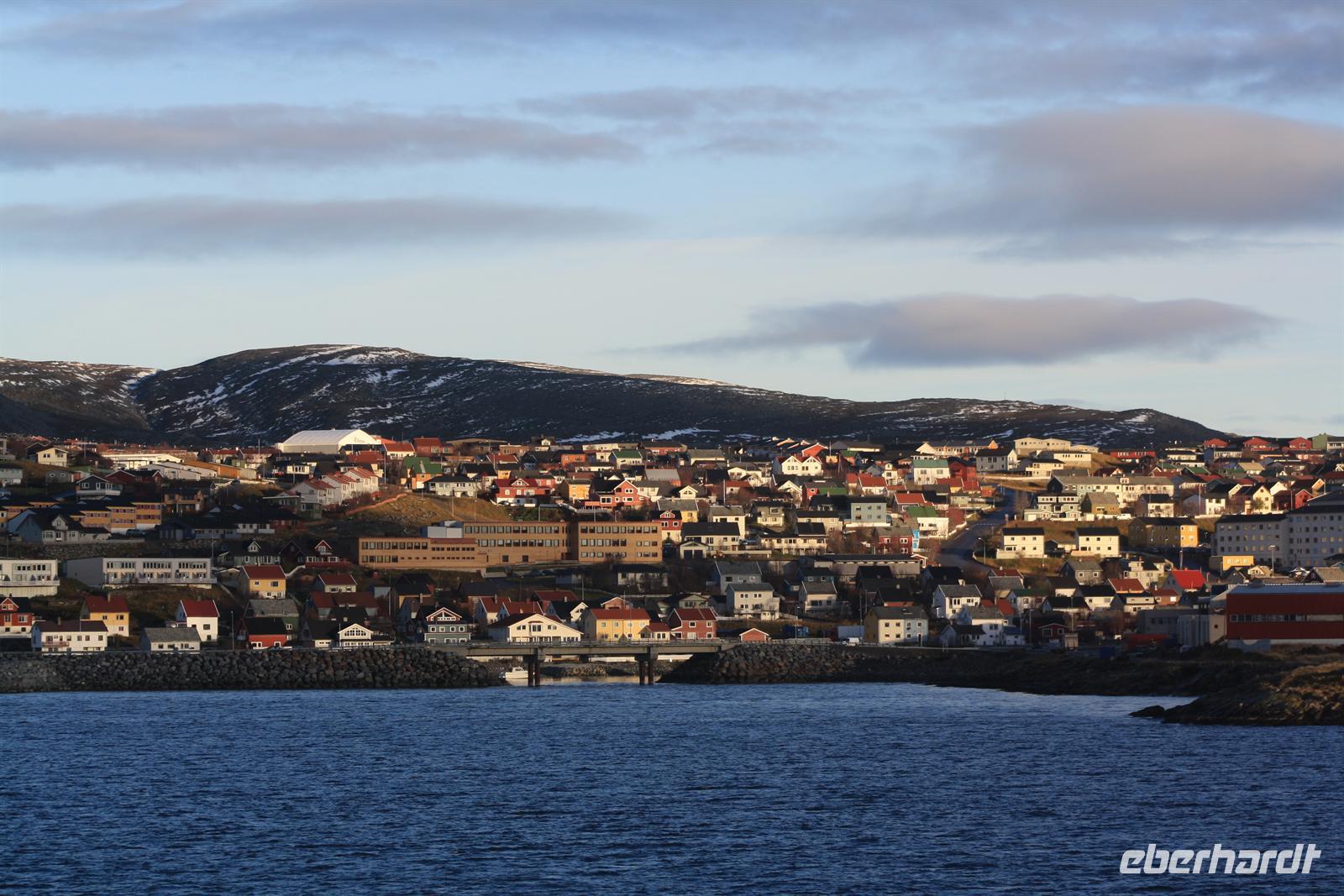 Da heute mit Kirkenes der Wendepunkt unserer Hurtigruten-Reise angelaufen wird, haben wir die Chance einige Häfen doppelt zu erkunden. Mitten in der Nacht und während des Abendessens steht die Gemeinde Batsfjord auf dem Fahrplan. Mit Vardo wird ganz früh am Morgen sowie am Nachmittag im östlichsten Hafen der Fahrt fest gemacht. Beim zweiten Anlauf in der 2.700 Einwohner zählenden ältesten Stadt der Finnmark, besteht die Möglichkeit, die Vardohus-Festung zu besichtigen (Zusatzkosten: 40 NOK). Die Hauptsehenswürdigkeit wurde 1738 fertig gestellt und ist in ihrer Form achteckig. Noch heute gib es in Vardo viele Fischerboote und Fischverarbeitungsbetriebe. Dem Polarforscher Willem Barents wird ganz in der Nähe des Hafens mit einer Statue gedacht.