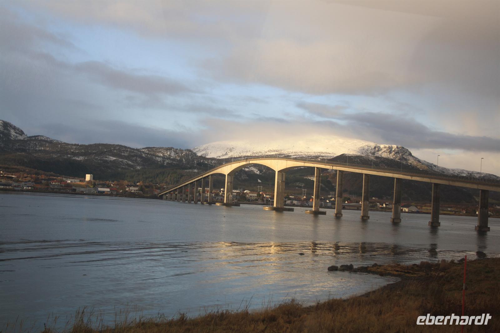 Als Hintergrund bietet sich die imposante Helgelandbrücke an, die im Osten der Stadt zu finden ist. Außerdem präsentiert sich uns die Bergkette „Die sieben Schwestern“ mit Höhen von 902 bis 1106 Metern.