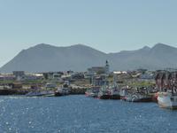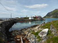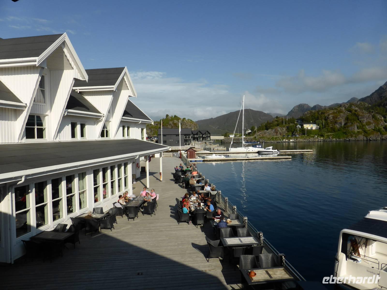 Mit Wanderstöcken und Lunchpaket begaben wir uns auf den Weg, um den Berg Storheia (504 m) zu besteigen. Er ist der „Hausberg" der Ortschaft Stokmarknes und durch seinen Sendemast schon von weitem zu erkennen. Das erste Teilstück war sehr anspruchsvoll und der Aufstieg unangenehm, da wir ständig von unzähligen Fliegen belästigt wurden, welche die günstige Gelegenheit der Windstille ausnutzten. Weiter oben wurde es dann windiger und etwas besser. Vom höchsten Punkt am Sendemast aus liefen wir dann hinunter zu einer Wanderhütte und wählten diese als passendes Quartier für unsere Mittagspause. Die Sonne schien warm, die Schafe waren mit ihren Glocken weithin zu hören und wenn wir die Augen schlossen, wähnten wir uns beinahe in den Alpen. Ein Vergleich, der sich bei den warmen Temperaturen förmlich aufdrängte. Gegen 14.15 Uhr kamen wir wieder an unserem Hotel in Stockmarknes an und verabredeten uns für 16.30 Uhr zur Abfahrt nach Nyksund. Der Ort ist früher einmal ein wichtiger Fischereihafen gewesen und wurde in den Siebzigern auf Regierungswunsch leer gezogen. Die Bewohner bekamen eine finanzielle Entschädigung und wurden in größeren Orten, wie Myre oder Sortland, angesiedelt. Nyksund verfiel, bis deutsche Touristen den Ort entdeckten und wieder zum Leben erweckten. In Nyksund wurden wir zum Abendessen erwartet. Unsere Gastgeber, Monja und Ringo aus Freiberg, leben zusammen mit ihren Kindern seit 13 Jahren in Nyksund und betreiben ein kleines, aber auch feines Restaurant mit einer exzellenten Küche. Nach dem Abendessen erzählte uns Ssemion, der hier ebenfalls eine neue Heimat gefunden hat, wie das Fischerdorf Nyksund entstand und welche Entwicklung es heute nimmt. Anschließend musste alles schnell gehen, da ab 20.30 Uhr die einzige Zufahrtsstraße zum Ort aufgrund von Bauarbeiten gesperrt werden sollte. Wir schafften es gerade noch rechtzeitig und waren pünktlich zum WM-Spiel der deutschen Nationalelf zurück in unserem Hotel!
