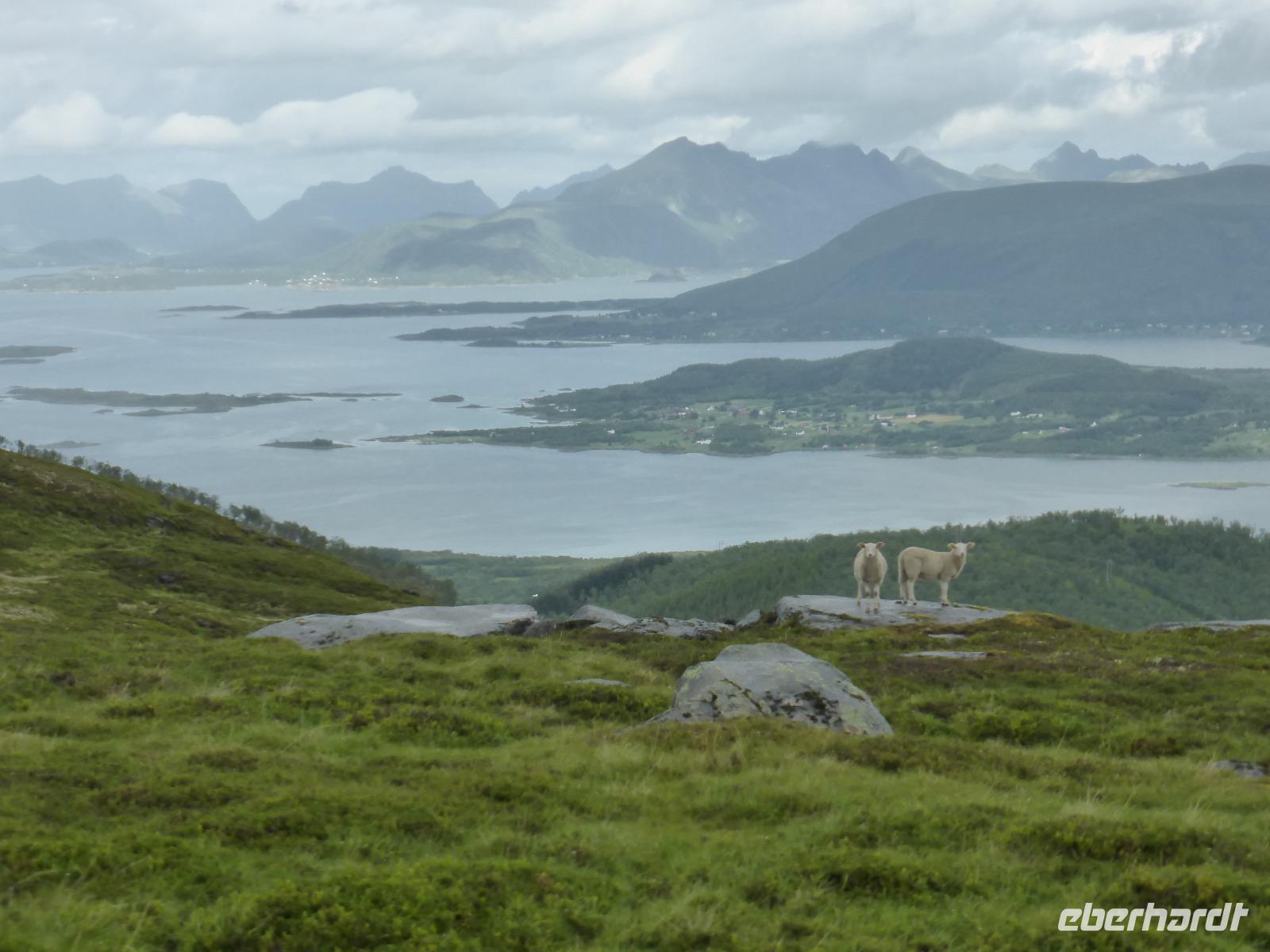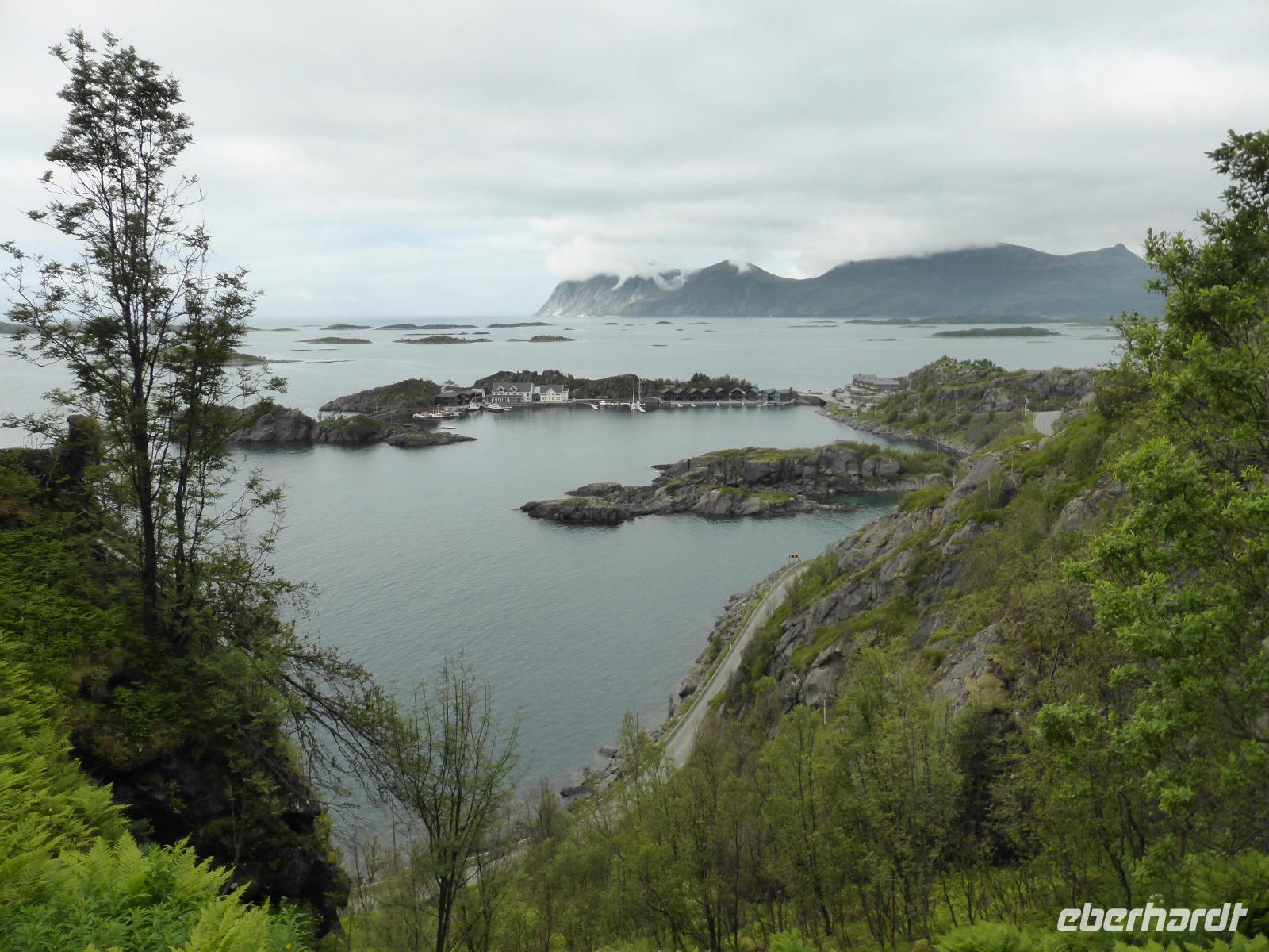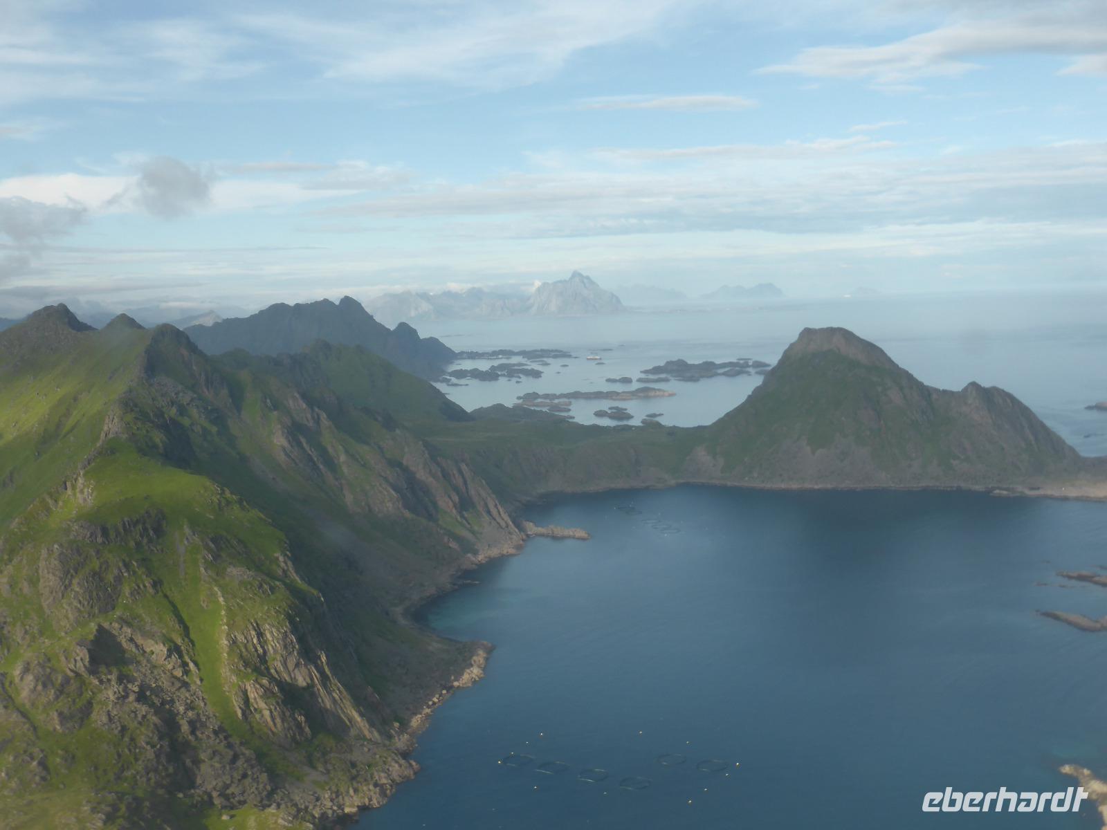 auf den Hausberg von Hamn i Senja. Der Aufstieg lohnte sich, denn der Blick auf den Insel-Archipel, auf unsere Hotelanlage und auf das offene Meer war beeindruckend!