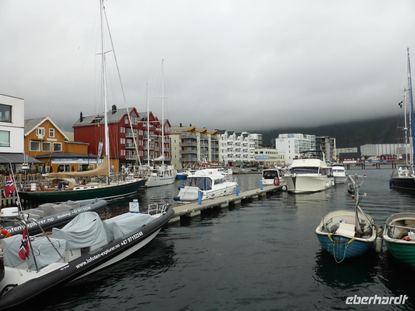 Die Reise begann mit der Abholung von zu Hause und dem Transfer zum Flughafen Berlin-Tegel, wo wir pünktlich zur vereinbarten Zeit eintrafen. Von Berlin aus flogen wir mit der Airline SAS nach Oslo und von da zum Flughafen Bodoe. Dort kamen wir gegen 17.30 Uhr an und warteten auf unseren Weiterflug nach Leknes mit Wideroe-Airlines. Das Klopfen der Stewardess an die Fensterscheibe des Warteraums war das Zeichen zum Einsteigen in den Flieger. Die Maschine war bis zum letzten Platz ausgebucht, so dass zwei Personen unserer Reisegruppe mit dem Rücken zur Flugrichtung saßen. Beim Start und bei der Landung war dies eine völlig neue Erfahrung. Nach dem Empfang am Flughafen und dem Verladen der Koffer ging es ins Hotel und nach dem Abendessen trafen wir uns zu einem gemeinsamen Spaziergang durch Leknes.