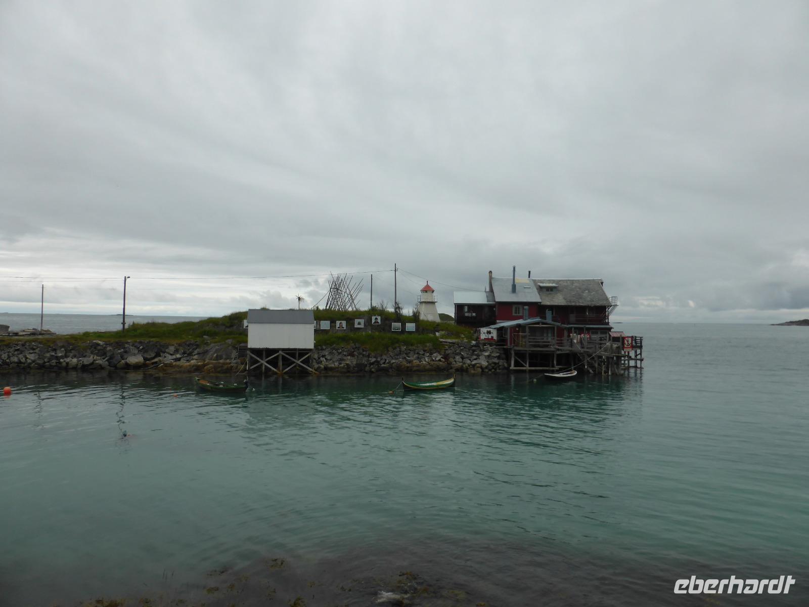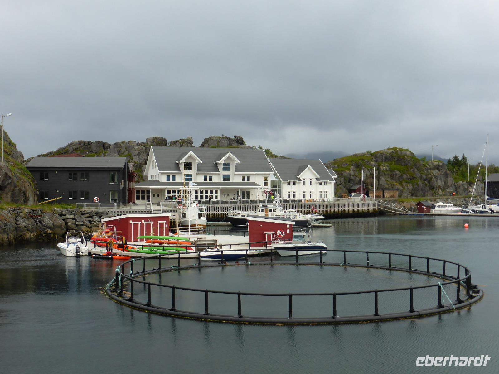 Wir gingen aber nicht hinein, sondern fotografierten von außen und verbrachten die Zeit im urigen Senja-Troll-Cafè. Anschließend ging es zu unserer Hotelanlage „Hamn i Senja", die aus einem idyllischen Hafen, dem nostalgischen Haupthaus und mehreren modernen Wohnquartieren besteht. Eine traumhafte Lage in einer Bucht und mitten in der Natur!
