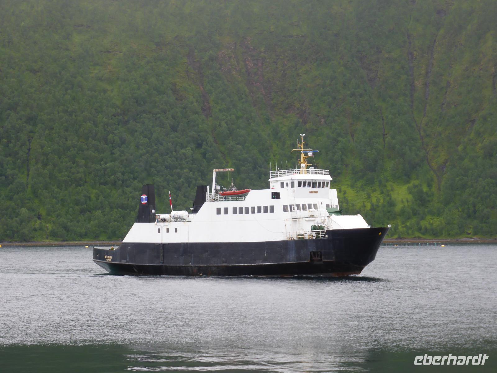 Nach dem Frühstück verließen wir unsere Hotelanlage in Hamn i Senja und fuhren weiter entlang der Küste zum Fähranleger nach Botnhamn. Mit der Fähre ging es dann über den Malangenfjord nach Brensholmen auf die Insel Kvaloy. Obwohl uns die See auf den ersten Blick recht ruhig erschien, schaukelte die Fähre dann doch sehr heftig.