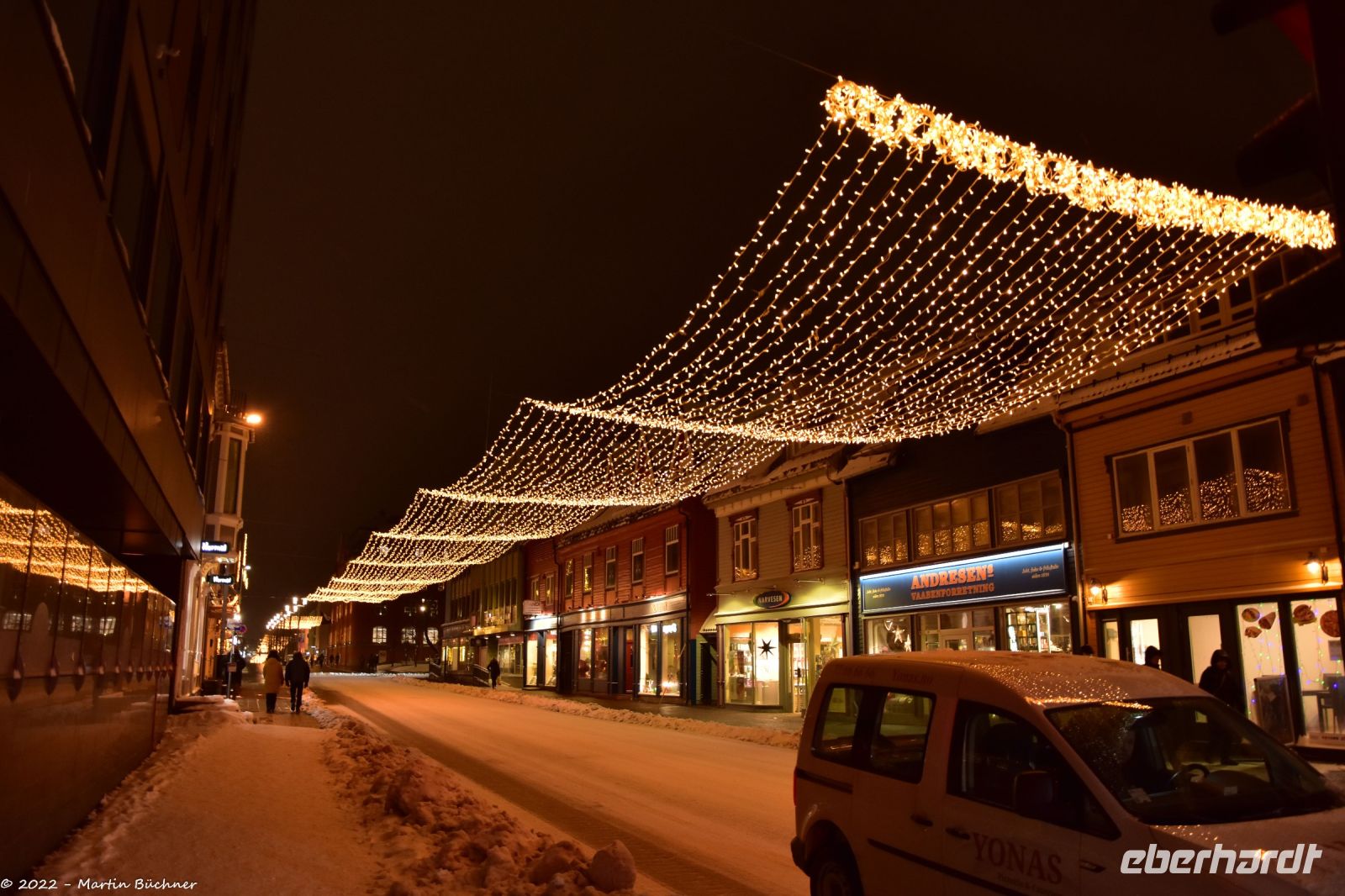 Mit einem Nonstop-Flug (Direktflug) erreichen wir Tromsø, mitten in der Arktis, etwa 450 km nördlich des Polarkreises in der Provinz (fylke) „Troms og Finnmark“ gelegen. Mit ca. 70.000 Einwohnern ist sie mit Abstand die größte Stadt im Norden Skandinaviens.