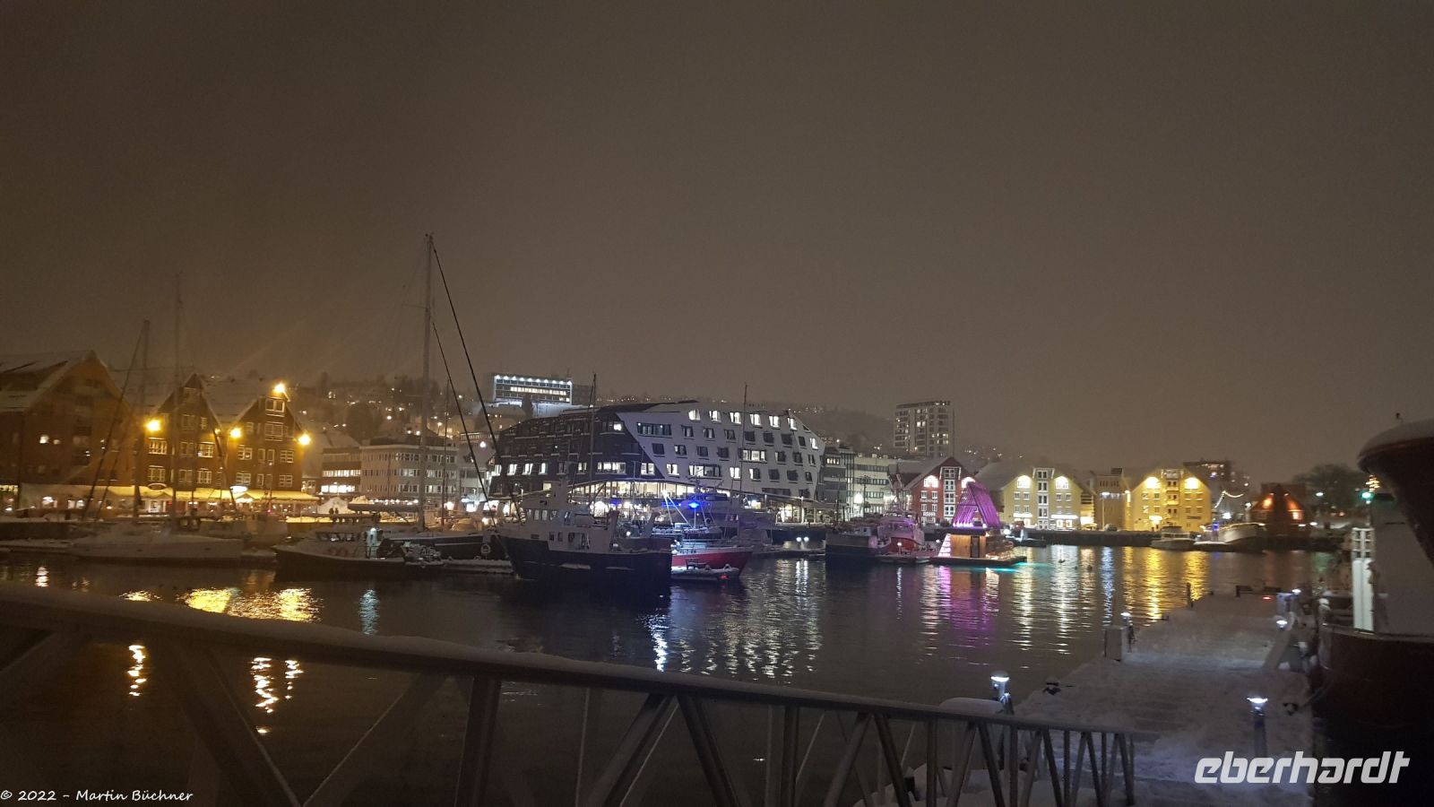 Nach dem Abendessen bleibt Zeit für einen Stadtspaziergang und/oder die Auffahrt mit dem Fjellheisen – mit atemberaubenden Blick über die Stadt und/oder einem Besuch der berühmten Ølhalle – der ältesten Kneipe der Stadt, legendärer Treff für Eisbären- und Robbenjäger sowie Polarforschern.