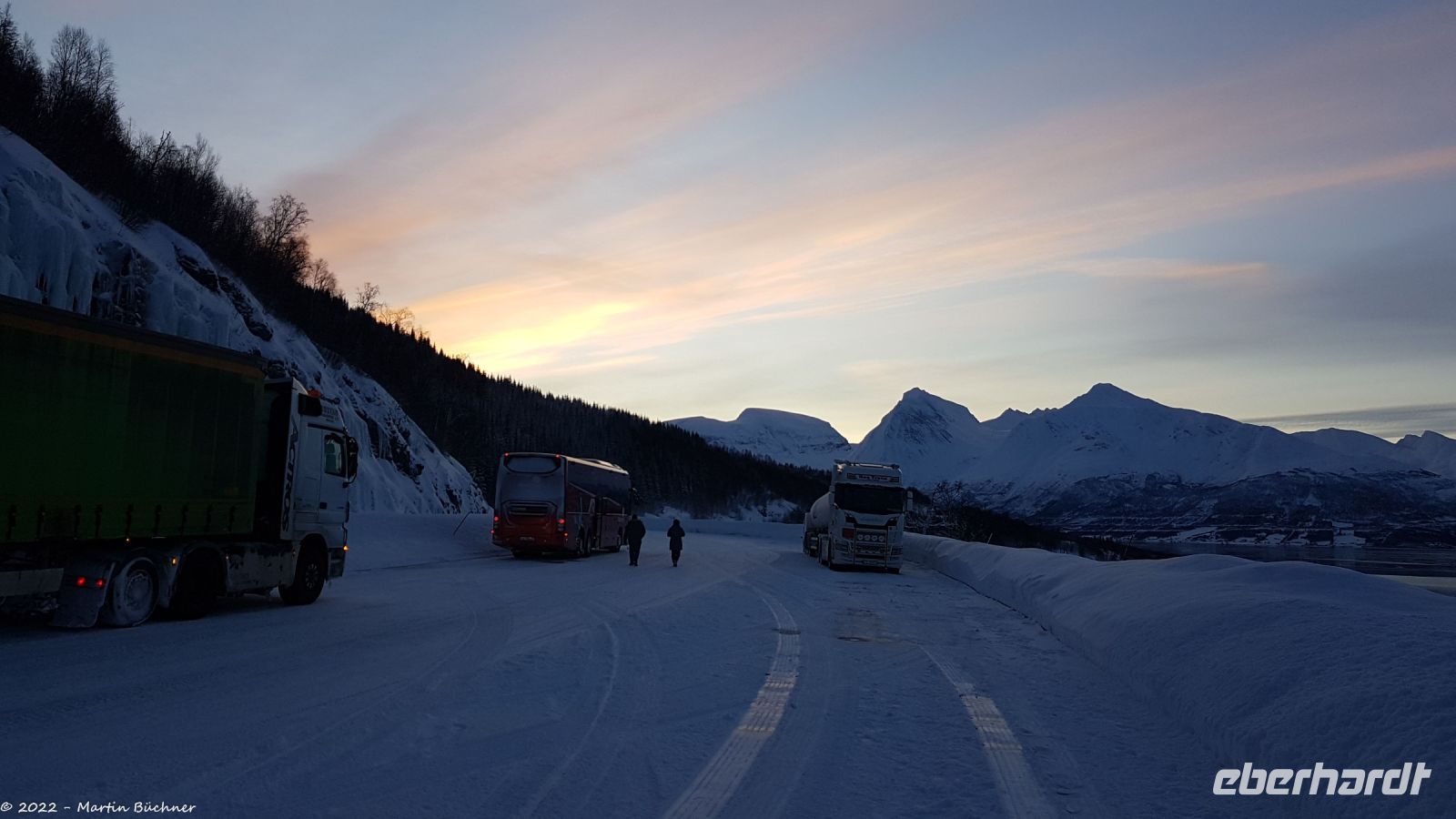 An dieser Stelle sei auch auf die in Skandinavien üblichen Spikes-Reifen (norwegisch Piggdekk) hingewiesen, die für ein erhebliches Maß an Sicherheit auf den winterlichen Straßen sorgen. Unser moderner Reisebus ist selbstverständlich damit ausgerüstet. Geführt wird unser Bus durch einen sehr erfahren norwegischen Chauffeur.