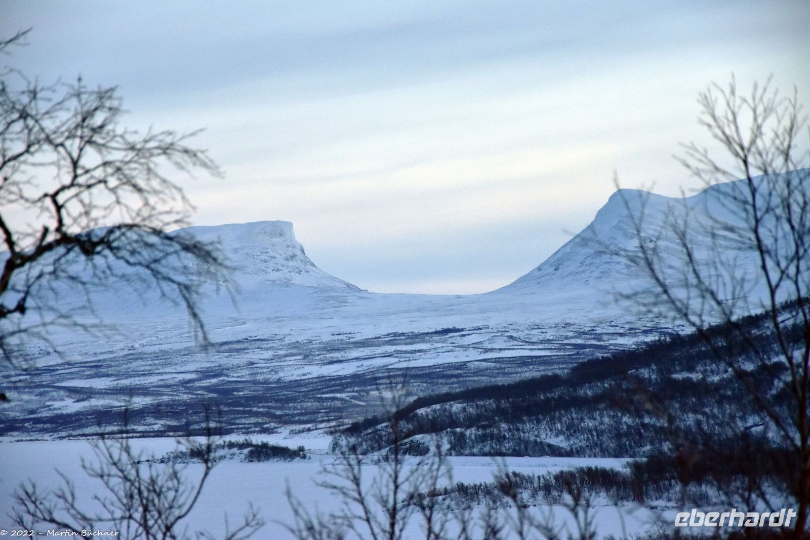 Optisch ebenso imposant die Bergformation „Lapporten“, die Berge Tjuonatjåkka (1.554 m ö.h.) und Nissuntjårro (1.738 m ö.h.) werden durch ein u-förmiges Gletscher-Trogtal voneinander getrennt.
