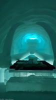 Errichtet wird es alljährlich neu aus dem Eis des Torneälv bei Jukkasjärvi (ca. 30 km östlich von Kiruna), der hier im Winter einen Meter dick zufriert. Durch seine perfekte Fließgeschwindigkeit, langsam genug damit sich störende Sedimente gut absetzen können, schnell genug für sauerstoffreiches klares Wasser, dass mit seinen schönen Blasen so glasklar gefriert. Man hat hier so viel Eis, dass man sogar fertig Module für Eisbars in der ganzen Welt exportiert.