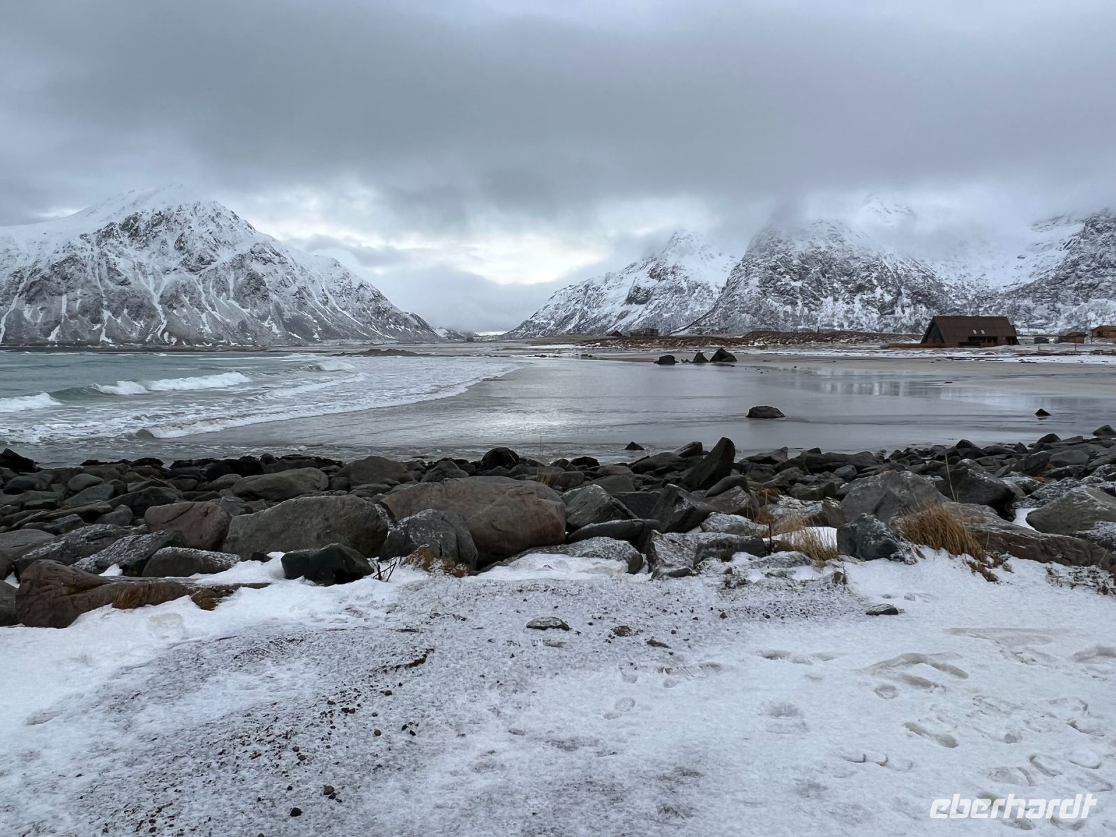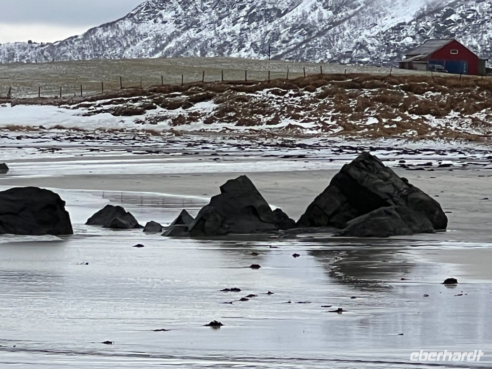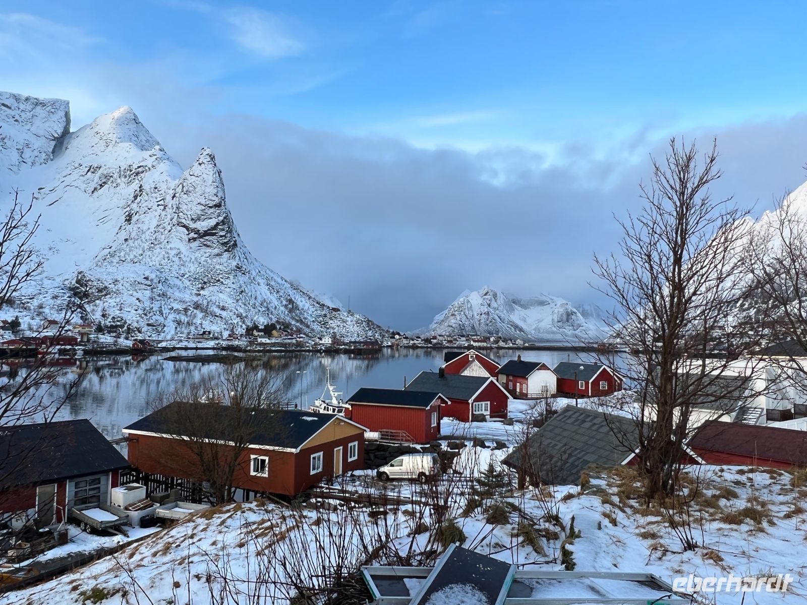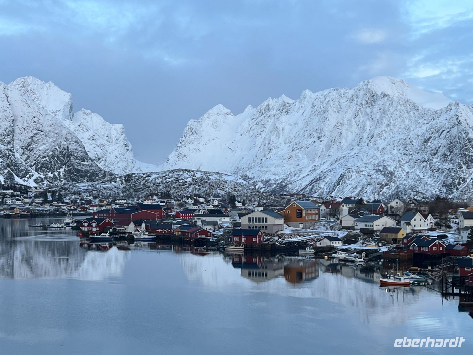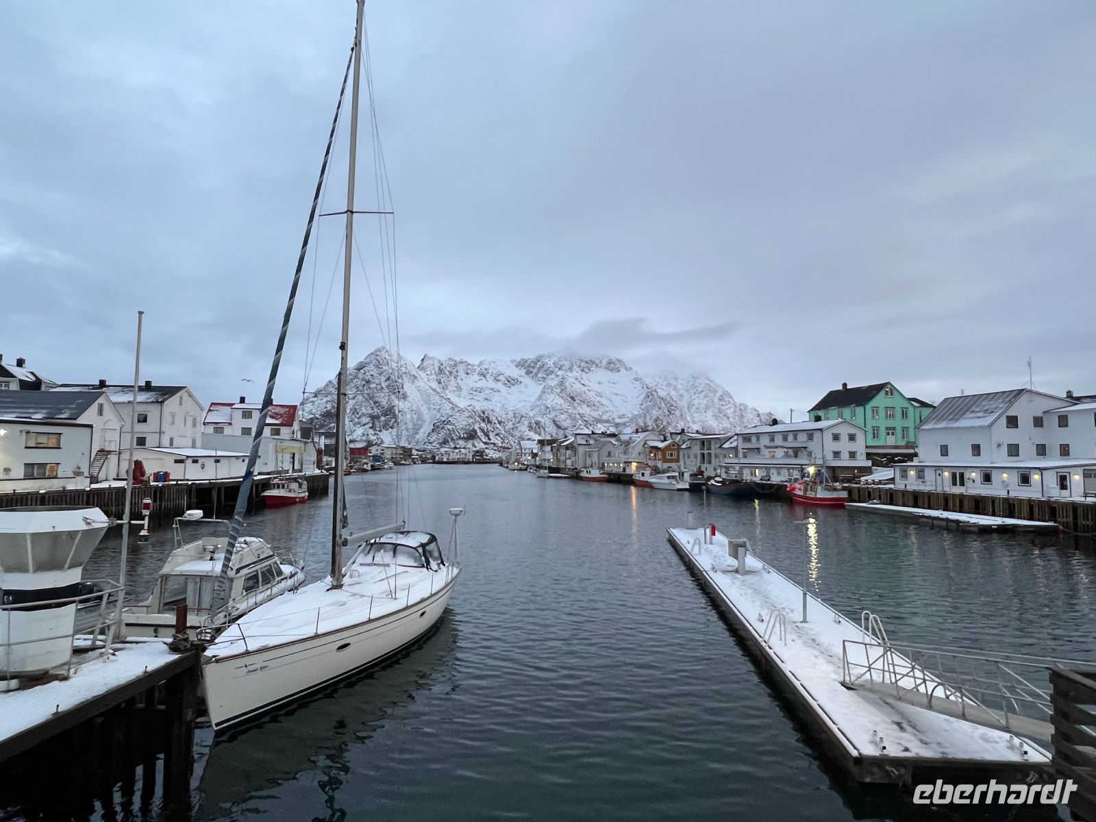 Nach dem Frühstück ging entlang der E 10 vorbei an der Vagankirche und dem Oskar Skaret (ein Fels auf den alle Könige Norwegens seit 1873 ihre Namenszüge in Gold verewigt haben) bis zum Abzweig Straße 816, der uns zum hübschen Fischerdorf Henningsvaer führte. Umrahmt von Wasser bildeten die bunten Häuser ein super Ambiente für den Rundgang und viele wollten natürlich den Fußballplatz erleben, der von der FIFA als der schönste der Welt beschrieben wird. Am Ende wird allen klar warum dieser Ort auch „Venedig des Norden“ genannt wird. Wieder zurück auf der E10 setzten wir die Fahrt in Richtung Reine. Die Zeit erlaubte es noch weiter 10 Kilometer zu fahren und dann war Schluss mit der Straße – nur noch der „Wasserweg“ war möglich. Nicht umsonst wird der Ort einfach Å genannt. Die gleiche Bezeichnung wie der letzte Buchstabe im norwegischen Alphabet. Auf dem Rückweg noch Freizeit in Reine einem Fischerdorf umrahmt von herrlichen Bergen. Nur trittsicher musste man sein, denn alle Straßen waren mit Eis überzogen. Mittagspause bei Sonjas Fischlokal mit den besten Burger der Lofoten (Kapitän Hansen schwört darauf). Gestärkt ging es zum Wikingermuseum in Borg. Ein Schneesturm war unser Begleiter bei der Besichtigung. Borg war einst einer der Häuptlingssitze der Wikinger und mit 100 Höfen und 1800 Einwohnern ein bedeutender Ort. Durch Funde konnte dies nachgewiesen werden und so konnte auch das traditionelle Langhaus nachgebaut werden. Es diente mehreren Familien als Domizil. Bei einer Führung wurden wir in die Zeit der Wikinger zurückversetzt und nach individuellen Exkursionen setzten wir den Heimweg nach Svolvær an. Über die E 10 ging es dann zurück zum Hotel. Auch heute hatte das Wetter kein Einsehen mit uns für die Beobachtung der Polarlichter – Schneesturm macht dies trotz Aktivitäten unmöglich es mit den Augen zu erblicken.