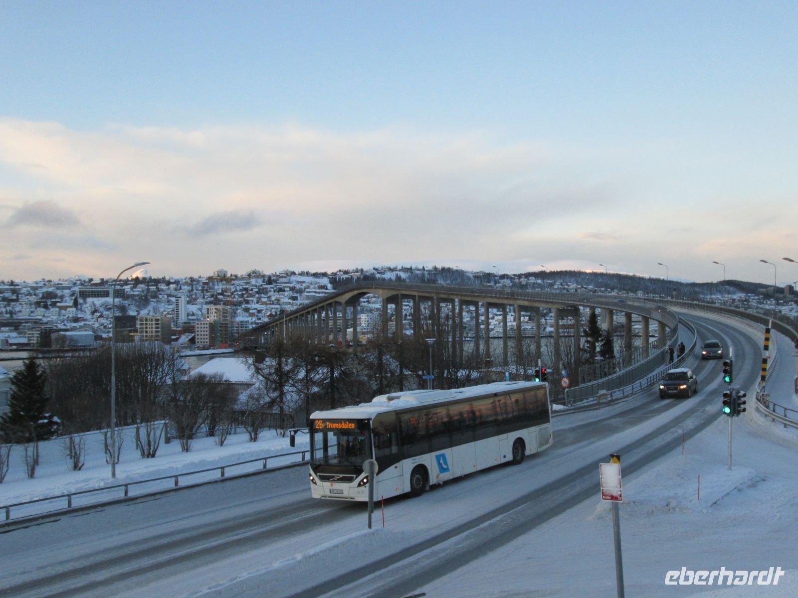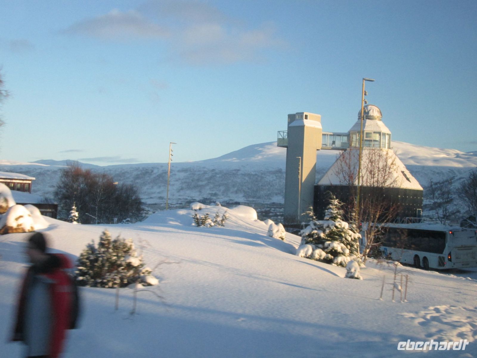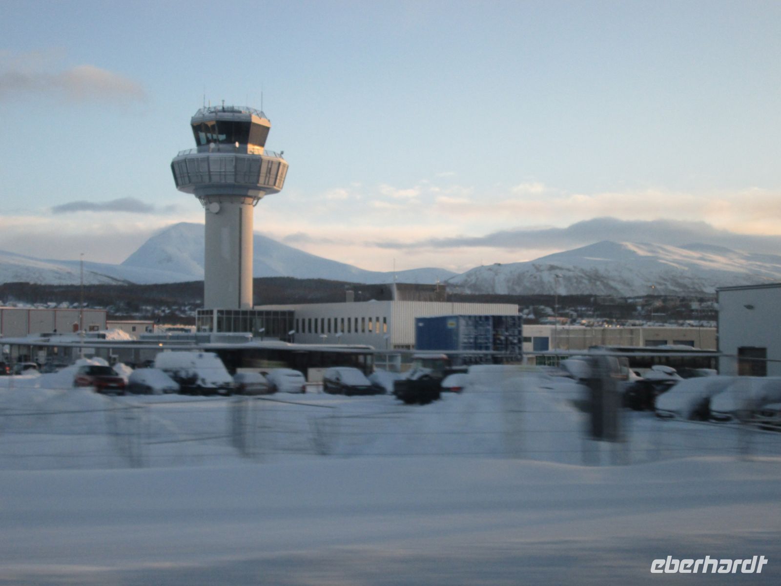 Trotz des Trubels bei Check in und Sicherheitskontrolle startet unser Eberhardt-Vollcharter mit der tschechischen Airline Smartwings fast pünktlich in Richtung der nördlichsten Stadt Norwegens. Knapp drei Stunden später können wir unseren Augen kaum trauen: aus den Flugzeugfenstern haben wir eine unglaubliche Sicht auf ein traumhaftes Winterwunderland bei herrlichem Sonnenschein - wir können die Landung kaum abwarten.