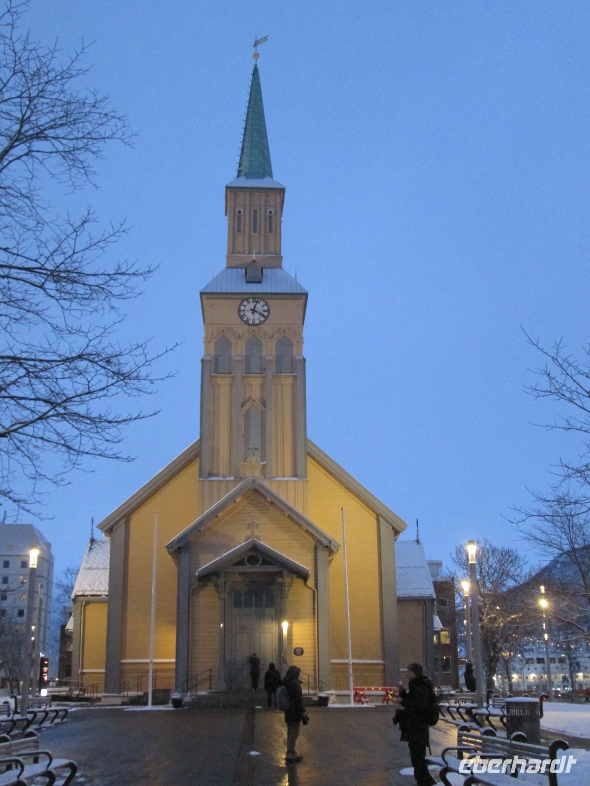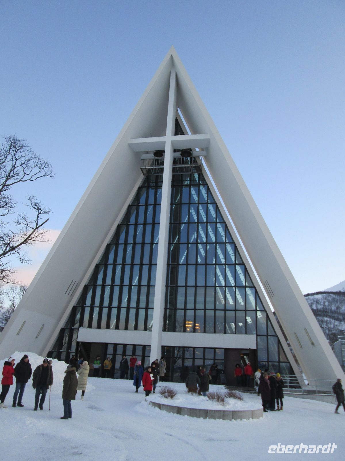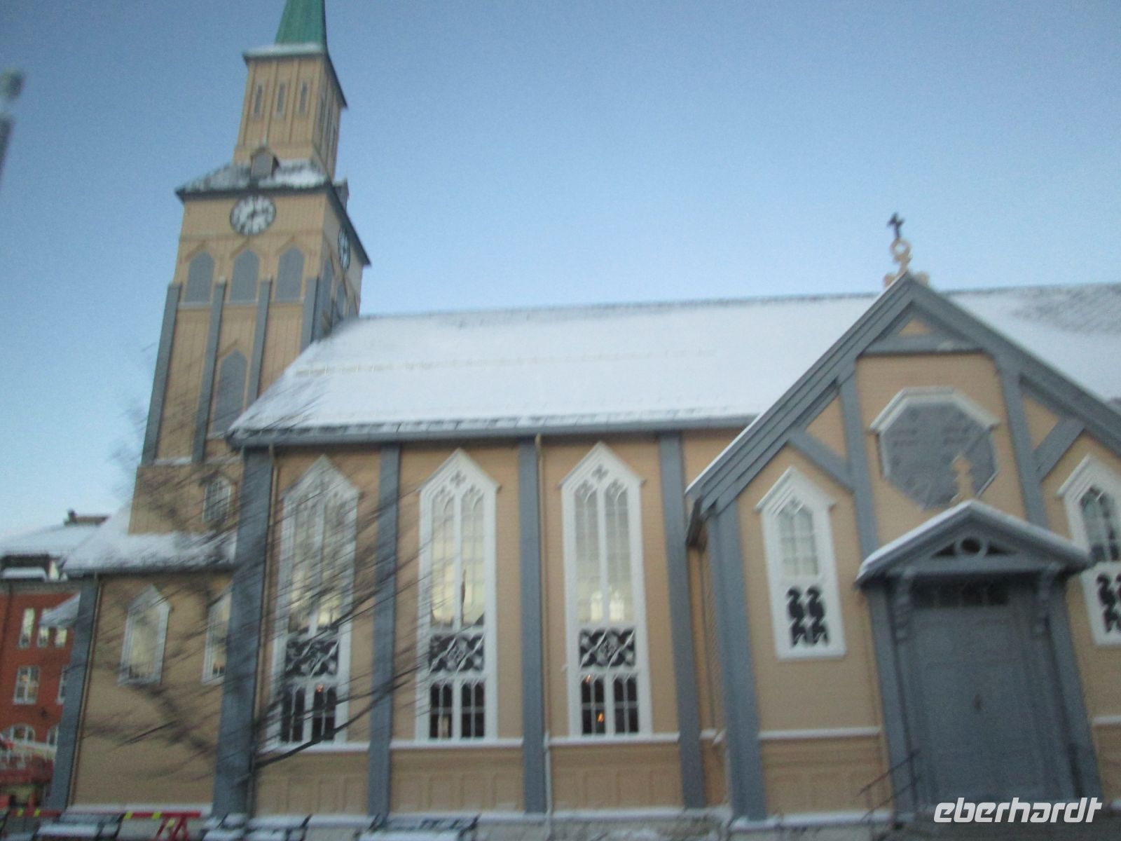 In Tromsø befindet sich eben der nördlichsten Brauerei der Welt auch die nördlichste Kathedrale. Diese ist eine der größten Holzkirchen Norwegens und befindet sich mitten im Stadtzentrum. Unser nächstes Ziel nennt sich zwar Kathedrale, genauer Eismeerkathedrale, ist allerdings kein Bischofssitz. Die Kirche wurde 1965 auf der Festlandseite der Stadt erbaut und ist aufgrund ihrer imposanten Architektur eine der Hauptsehenswürdigkeiten der Stadt.