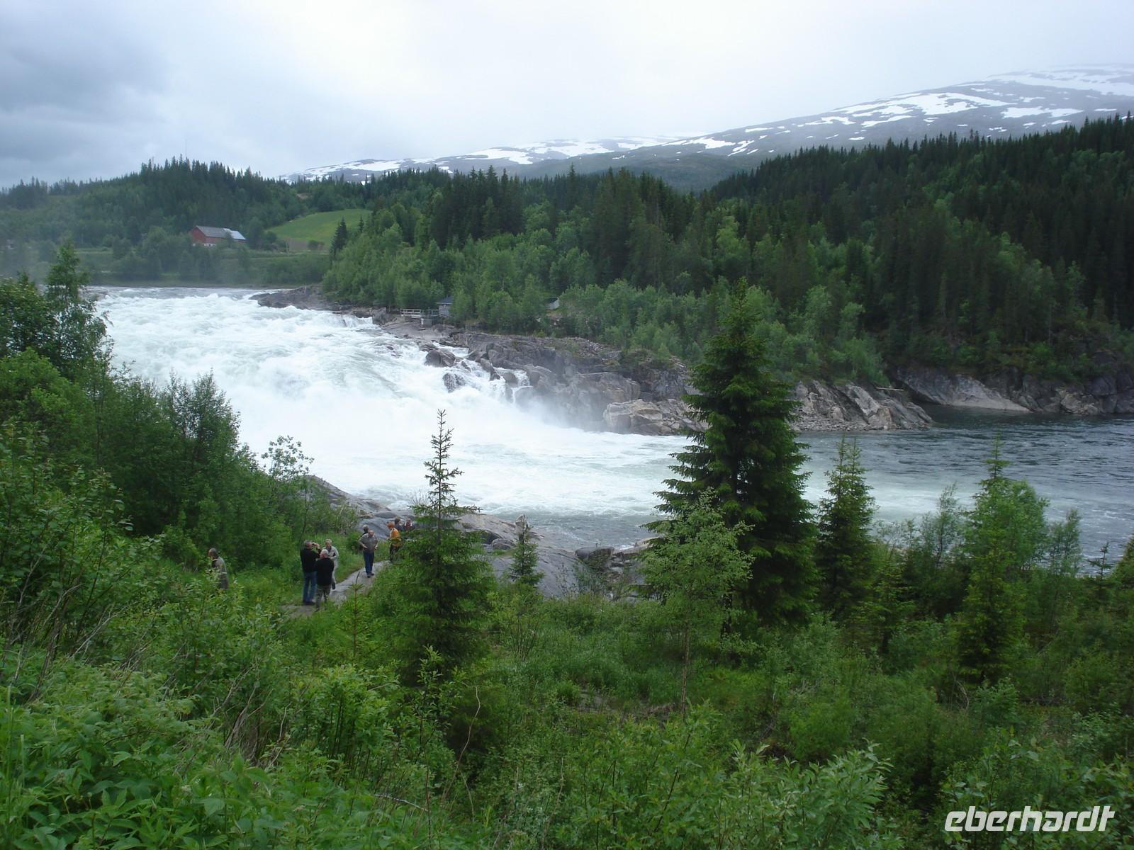 Eine lange Reise nach Trondheim lag vor uns. Am Laksfors hofften wir darauf, Lachse springen zu sehen. Doch leider blieb uns dies verwehrt. Durch die wunderschöne Landschaft von den Bezirken Nordland und Tröndelag führte uns unsere Reise nach Stiklestad, einer der bekanntesten Sehenswürdigkeiten des Landes. In der Schlacht von Stiklestad starb im Jahre 1030 Olav der Heilige, der Nationalheilige von Norwegen. Die Kirche von Stiklestad ist heute eines der wichtigsten Nationaldenkmäler des Landes. Angekommen in Trondheim spazierten wir nach dem Abendessen durch die alte Hauptstadt Norwegens und hatten das Glück den Dom von innen besichtigen zu können. Außerdem sahen wir die Altstadt am Nidaelv, den Marktplatz sowie das ehemalige bischöfliche Palais, den ältesten profanen Bau des Landes.