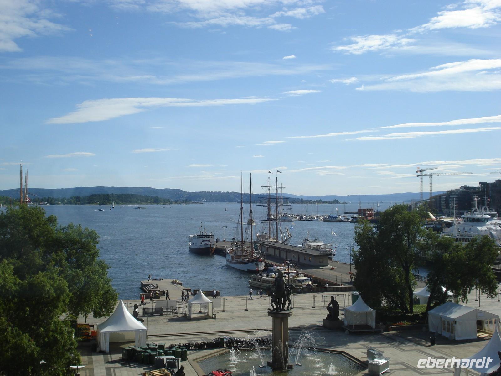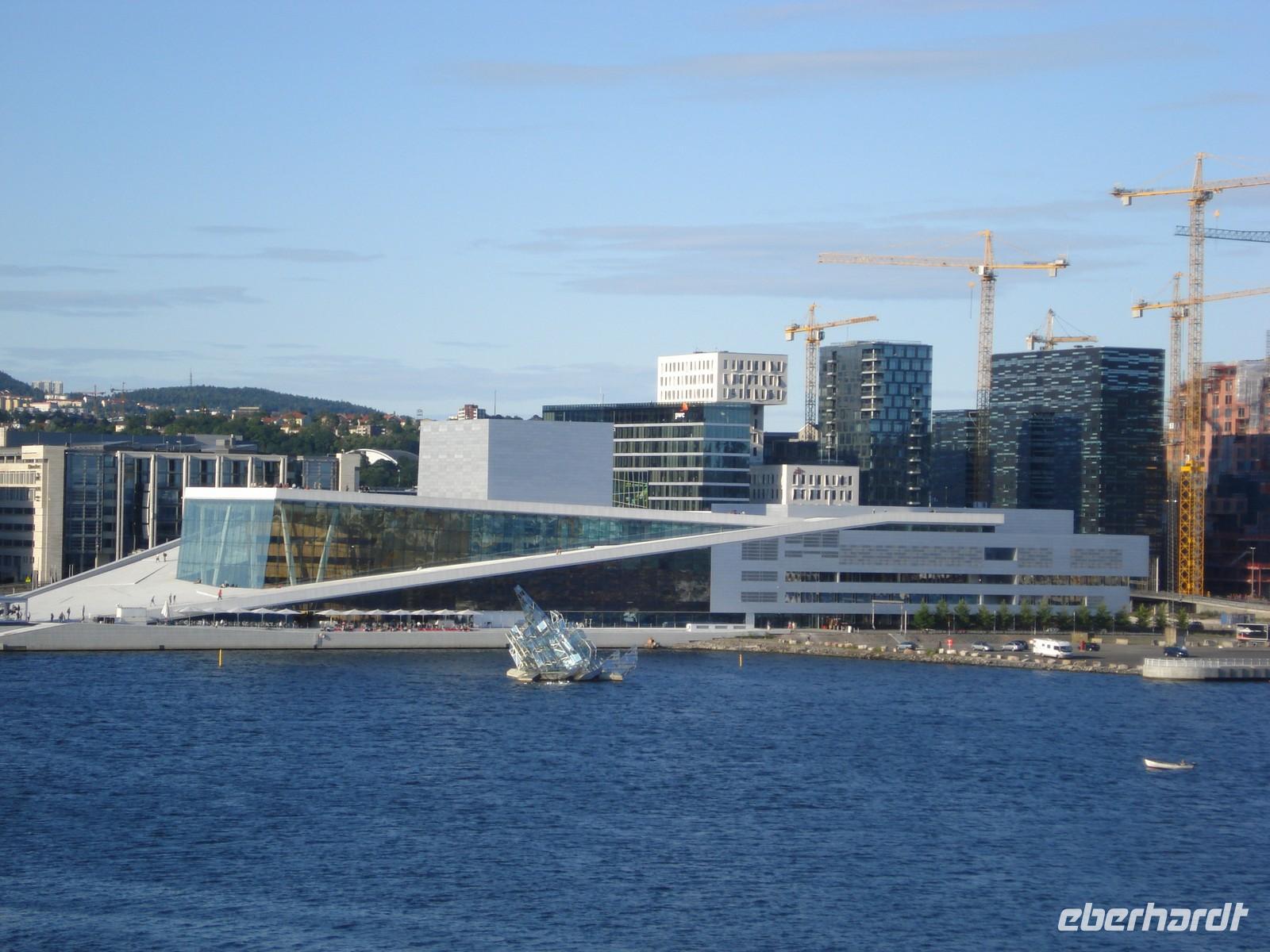 Die Weiterreise führte uns über das Dovrefjell Richtung Dombas. Diese baumlose Hochebene ist bekannt für die Moschusochsen, die von Grönland wieder eingeführt wurden. Von diesen scheuen Tieren war auch heute keiner in Sicht. Ein Besuch einer Stabkirche darf natürlich bei einer Norwegenreise nicht fehlen. Wir besuchten die Ringebu Kirche im Gudbrandstal. Diese wurde Anfang des 13. Jahrhunderts gebaut und zeigt sehr anschaulich die Stabbauweise der damaligen Zeit. Weiterhin legten wir einen kurzen Zwischenstopp an der Schanze in der Olympiastadt Lillehammer ein. Entlang des größten norwegischen Sees Mjösa erreichten wir Oslo. Bis zum Ablegen unserer Fähre blieb uns noch eine Stunde Freizeit, um u.a. das Rathaus sowie die Prachtstraße Karl Johan zu besichtigen. Anschließend stachen wir in See mit der Stena Saga. Von ihr genossen wir einen Blick auf die neue Oper von Oslo. Beim Schlemmerbuffet konnten wir die wunderschöne Ausfahrt aus dem Oslofjord genießen.
