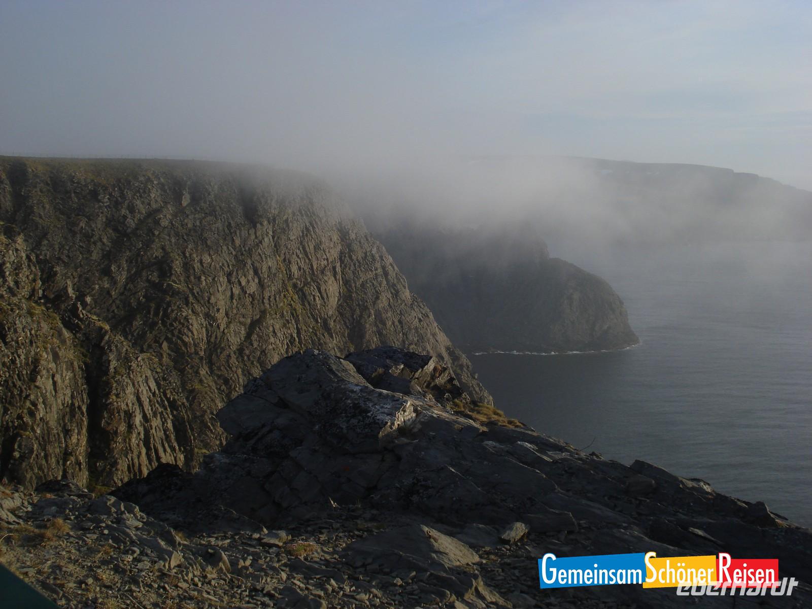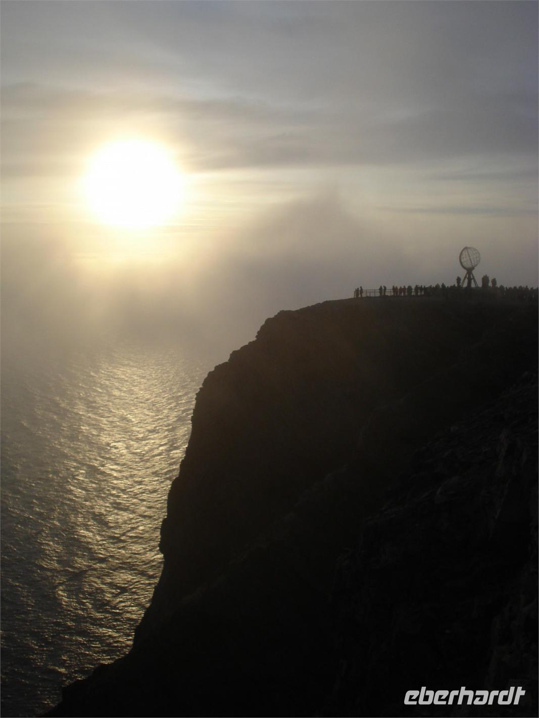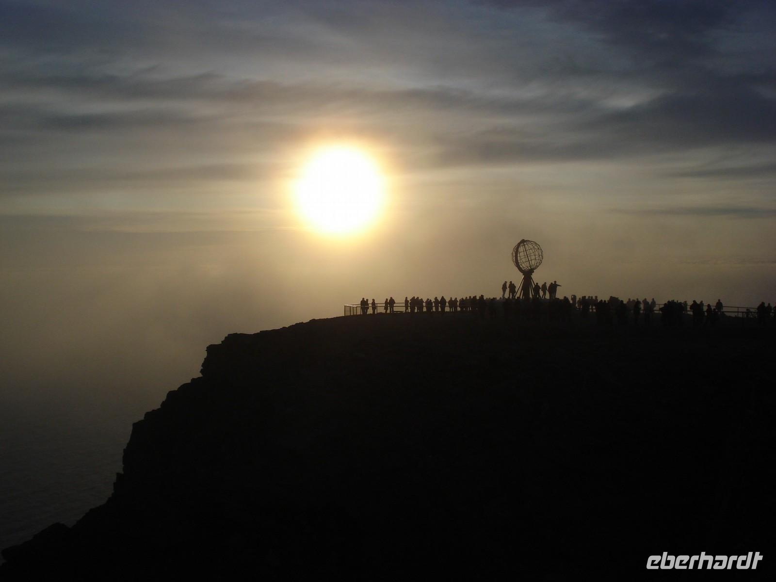 Bei sonnigem Wetter setzten wir unsere Reise nach Norden fort. Heute sollte es nun soweit sein, dass wir das Nordkap sehen. An der Bärenhöhle war nicht viel vom Inarisee zu sehen. Die Eismeerstrasse führte uns dann direkt an die Grenze nach Norwegen. Nach einem kurzen Stopp am Samenmuseum im Hauptort der norwegischen Samen, Karasjok, erblickten wir den ersten Fjord Porsanger. Durch das 6870 m lange Nordkaptunnel und 220 m unter dem Meeresspiegel erreichten wir die Nordkapinsel Mageroya. In Honningsvag bezogen wir das Rica Hotel Honningsvag und fuhren nach dem köstlichen Abendessen ans Nordkap. Es war eisig kalt durch den Wind. Freie Blicke auf den 307 m hohen Nordkapfelsen waren uns öfters vergönnt. Die Nebelschwaden hüllten aber auch die Weltkugel zeitweise ein. Einige Minuten vor Mitternacht war der beste Blick auf die Sonne sowie den Felsen.