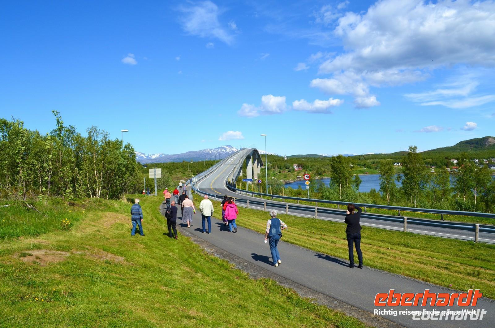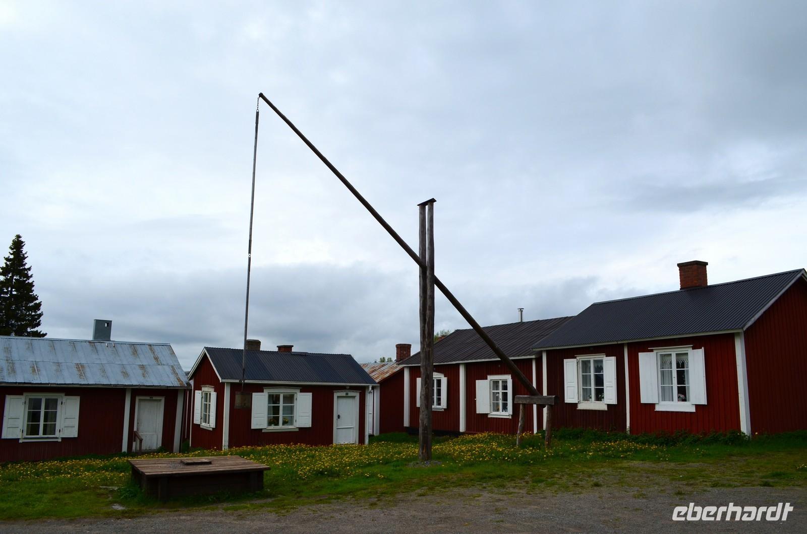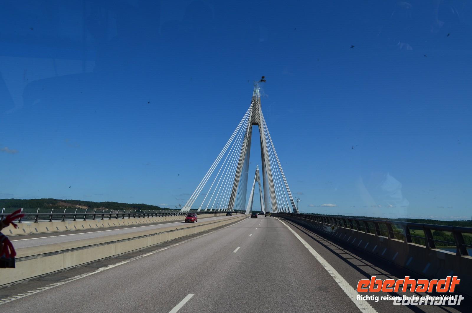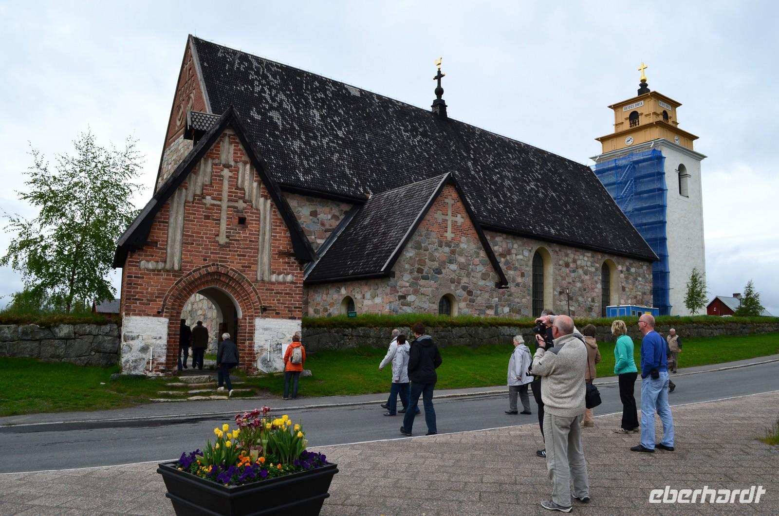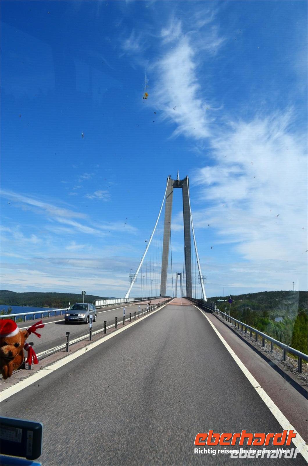 Wir besichtigten die Häuschen und die Landschaft der Insel Alnö bei einer Rundfahrt. Dann ging es weiter nordwärts, vorbei an den kleinen Dörfern mit ihren Kirchen und den extra stehenden Glockentürmen, der immer wechselnden Landschaft, die allmählich zur „Hohen Küste“ ansteigt, über deren große Brücke, hin zum Kirchendorf Lövanger und weiter zum Leuchturm bei Jävre. Bis schließlich Luleá, die Stadt mit dem großen schwedischen Erzhafen, erreicht ist und wir fast am Polarkreis.