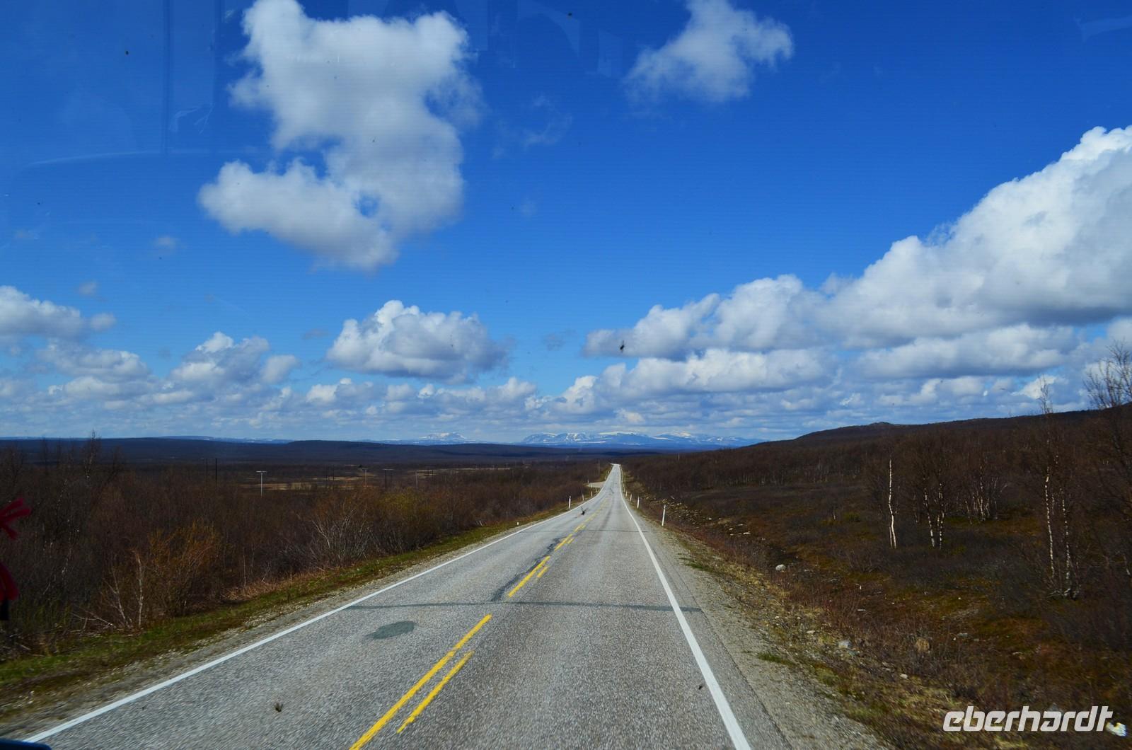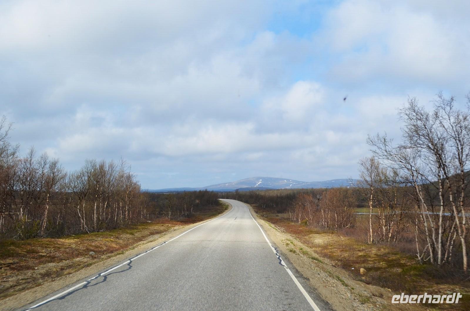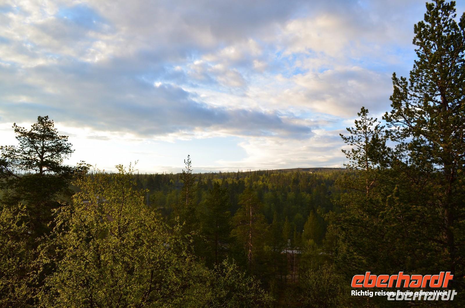 Dann die Tundra in Finnland. Mitten darin, direkt am Polarkreis, das Weihnachtsdorf. Danach die finnische Wintersportregion um Saarielkä und die Wälder um den riesigen Inarisee.
