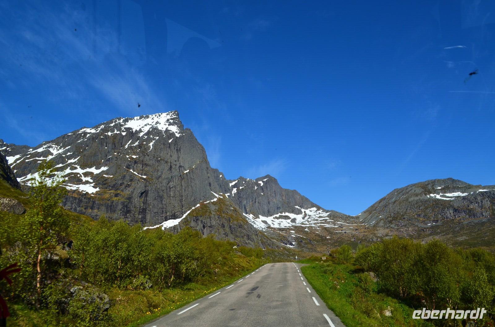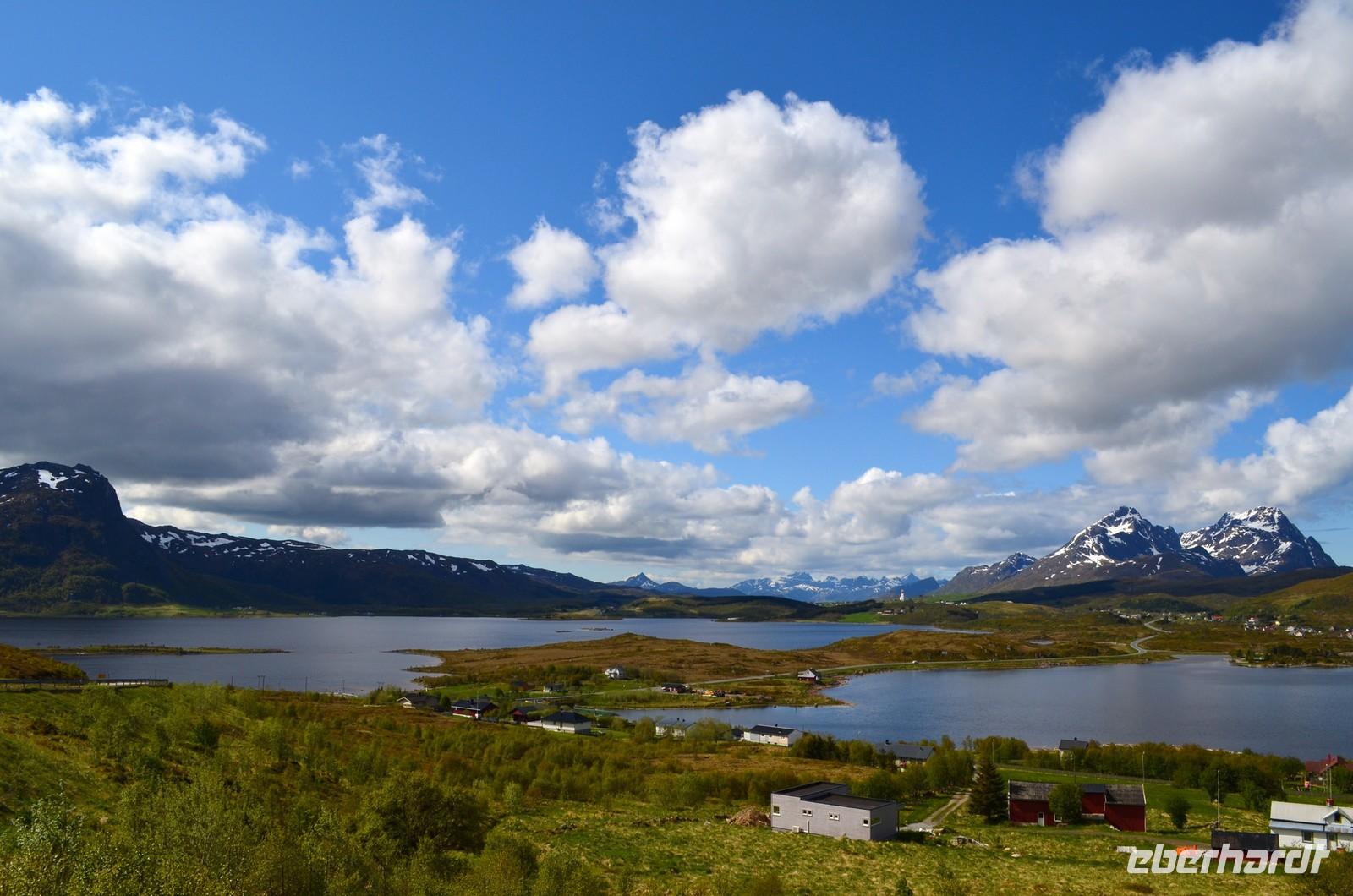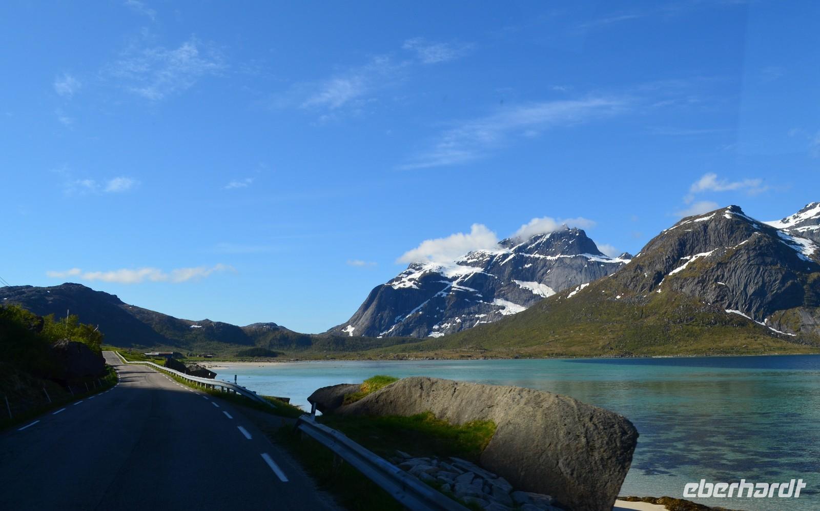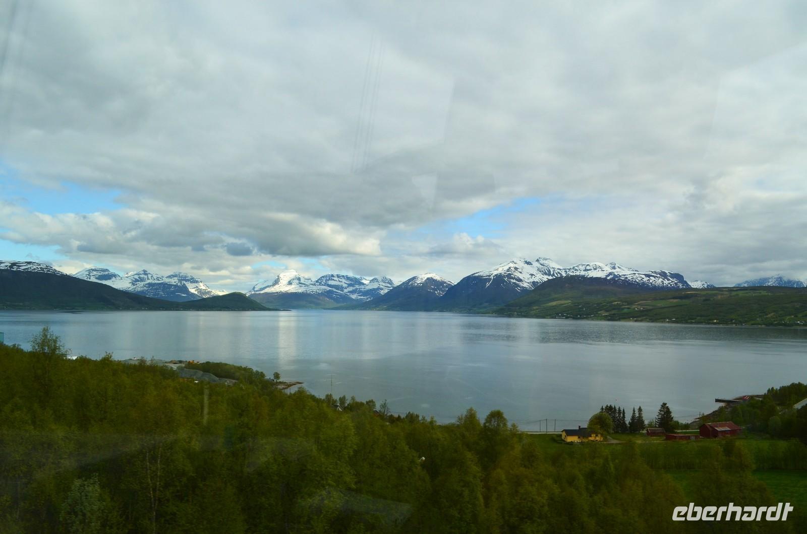 Traumhafte Panoramen um und über dem Ofotfjord, die Täler in den leuchtenden Farben des Frühlings, auf den Pässen die Seen noch eisüberzogen.