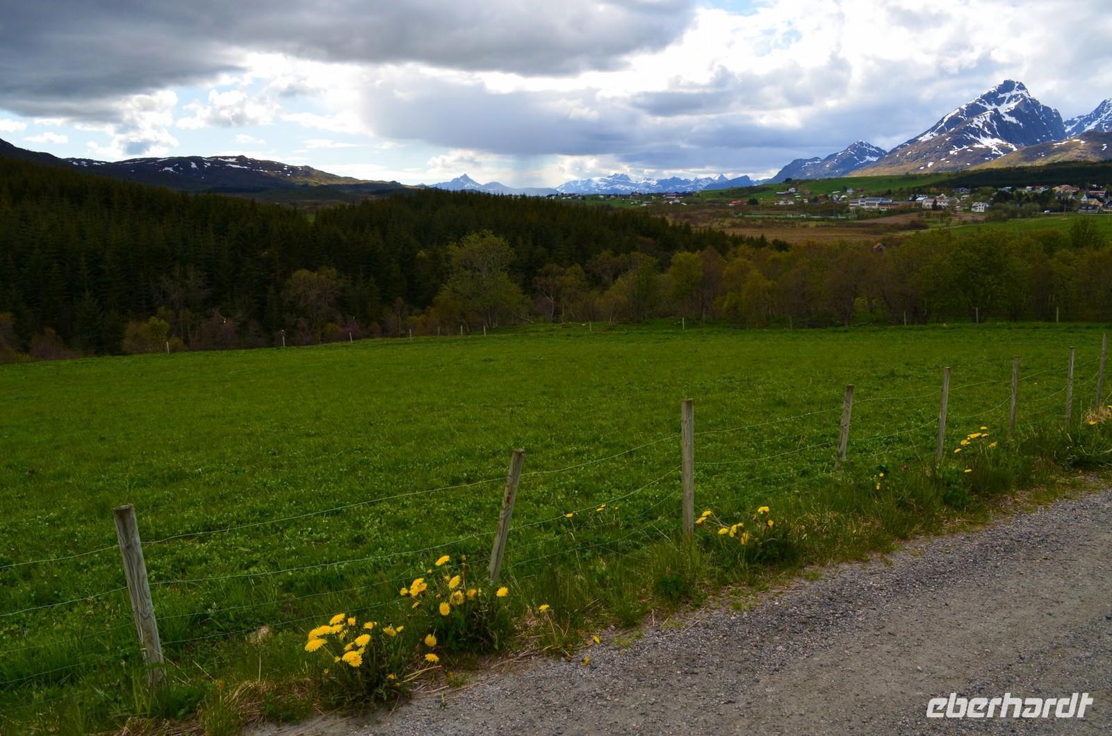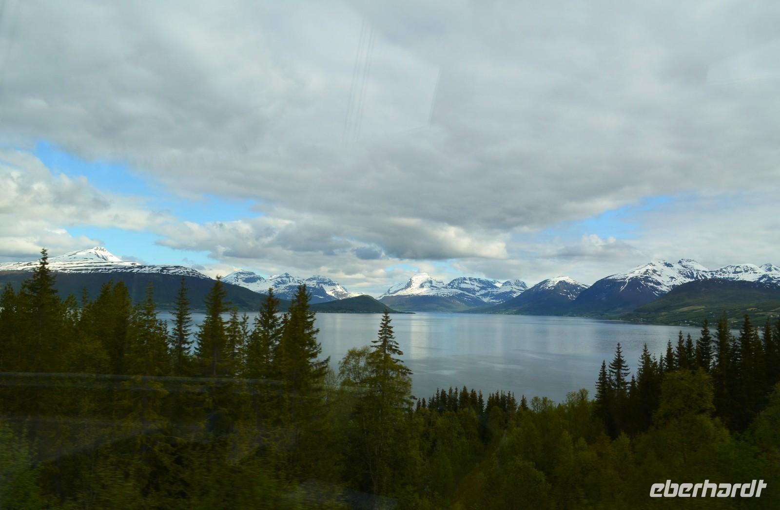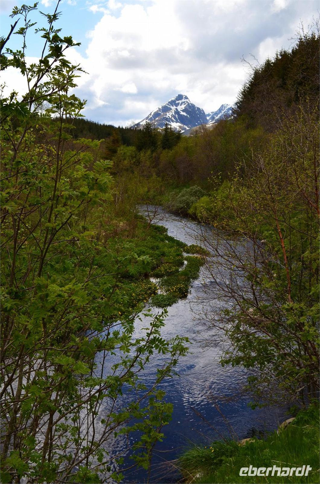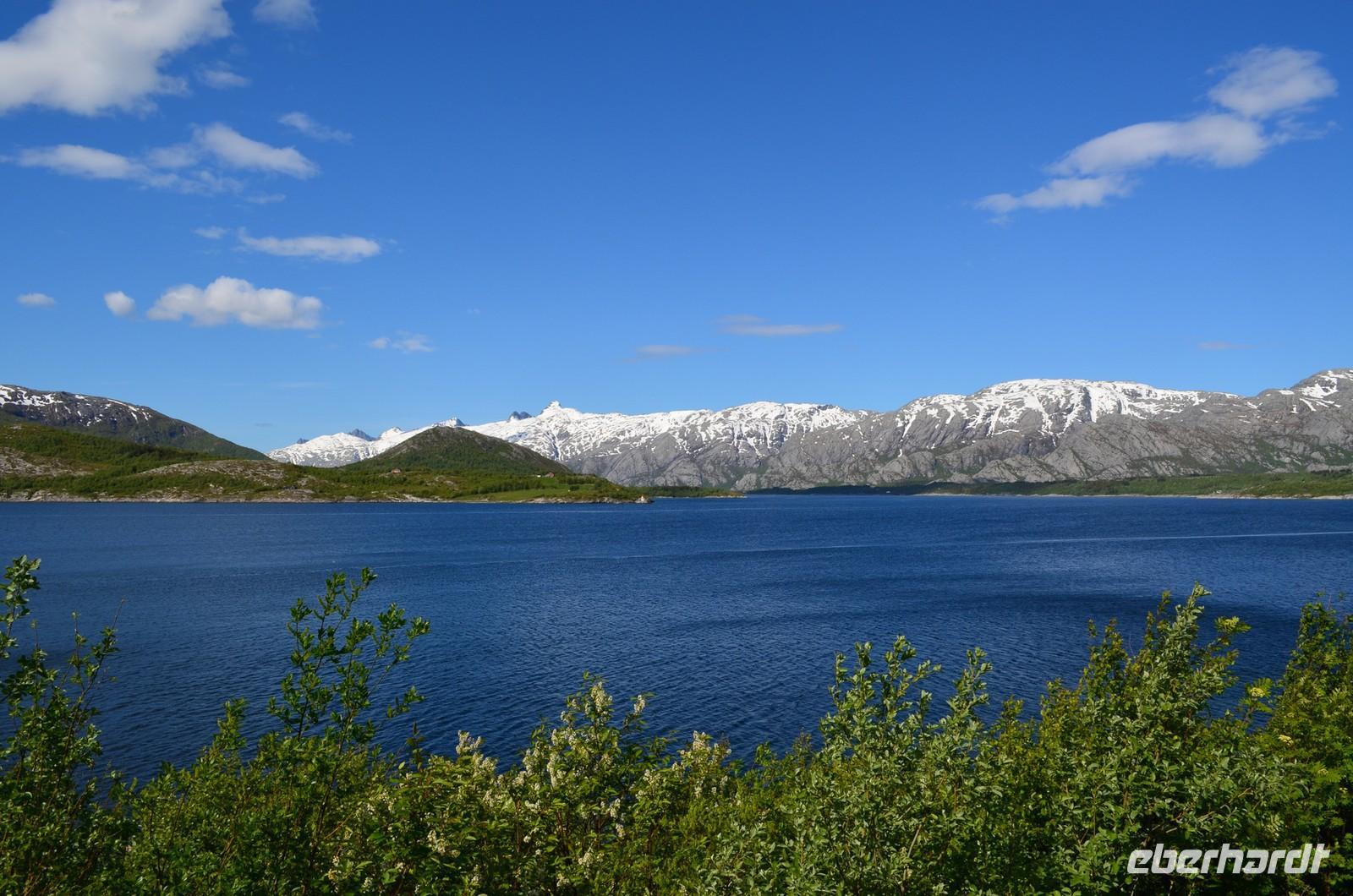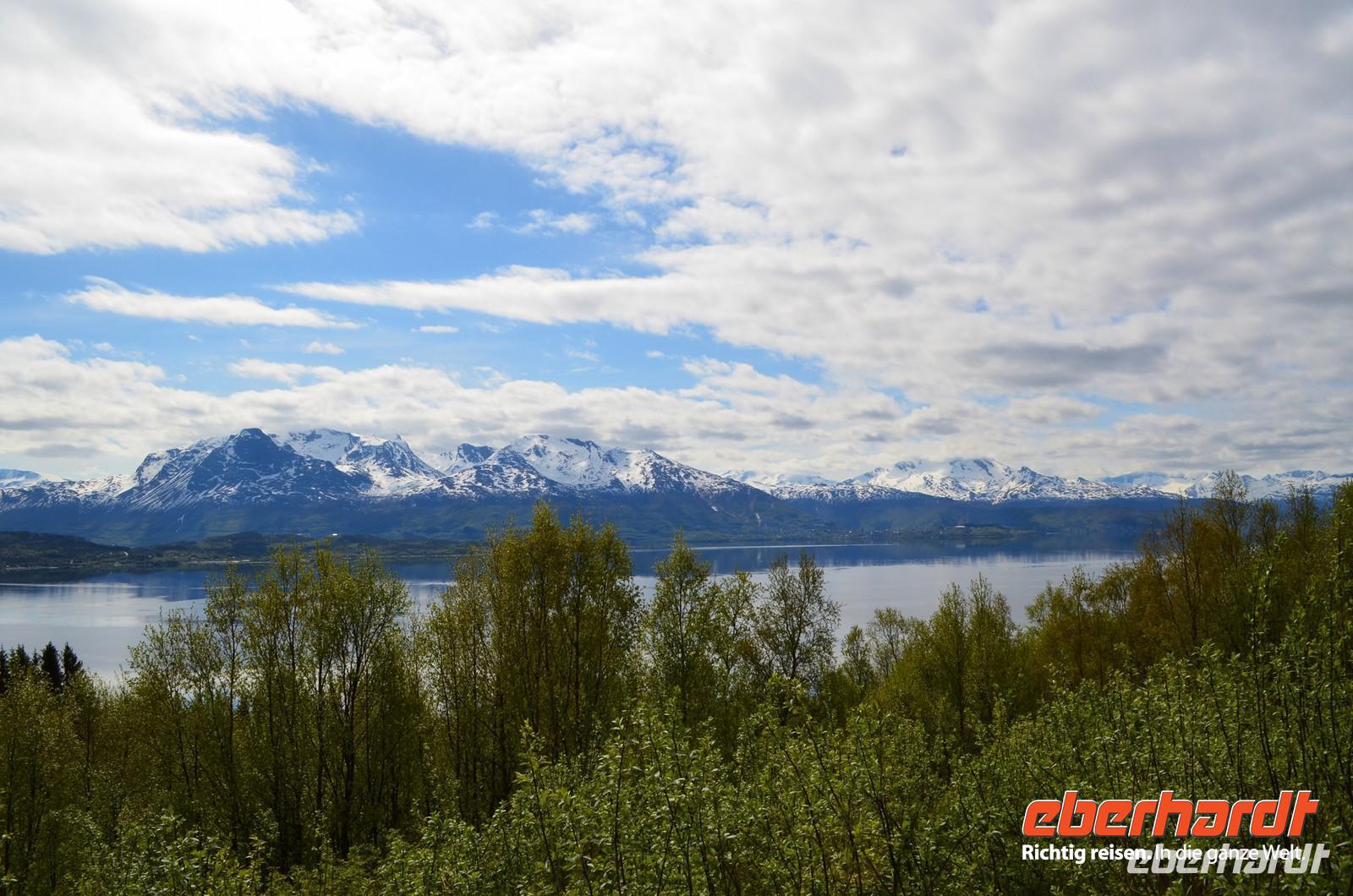Traumhafte Panoramen um und über dem Ofotfjord, die Täler in den leuchtenden Farben des Frühlings, auf den Pässen die Seen noch eisüberzogen.